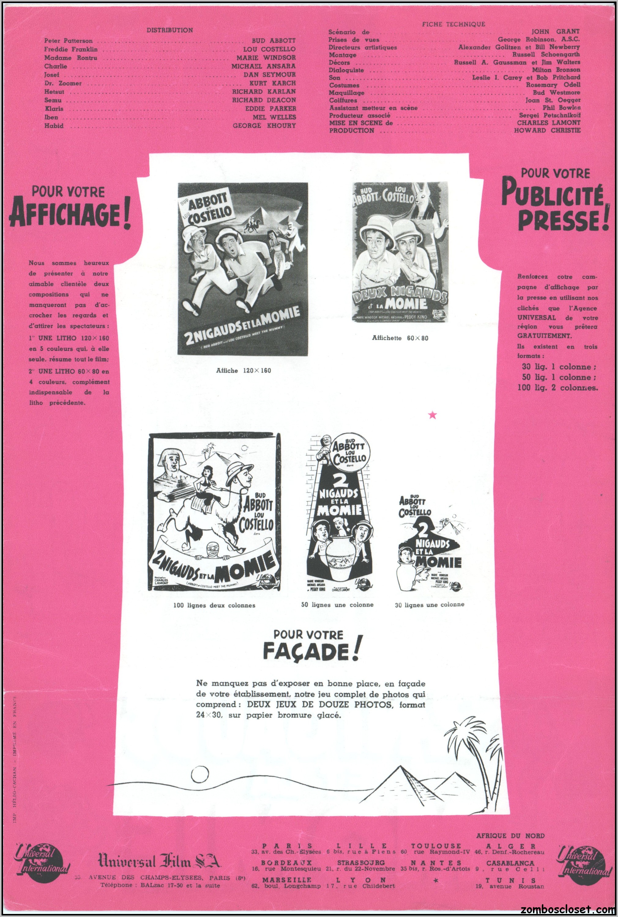 2 Nigauds et la Momie (1955) French Pressbook Leave a Comment / Pressbooks (Horror, Sci Fi, Fantasy) / By JM Cozzoli While the non-American pressbooks can be short on pages and promotional and commercial tie-ins, the artwork and printing layout can be quite creative. Here's the French pressbook for Abbott and Costello Meet the Mummy.Like this:Like Loading... Share this post Facebook Twitter Pinterest Linkedin