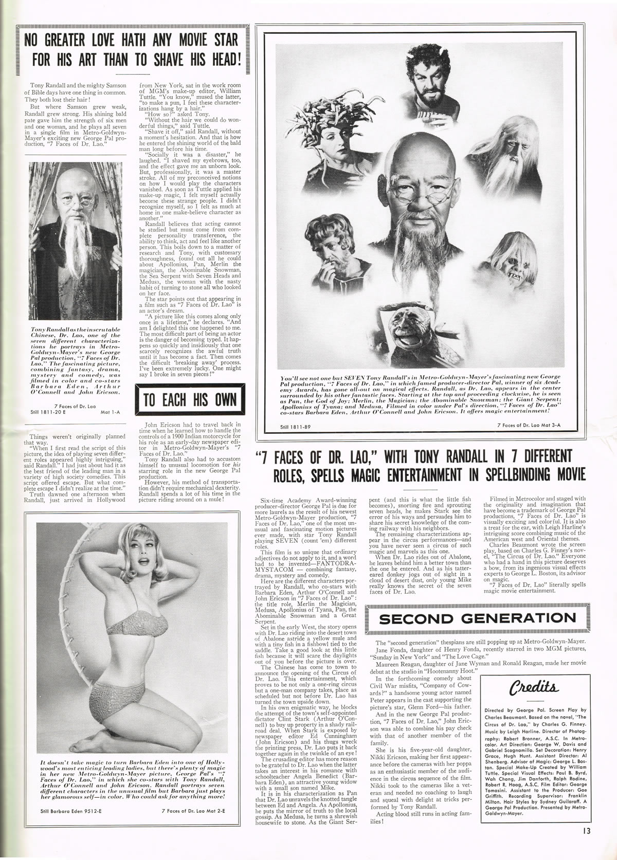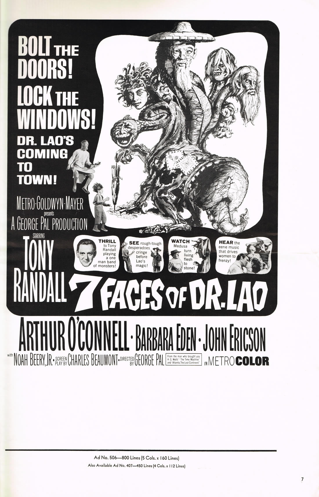 I can't fully explain why I like the 7 Faces of Dr. Lao, but I do. The fantasy elements are fun to watch (especially the classic special effects), as is Tony Randall's enthusiastic performance, although the story overall is a little weak. I would love to see this movie remade and perhaps updated to present day. Lord knows we could all use a little magic in 2013.