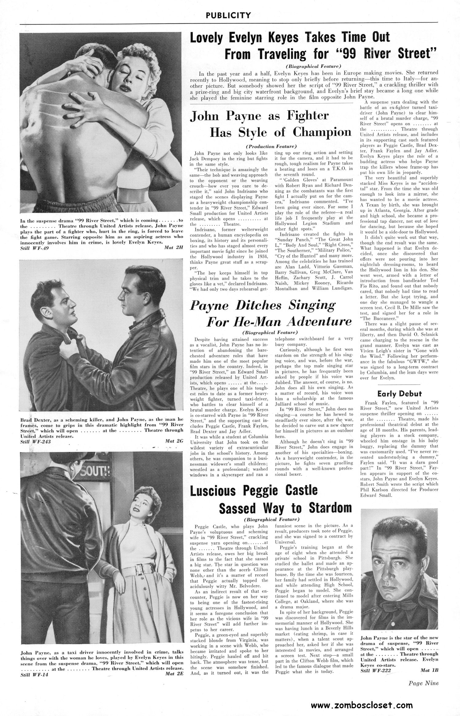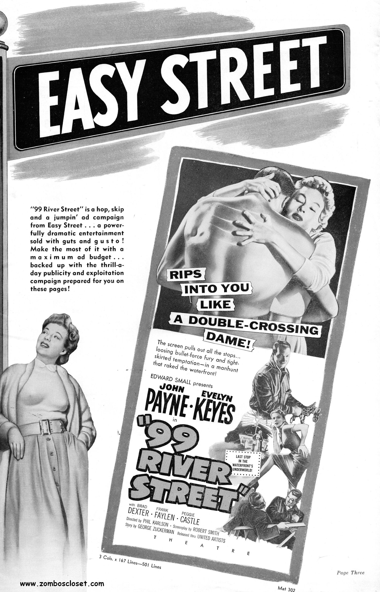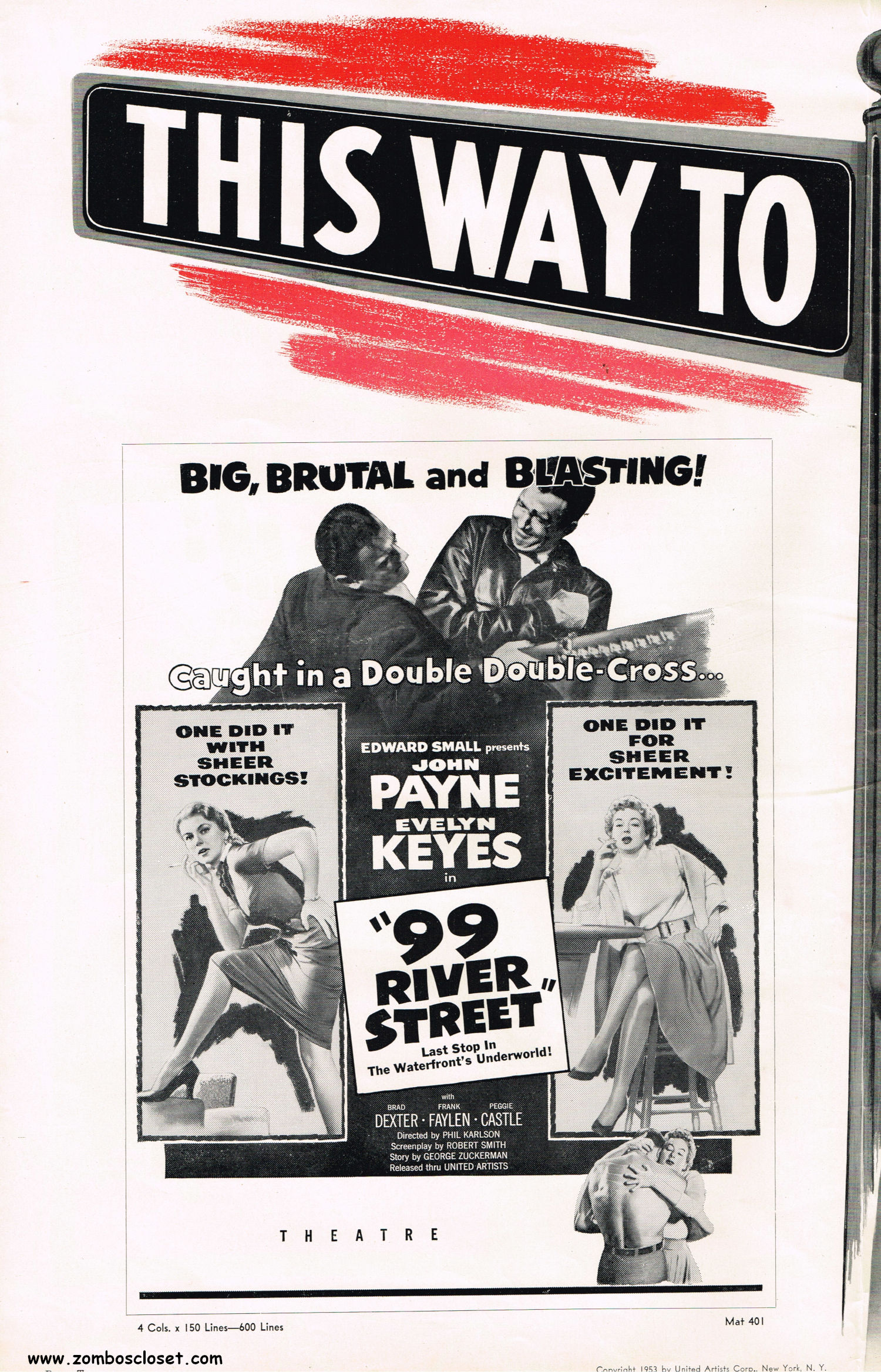 The New York Times may have not liked “99 River Street” when it first hit the screens, but John Payne goes against type to deliver a taxi driver caught up to his fare box in murder, two-timing marriage, and pugilistic longings. Thanks to TCM for bringing this little indie gem back into the light. Like William Powell, Payne makes a good heavy when the going gets tough. You can’t sing all the time; and, after Miracle on 34th Street, it’s nice seeing Payne not being so nice for a change.