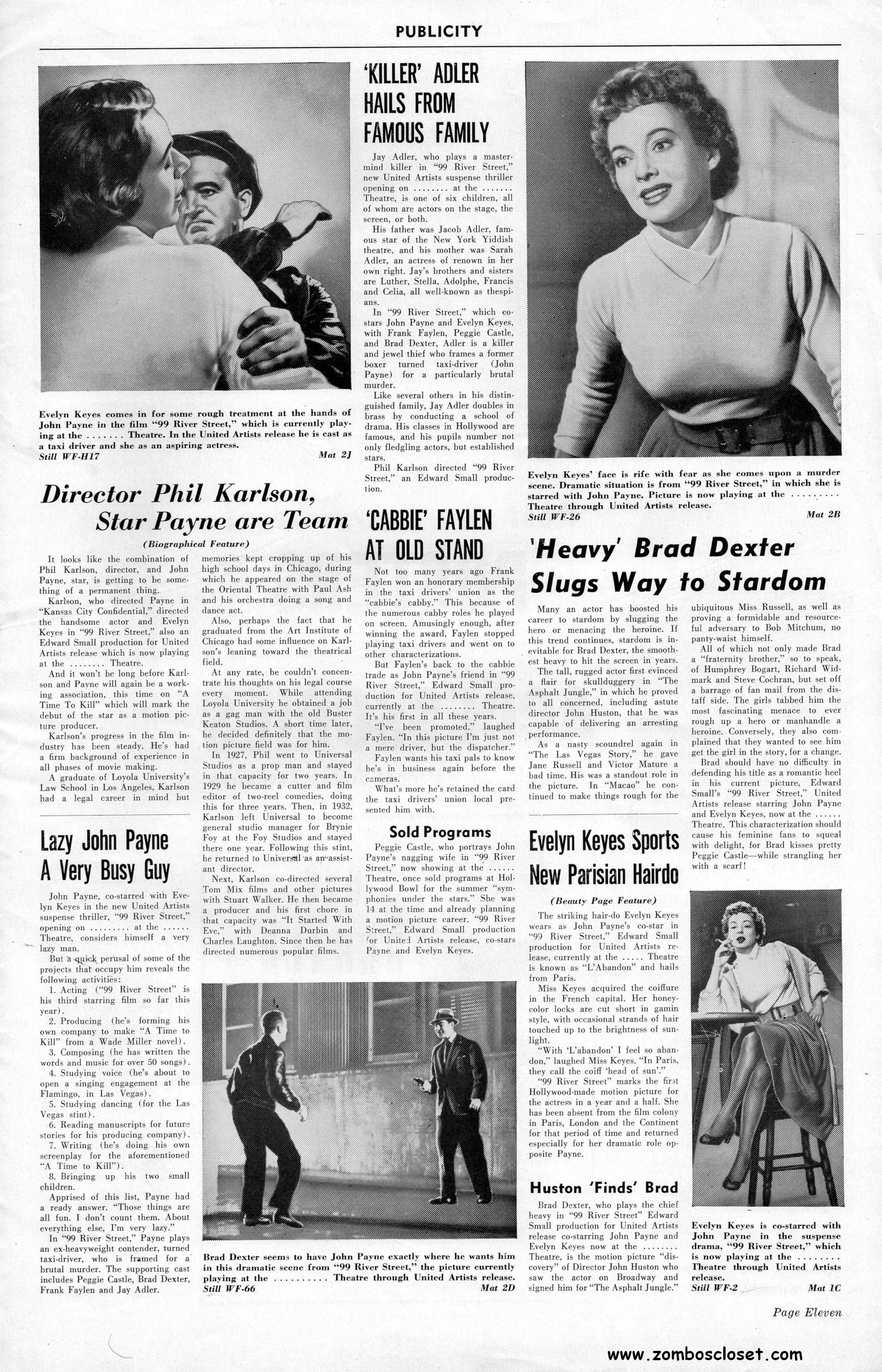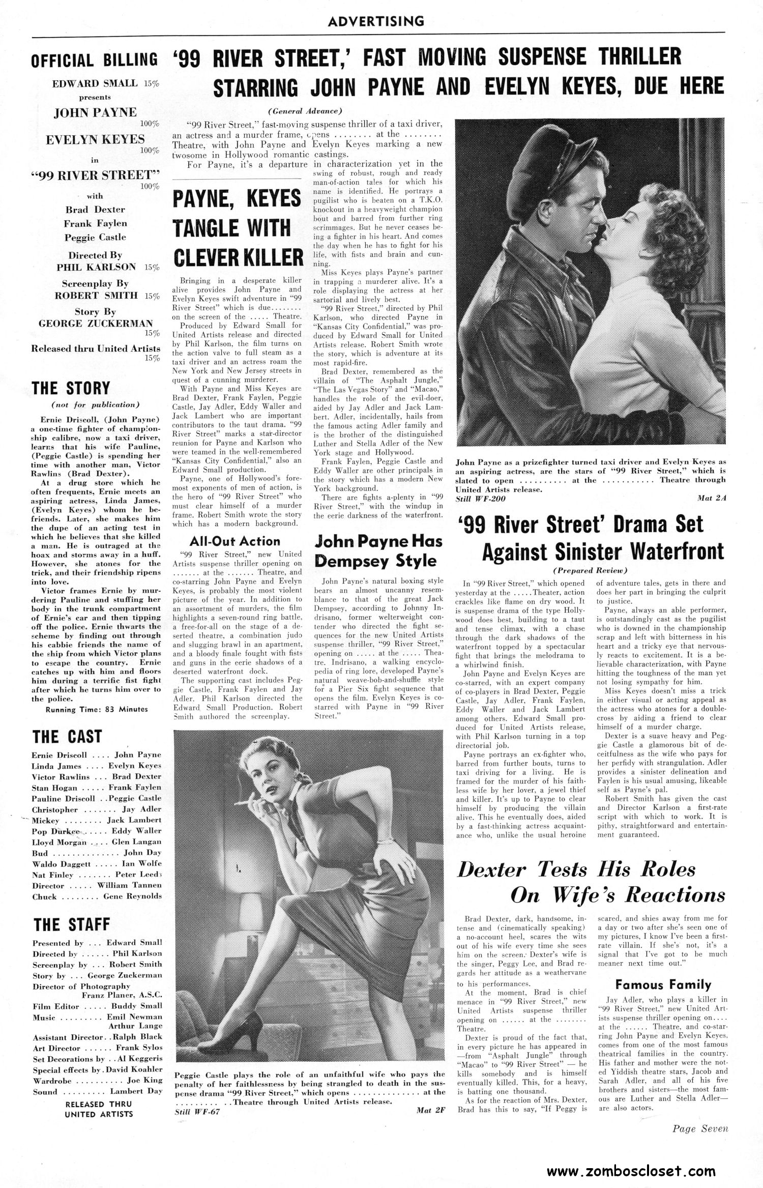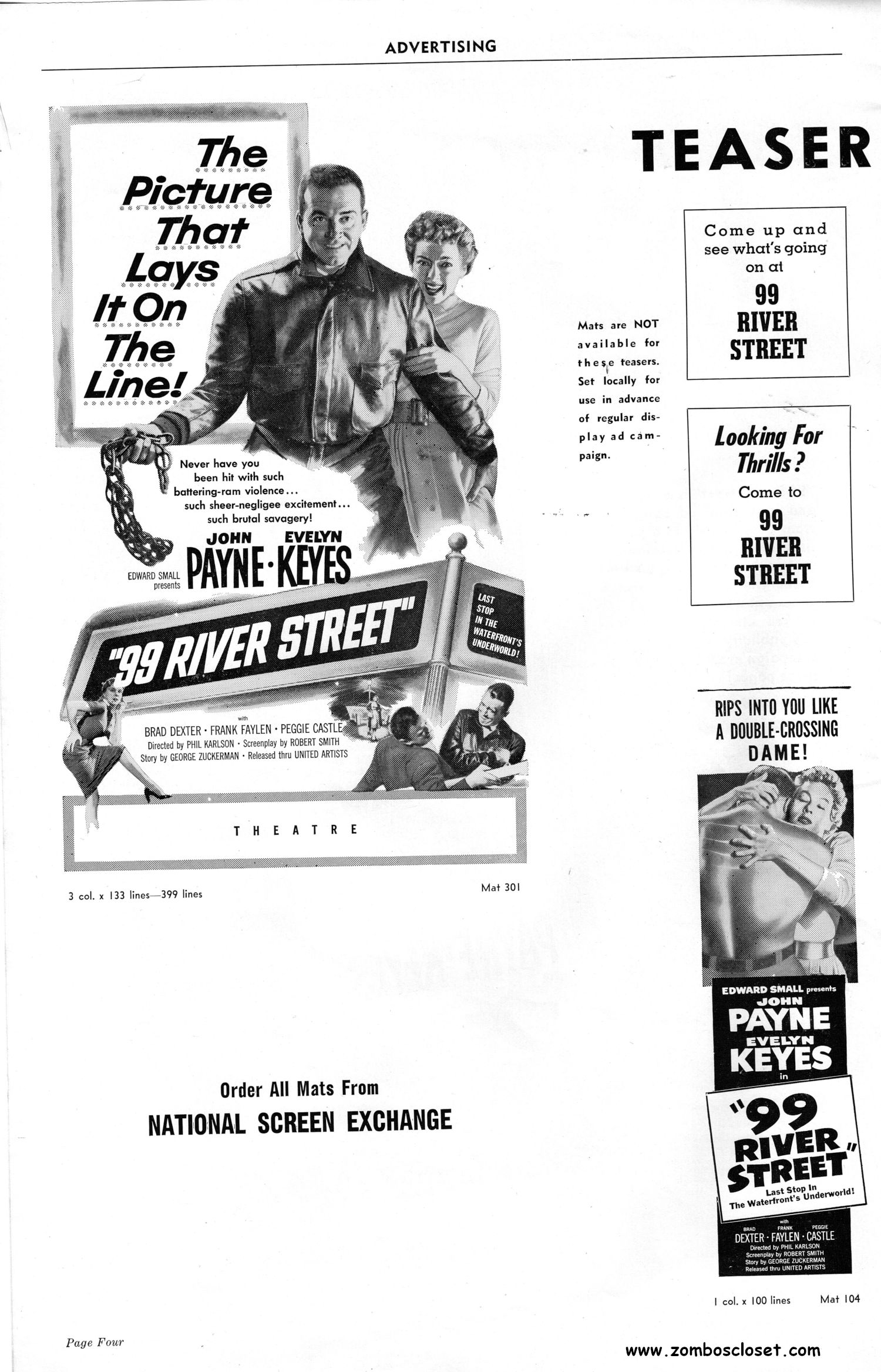 The New York Times may have not liked “99 River Street” when it first hit the screens, but John Payne goes against type to deliver a taxi driver caught up to his fare box in murder, two-timing marriage, and pugilistic longings. Thanks to TCM for bringing this little indie gem back into the light. Like William Powell, Payne makes a good heavy when the going gets tough. You can’t sing all the time; and, after Miracle on 34th Street, it’s nice seeing Payne not being so nice for a change.