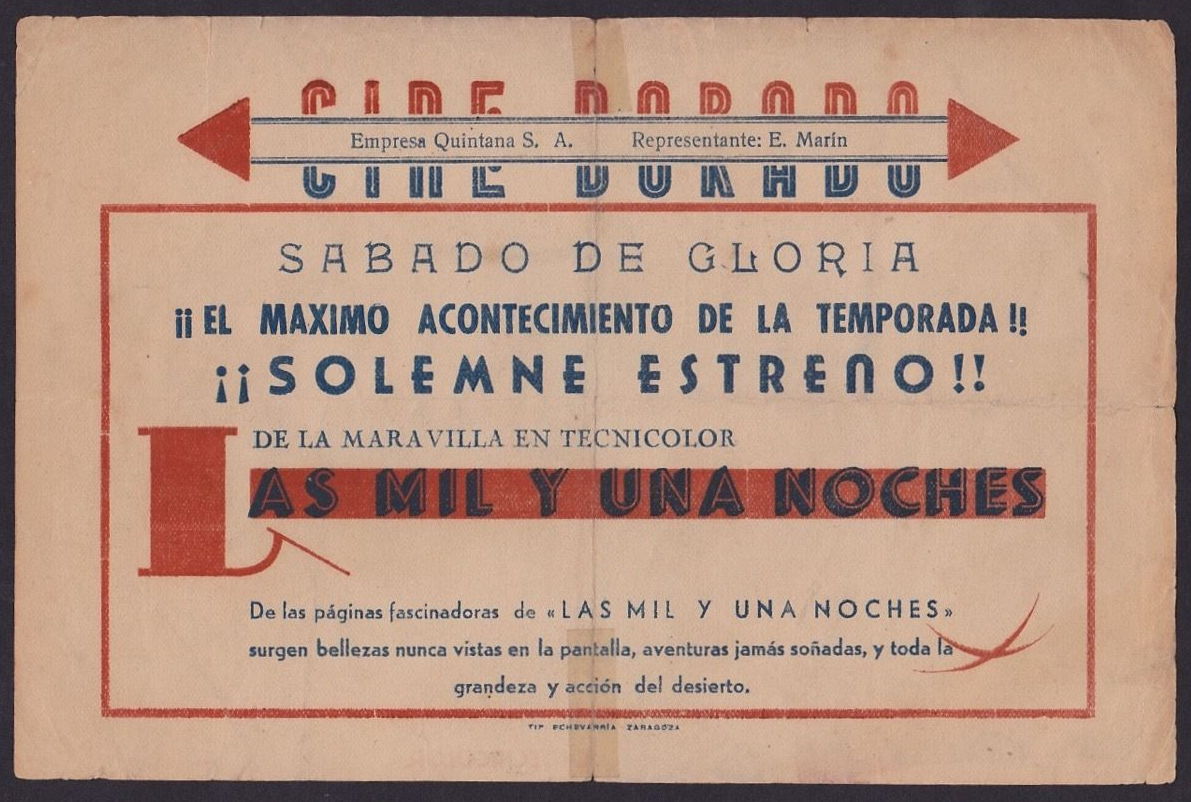 A Thousand and One Nights Movie Herald Leave a Comment / Pressbooks (Horror, Sci Fi, Fantasy) / By JM Cozzoli Here's another beautifully rendered movie herald I spotted on eBay. This one is for the Spanish version of A Thousand and One Nights (1945). Like this:Like Loading... Share this post Facebook Twitter Pinterest Linkedin