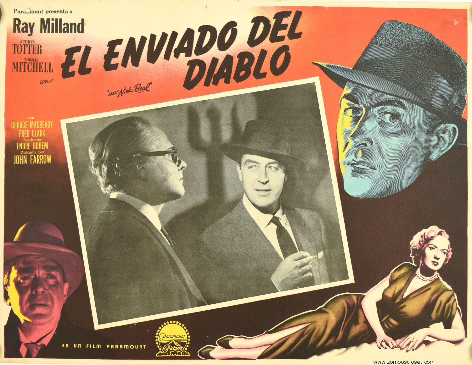 Alias Nick Beal (1949) Mexican Lobby Card Leave a Comment / Azteca/Mexican Lobby Cards / By JM Cozzoli Wonderful Ray Milland movie, where he plays the devil you know. This lobby for El Enviado Del Diablo is simply beautiful in execution. Note the devil's trident in the inset scene, the hint of the satanic to be found in this movie.Like this:Like Loading... Share this post Facebook Twitter Pinterest Linkedin