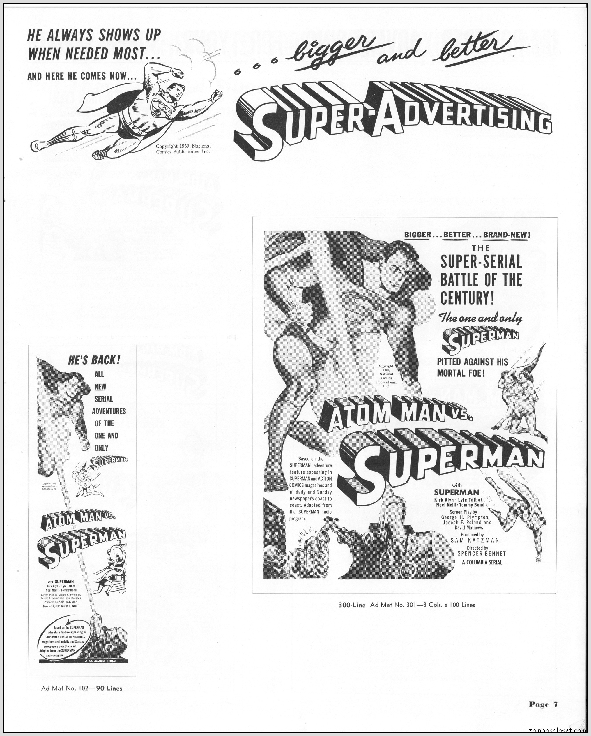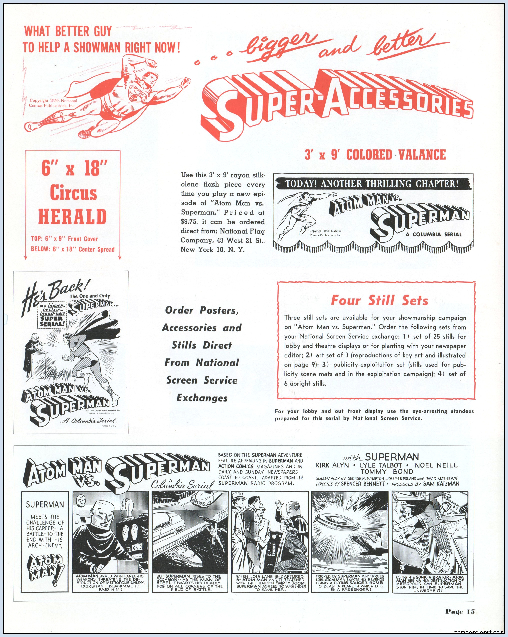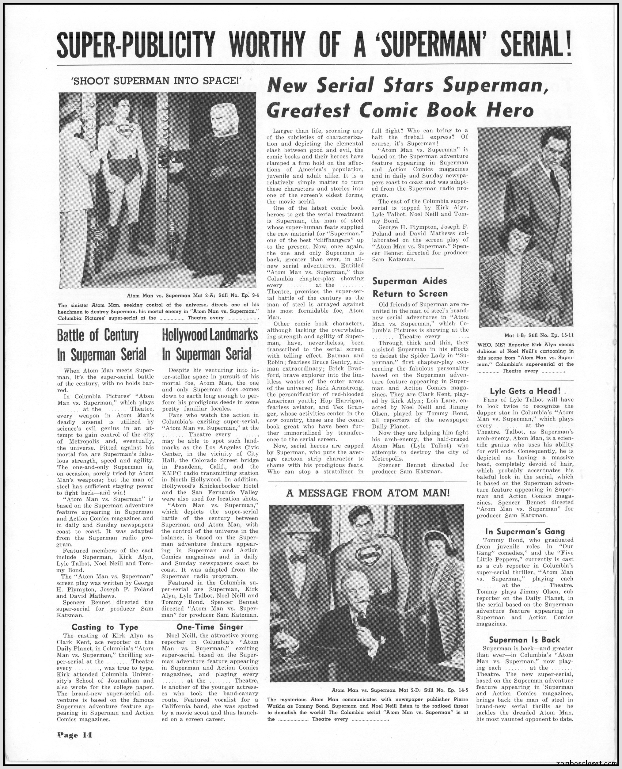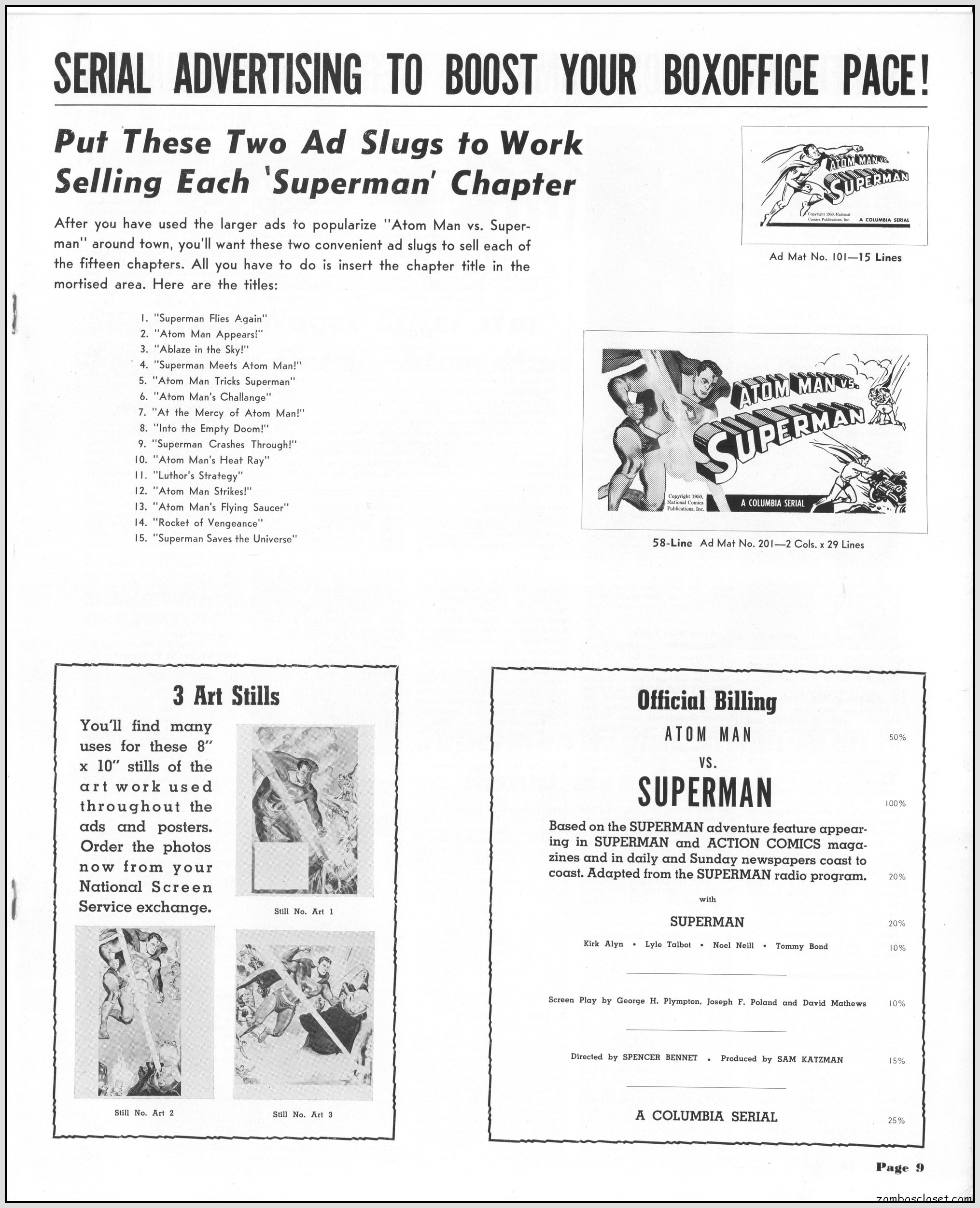 Unfortunately, without the boffo effects of today, this serial pales in comparison to today's superhero magnum opuses. But the characters are still endearing and it must have been quite exciting to see your favorite comic book hero on the big screen for those young audiences. More of a budget would have helped a lot, too. I wish I had a lot of those tie-ups for my collection.