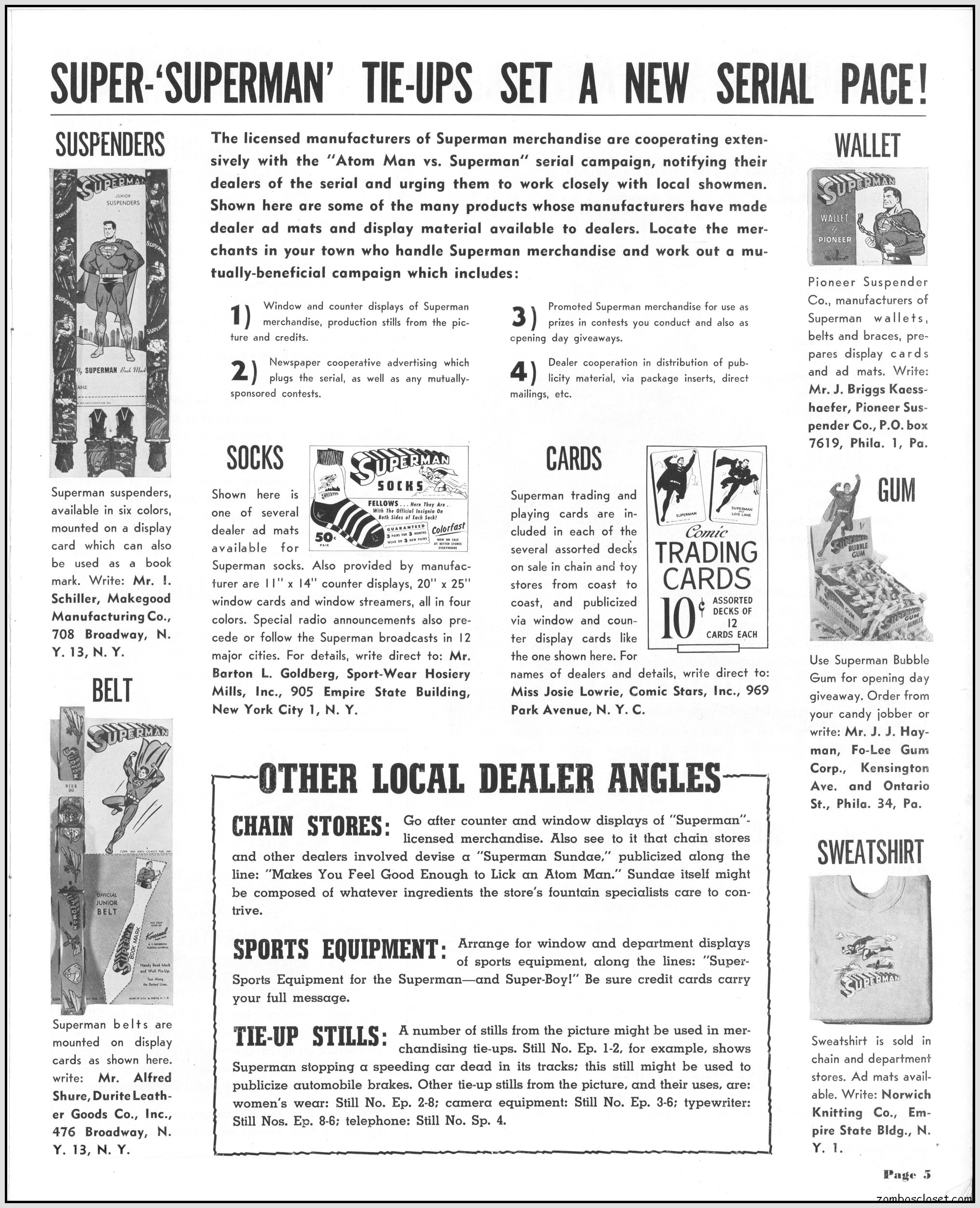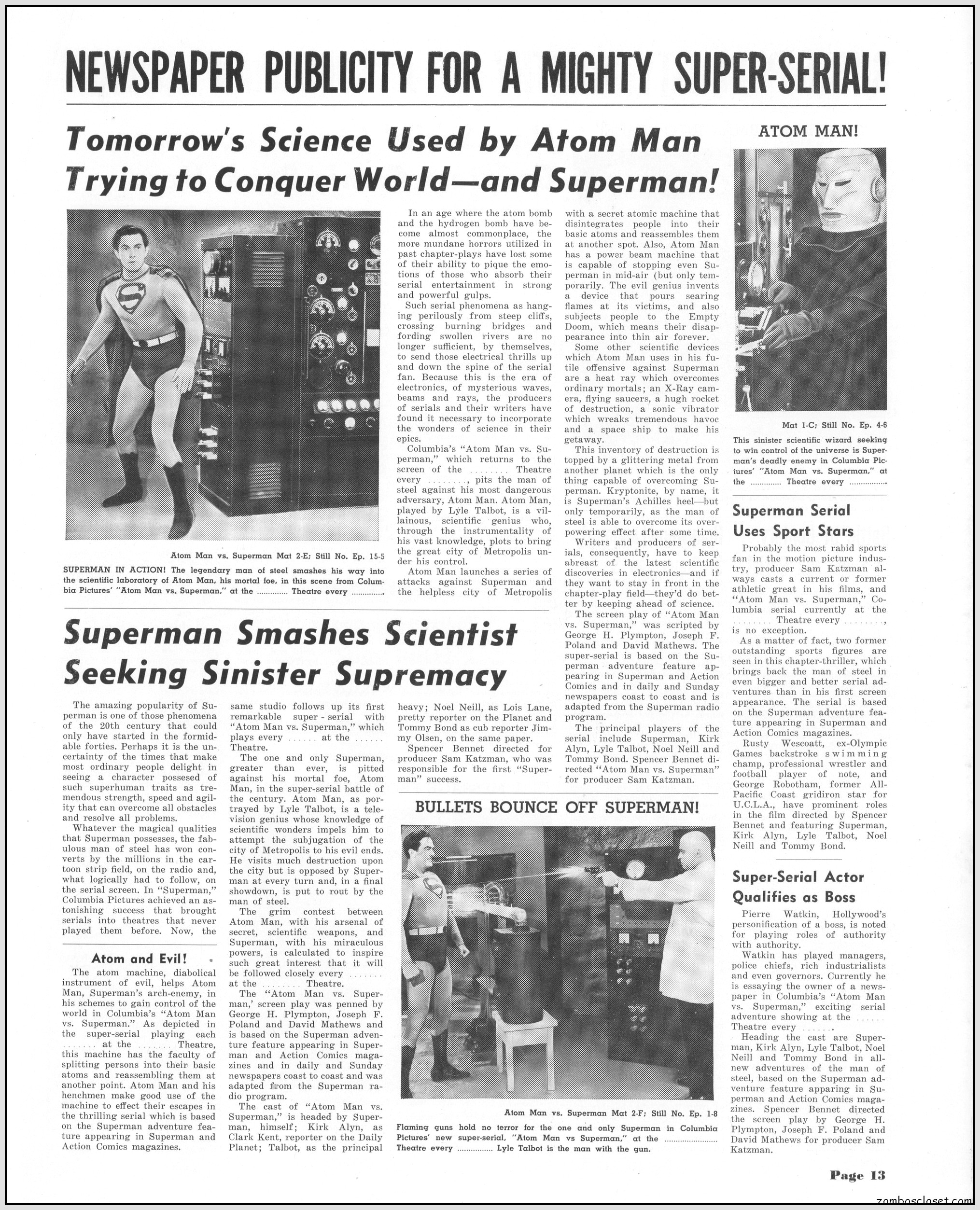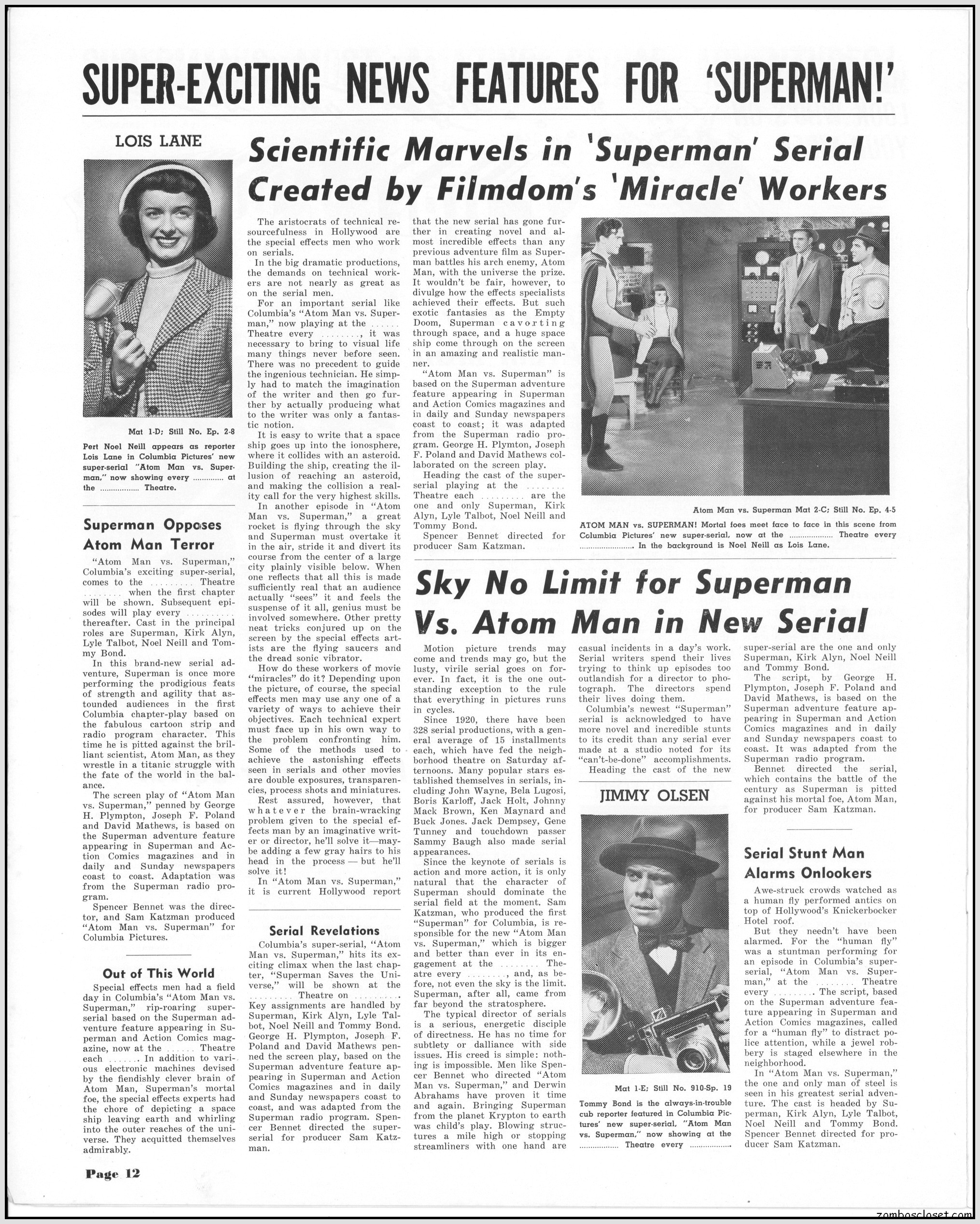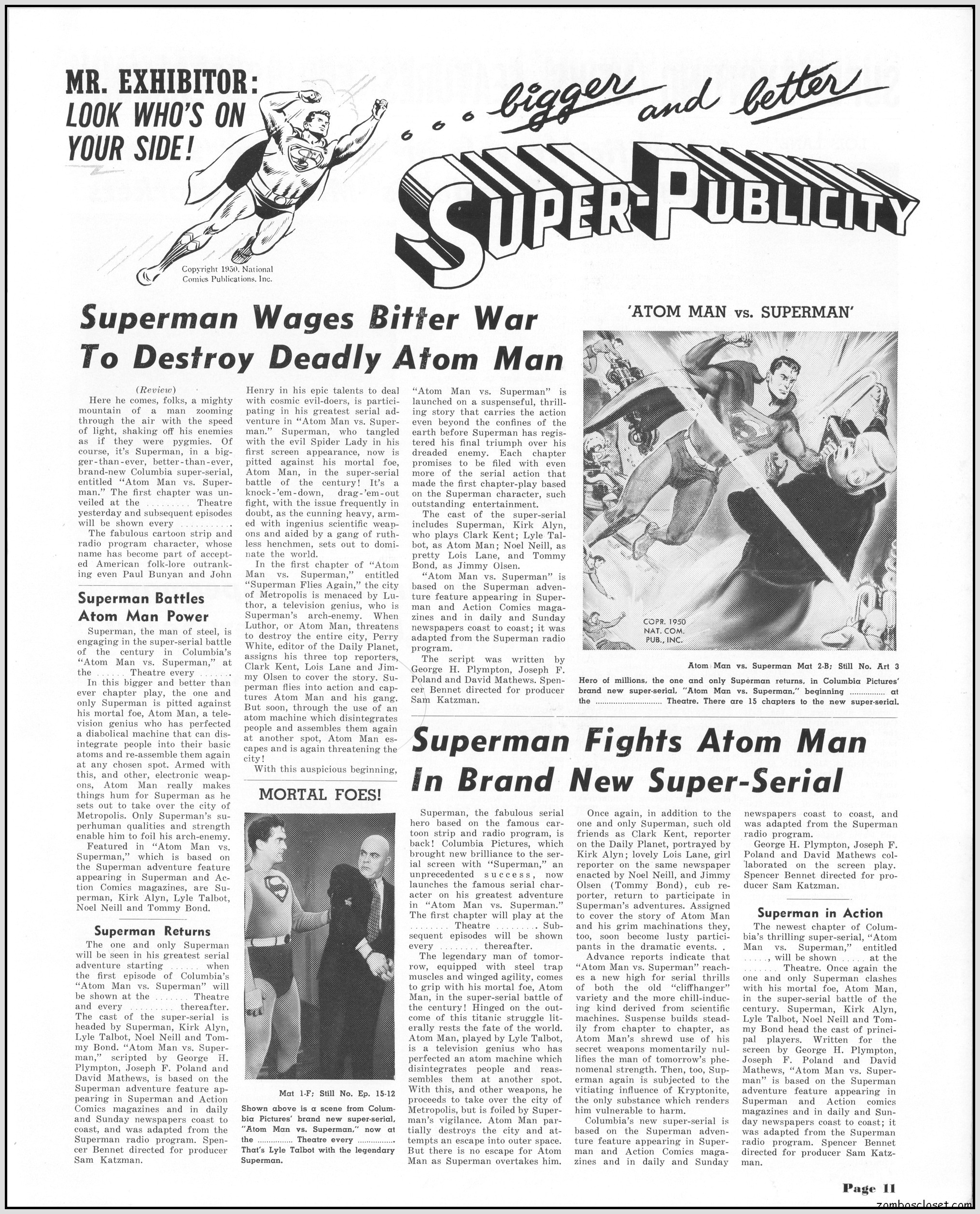 Unfortunately, without the boffo effects of today, this serial pales in comparison to today's superhero magnum opuses. But the characters are still endearing and it must have been quite exciting to see your favorite comic book hero on the big screen for those young audiences. More of a budget would have helped a lot, too. I wish I had a lot of those tie-ups for my collection.