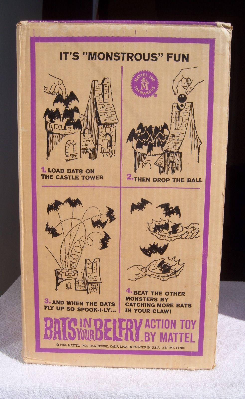Spotted this on eBay. Mattel's Bats in Your Belfry is one of the quintessential games monsterkids played with, and lament not having held on to. Here's a description for newbies from a Hake's auction.
