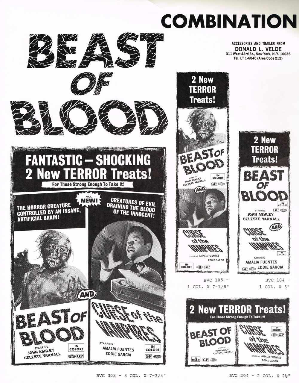 Double Bill Pressbook: Beast of Blood and Curse of the Vampires Leave a Comment / Pressbooks (Horror, Sci Fi, Fantasy) / By JM Cozzoli This double bill pressbook for Beast of Blood and Curse of the Vampires is printed on a large sheet, folded to make 8, 14" x 18" pages.Like this:Like Loading... Share this post Facebook Twitter Pinterest Linkedin