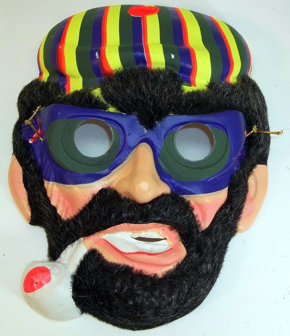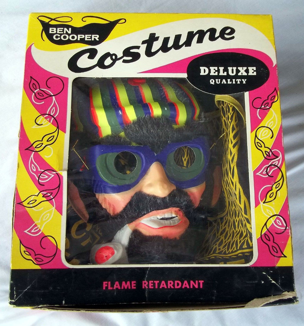 Good thing this Beatnik costume, Beatnick Boy, from Ben Cooper is flame retardant; you never know what those beatniks are smoking. Just practice snapping your fingers together with an air of aloofness, and have a short beat poem ready to amuse the candy givers.  (For those of you old enough to know what I'm talking about, for the life of me, the mask keeps reminding me of Paul Winchell!) Oddly enough, this is the first mask I've seen that fits comfortably in the box–like, just hanging out man–you know what I mean?