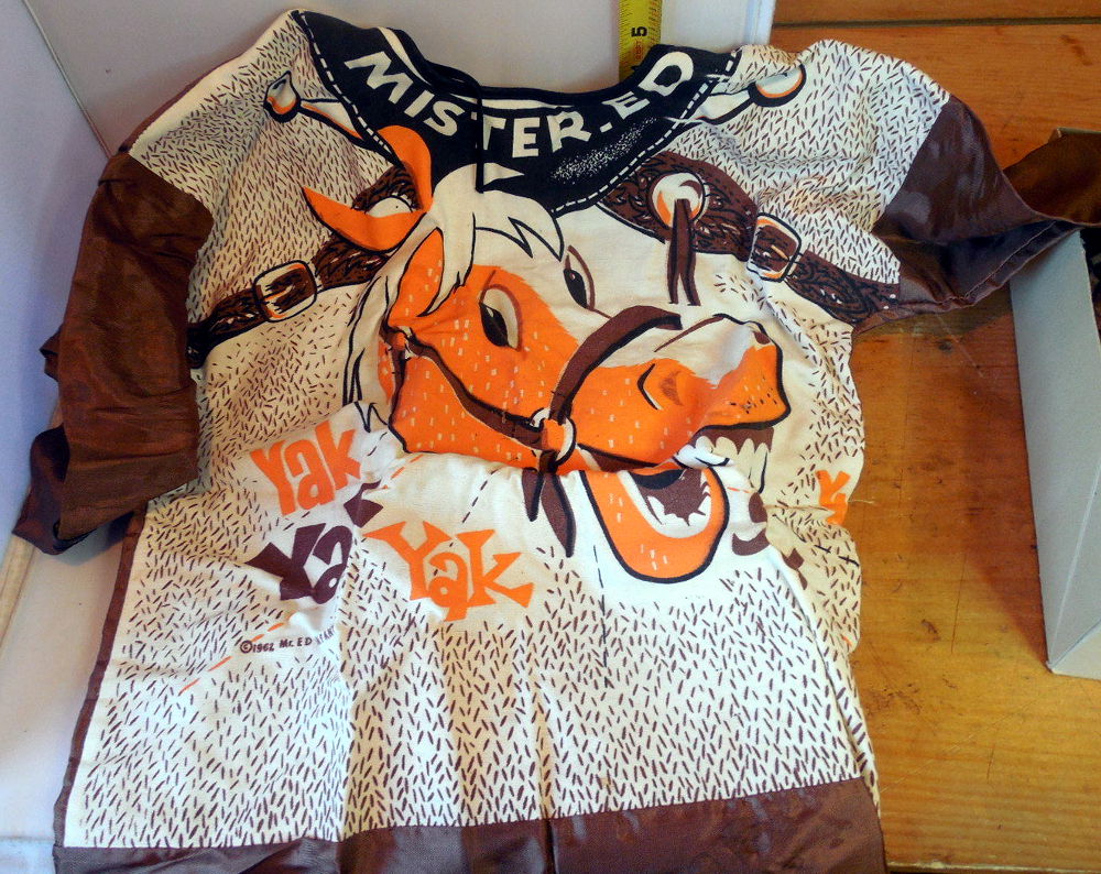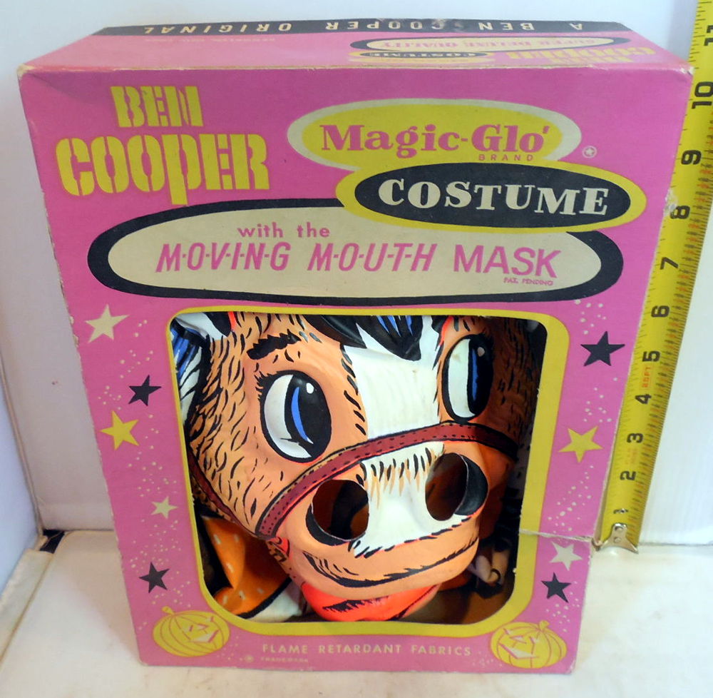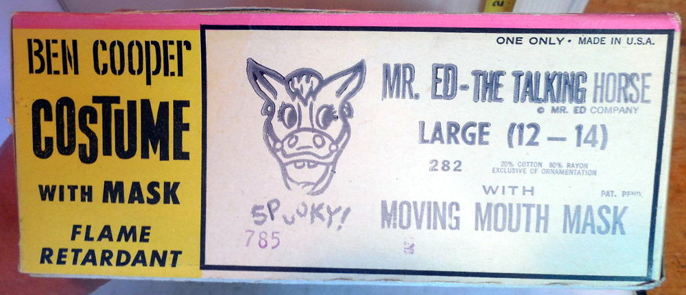 Of course, of course, it's the famous Mr. Ed, the talking horse, with moving mouth mask. I'm betting a lot of kids wearing this on Halloween got egged or shaving-creamed but good. Just sayin'. (This one comes from the stable of eBay'r 2013vintagetoys.)