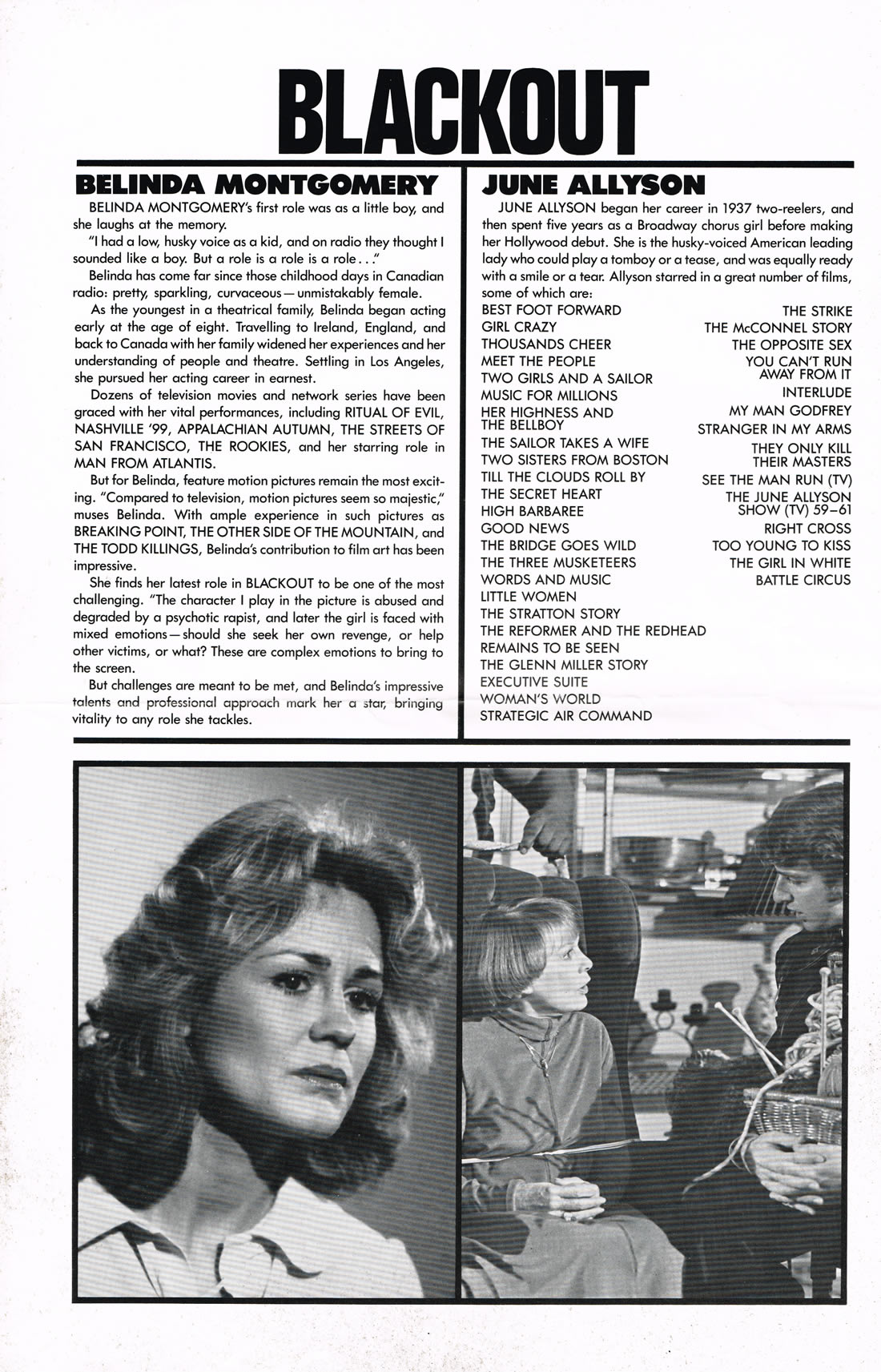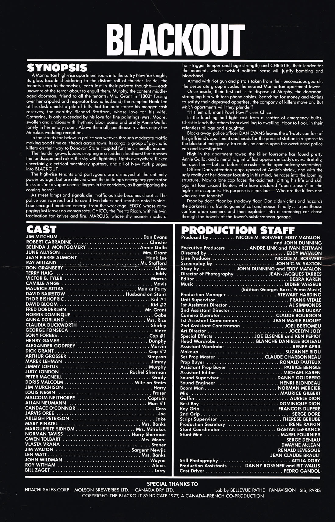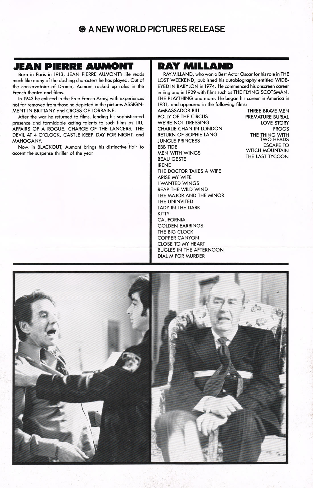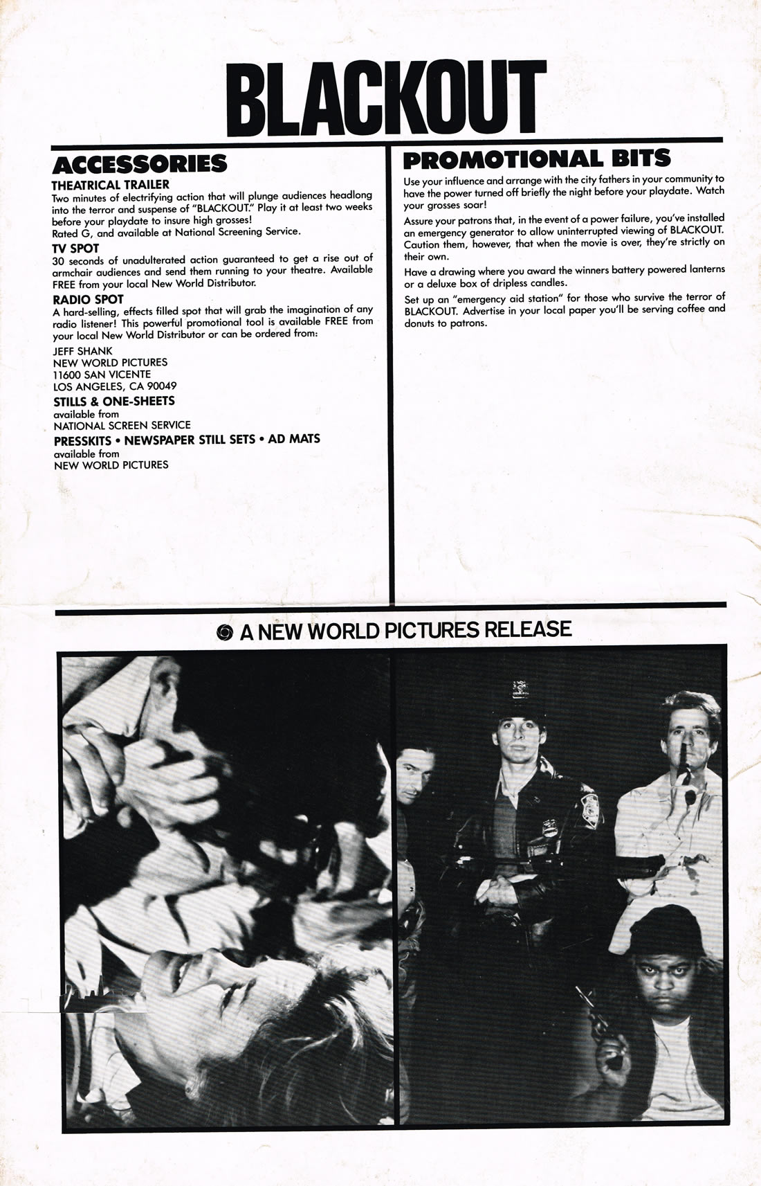 What's interesting about this pressbook for Blackout (1978) is that it promotes the notable actors appearing in it more than anything else. On another note, I remember the 1977 New York City blackout quite well: my mom freaked out thinking it was the end of the world and ran to grab the crucifixes; as for me, I thought it was fun. I was a kid. What did I know? After Hurricane Sandy and 14 days without power, it wasn't as much fun as I remembered.