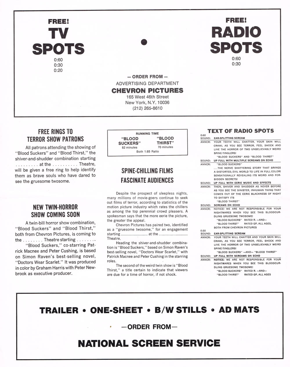 Double Bill Pressbook: Blood Suckers and Blood Thirst Leave a Comment / Pressbooks (Horror, Sci Fi, Fantasy) / By JM Cozzoli The "exploitation aid"mentioned in this bi-folded, one sheet pressbook is a keeper; the movies, not so much. Like this:Like Loading... Share this post Facebook Twitter Pinterest Linkedin