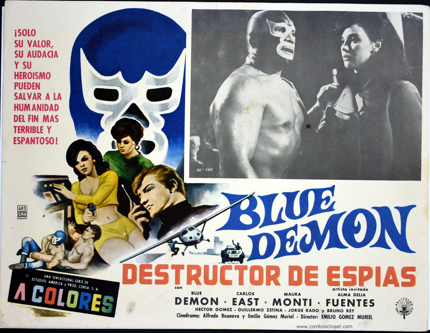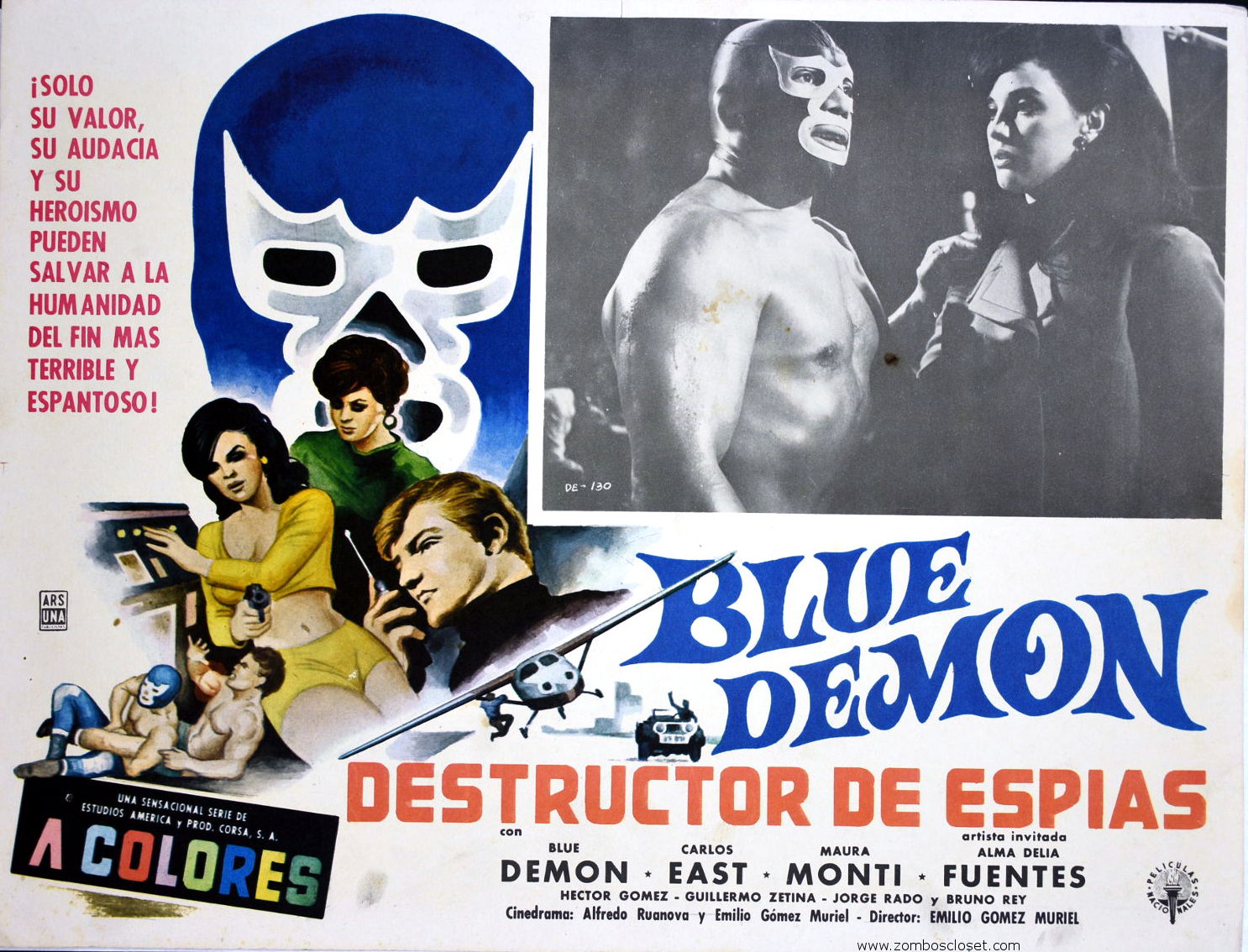 Blue Demon: Destructor of Spies (1968) Mexican Lobby Card Leave a Comment / Azteca/Mexican Lobby Cards / By JM Cozzoli Mind-controlling machines and muscles figure prominently in Destructor De Espias for Blue Demon.Like this:Like Loading... Share this post Facebook Twitter Pinterest Linkedin