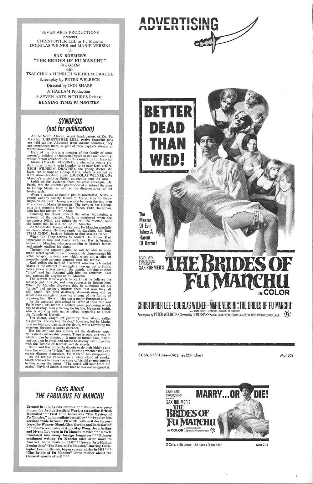 Movie Pressbook: The Brides of Fu Manchu (1966)