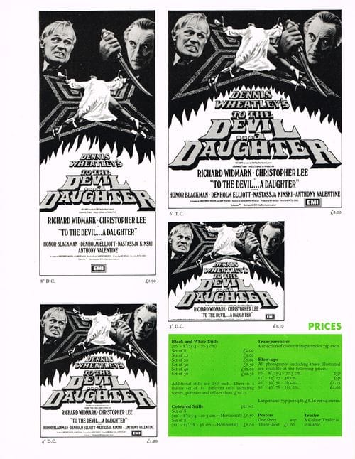 This 11 by 14 inches British pressbook for To the Devil a Daughter is printed on heavy stock paper, has a full-color cover, and the interior page layout is well done. In other words, this pressbook wasn't cheap to produce. Please note there is one picture showing Nastassja Kinski nude from the front.