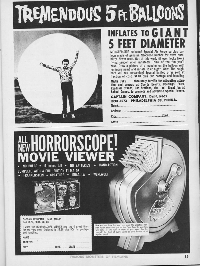 “What is most unique about the success of the Captain Company was the fact that it survived for so long. While it is understandable how reruns of the films would remain popular it is nothing sort of shocking how such massive volumes of tie in merchandise were still selling well into the late 1970’s. Much of the reason for this was the Captain Company’s unique ads that promoted monster “stuff” as the coolest thing in the world and this kept kids sending off their money orders for these great items. Unfortunately, nothing lasts forever and the horror fad faded and interest in tie in merchandise waned to nothingness. But, for a time it was incredibly popular and even more incredibly cool!” (Captain Company and the Lost Era of Magazine Marketing)