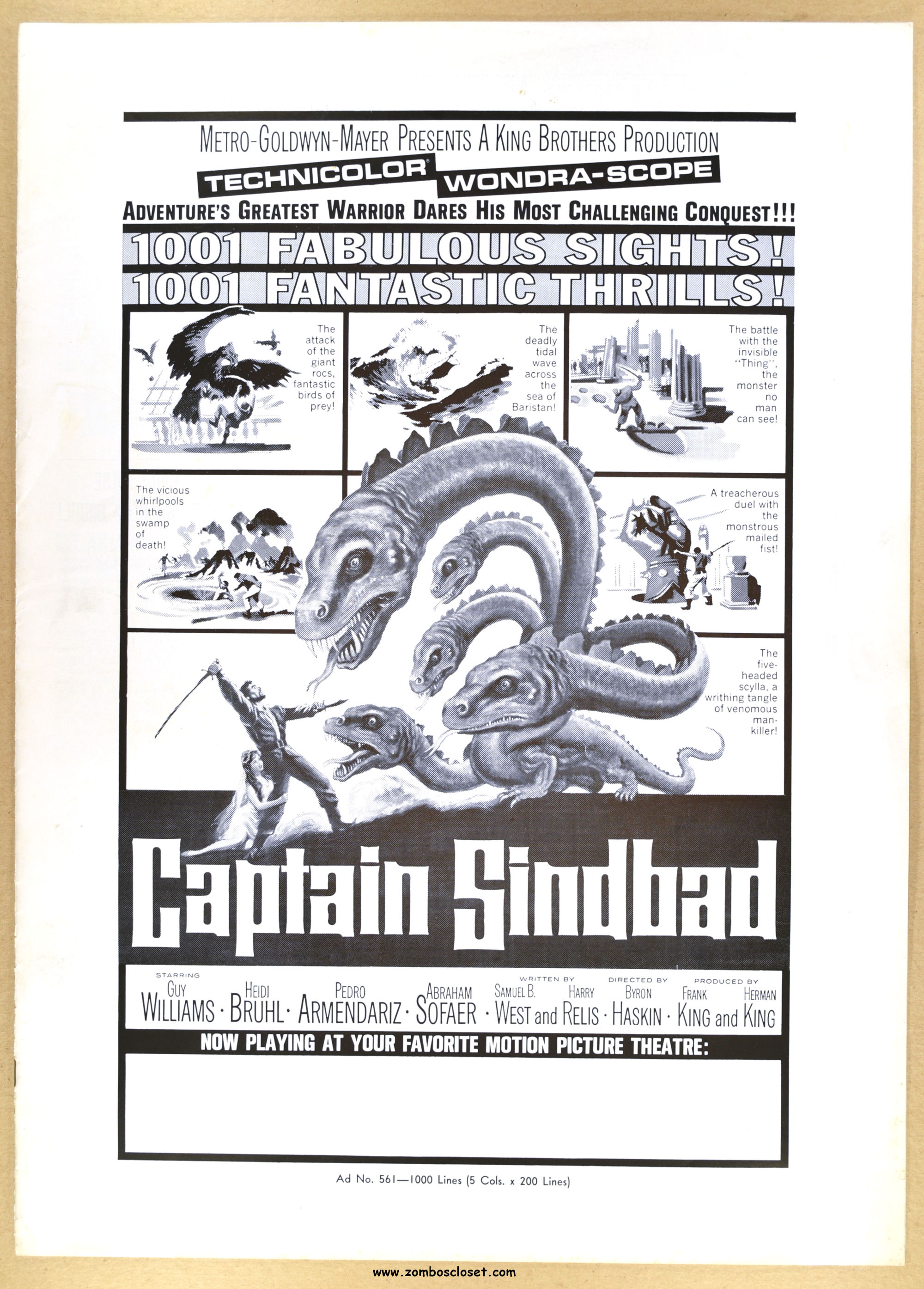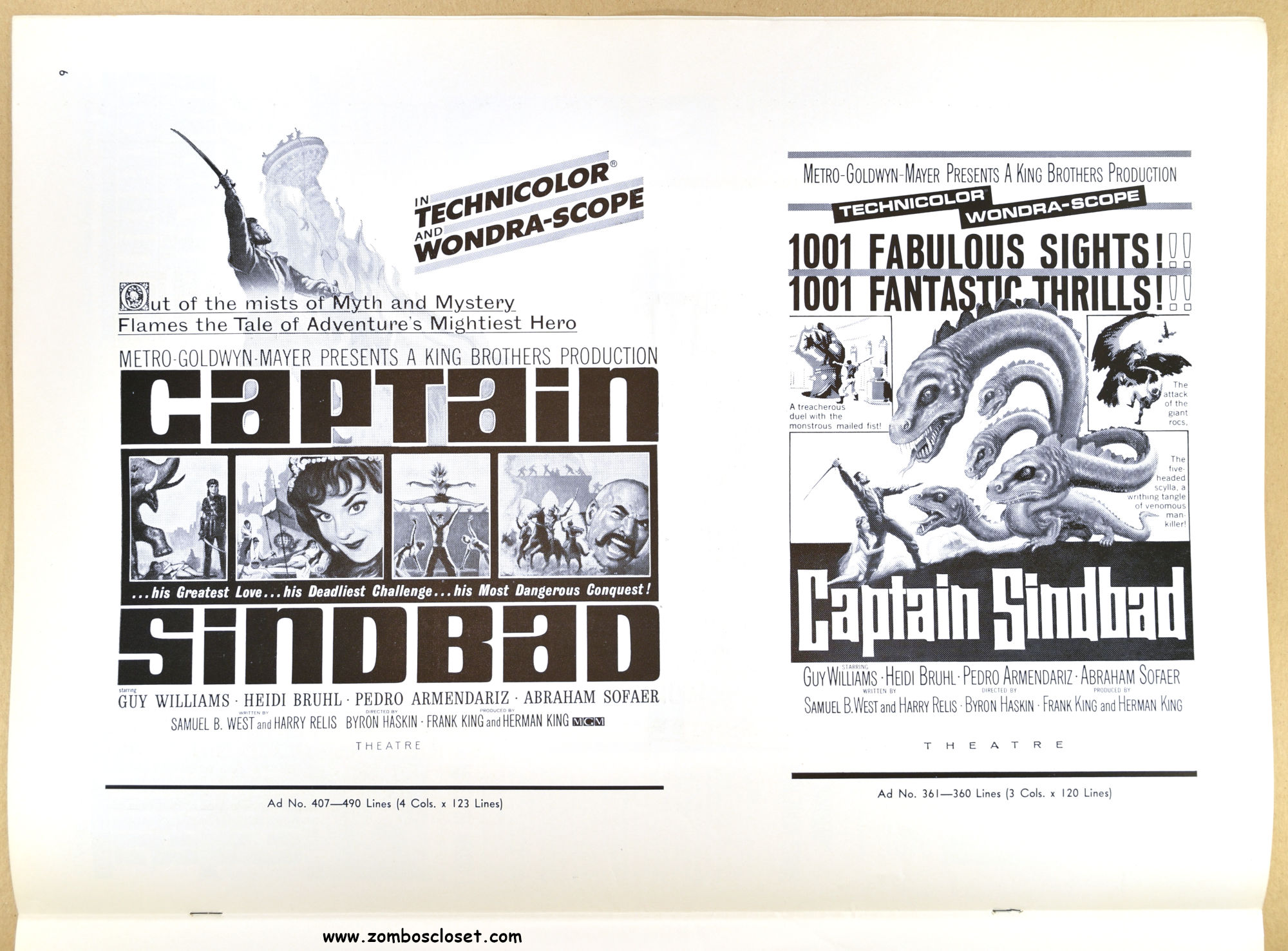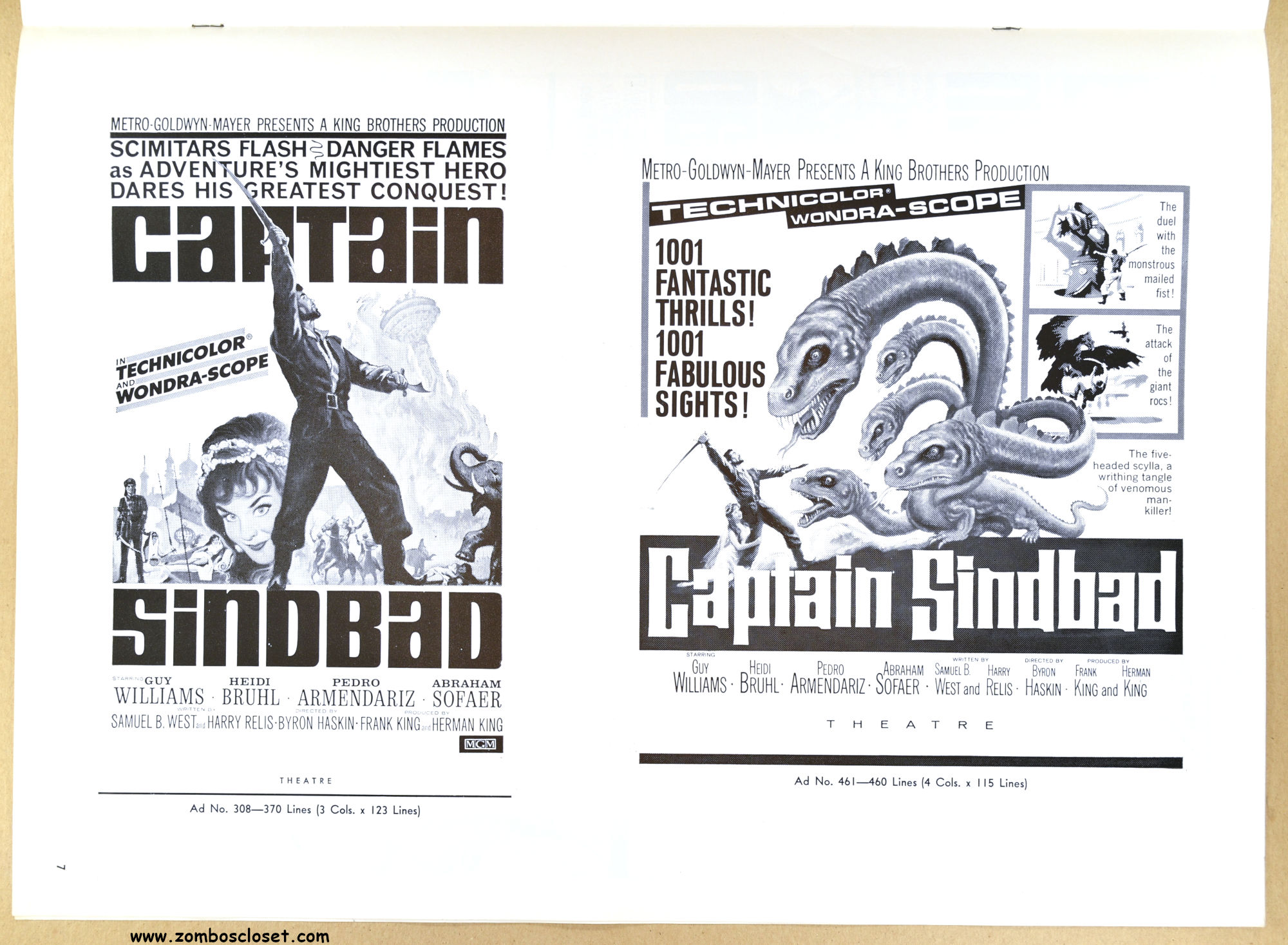 Lost in Space's (the television series) Guy Williams stars. The script was pared down to lower the budget. Unfortunately, Ray Harryhausen was not involved and the film was shot in Germany. Yes, Germany. I haven't seen this one yet, so I'll leave it at that. But the pressbook is great.