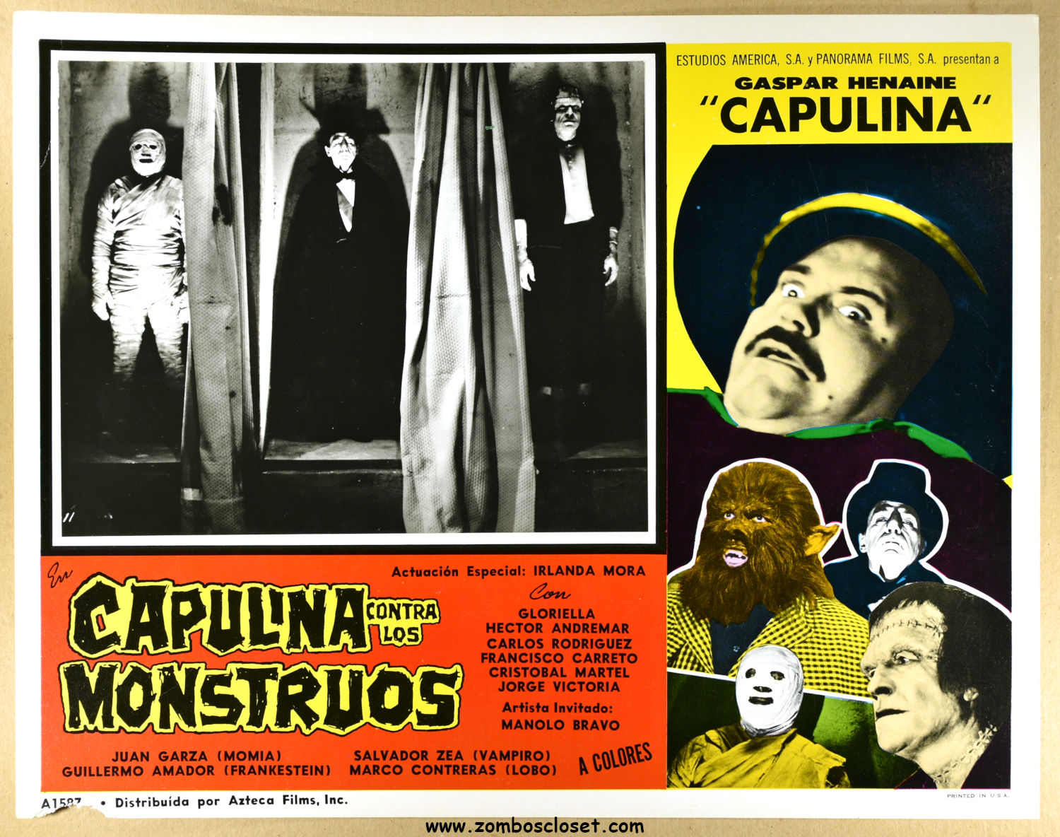Capulina Contra Los Monstruos (1974) Mexican Lobby Card Leave a Comment / Azteca/Mexican Lobby Cards / By JM Cozzoli Abbott and Costello weren't the only comedians to romp around with monsters.Like this:Like Loading... Share this post Facebook Twitter Pinterest Linkedin