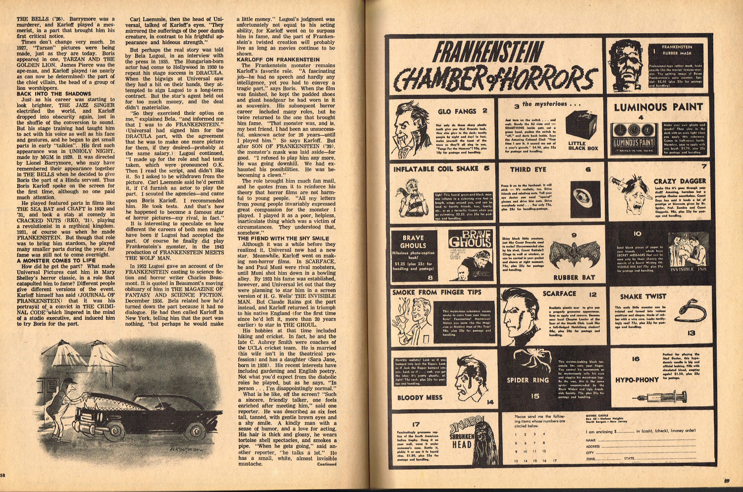Boris Karloff, Frankenstein's Monster, CoF goes to a Super Hero Convention, and the TV Movieguide make this a steal at 50 cents. Check out the Frankenstein Society fan club ad, too. Boy, I wish I had joined it back then. ( Download CBZ formatted Castle of Frankenstein 1967 Fearbook for Your Comic Book Reader)