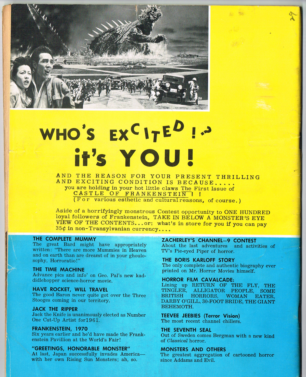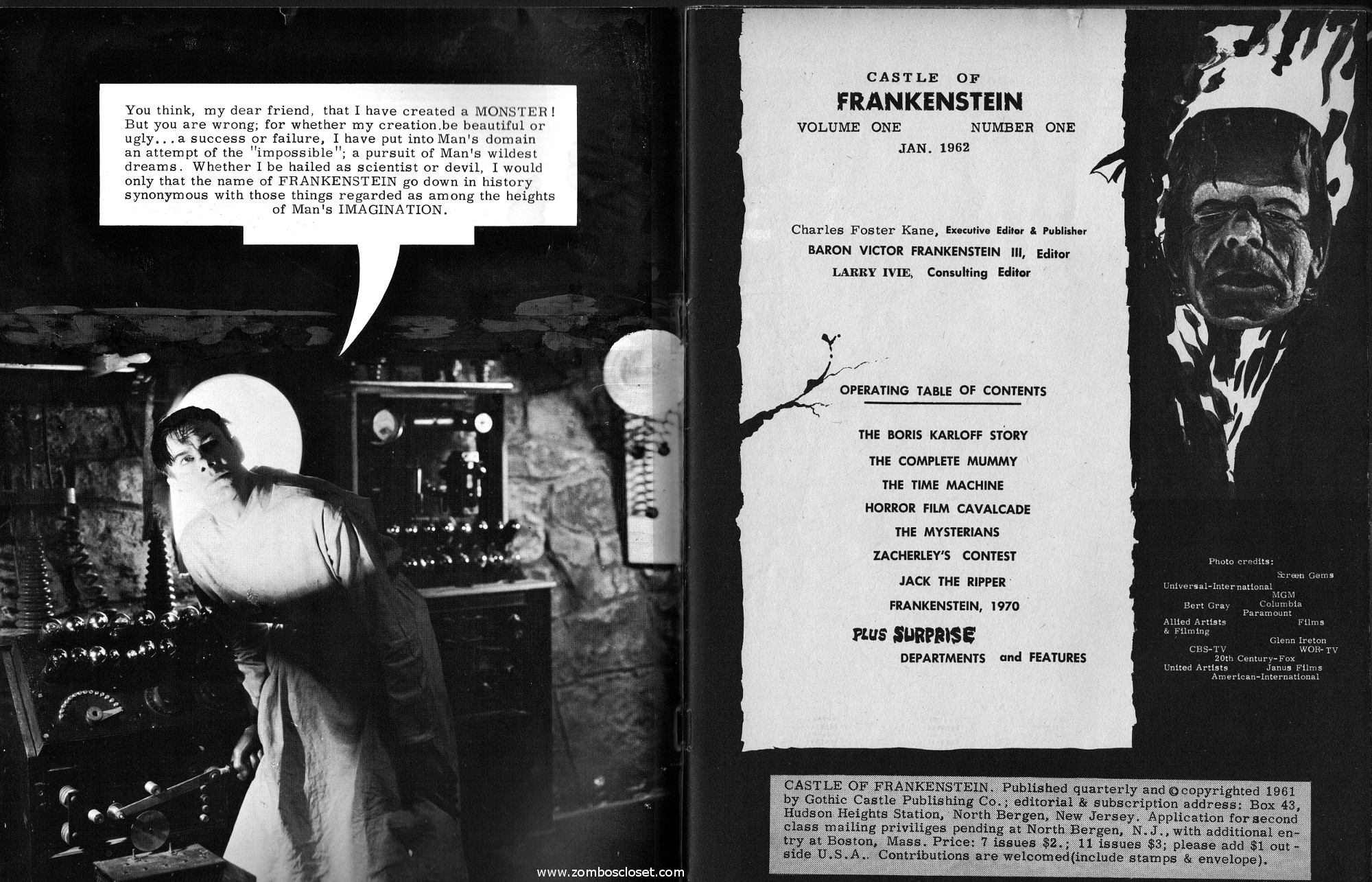- Castle of Frankenstein issues: 1, 2, 3, 4, 15, 17, 1967 Fearbook