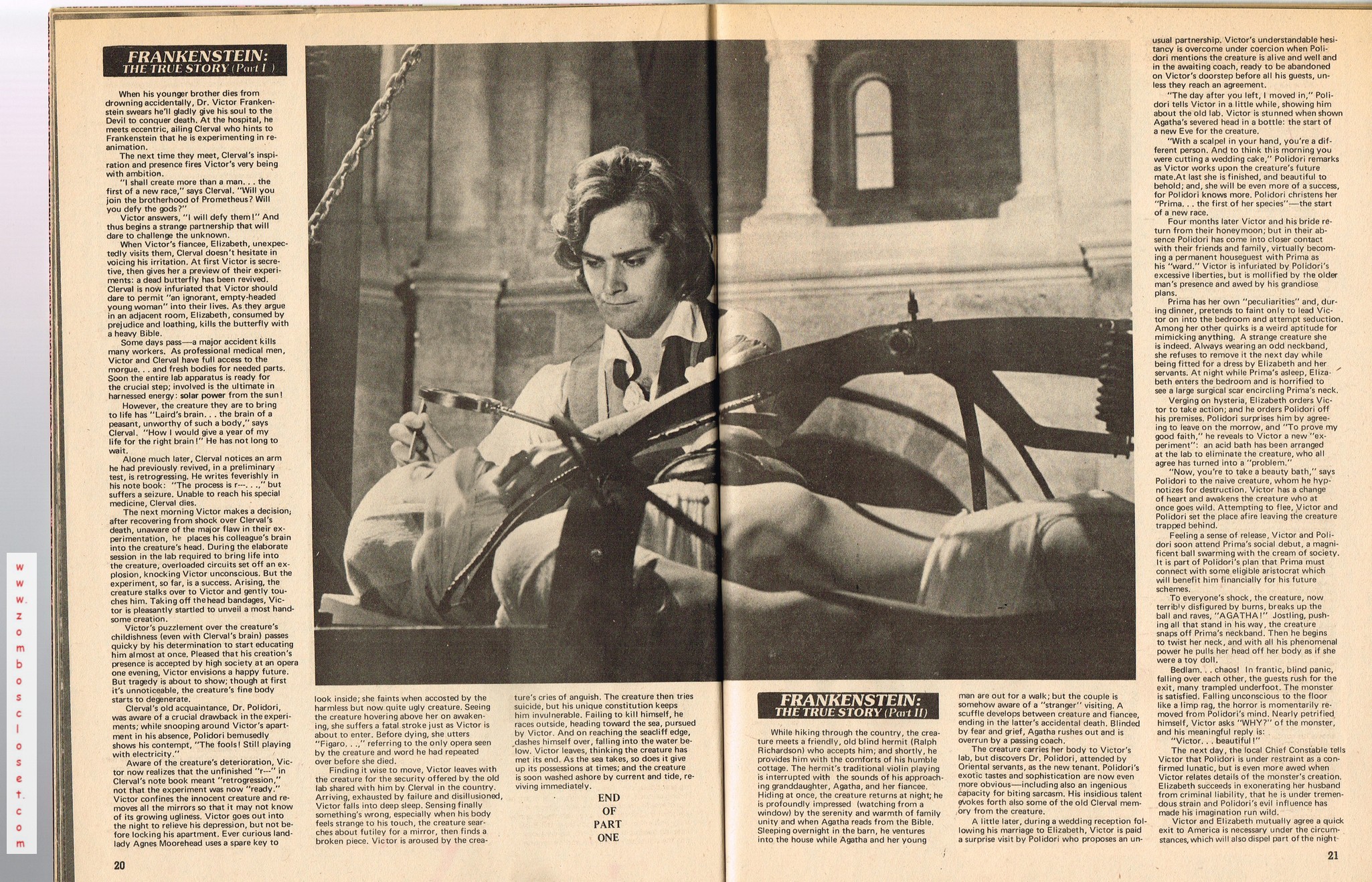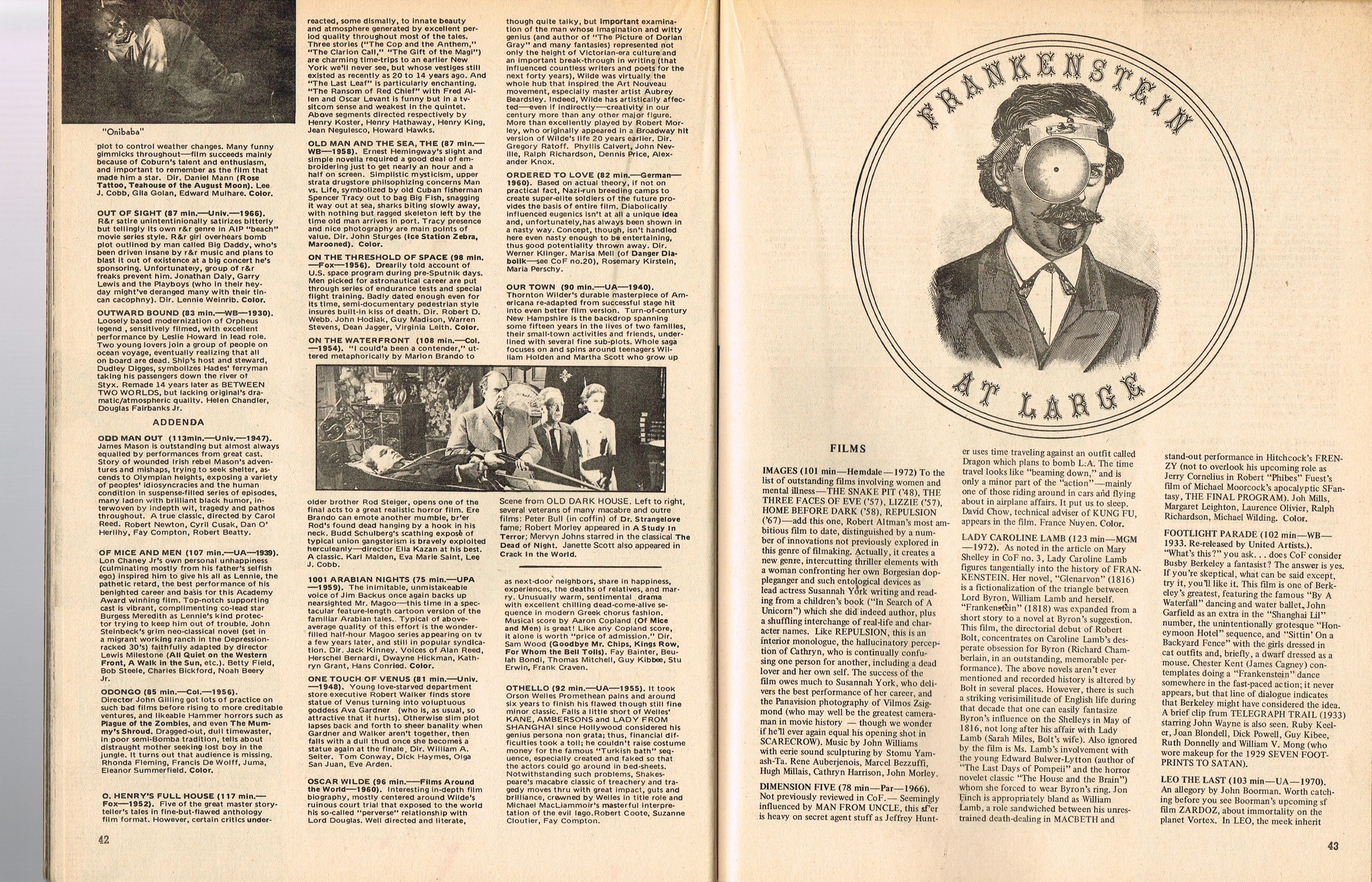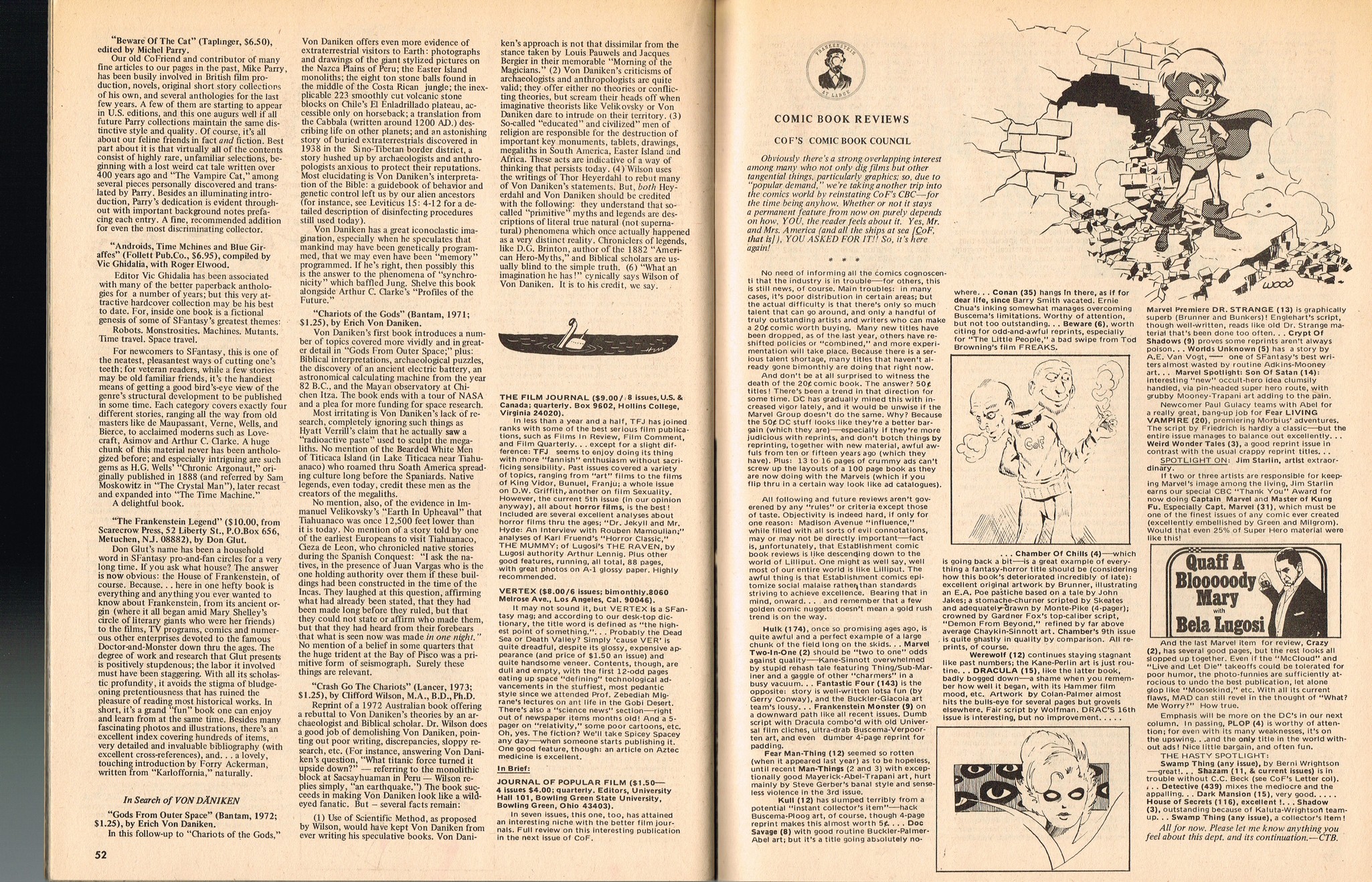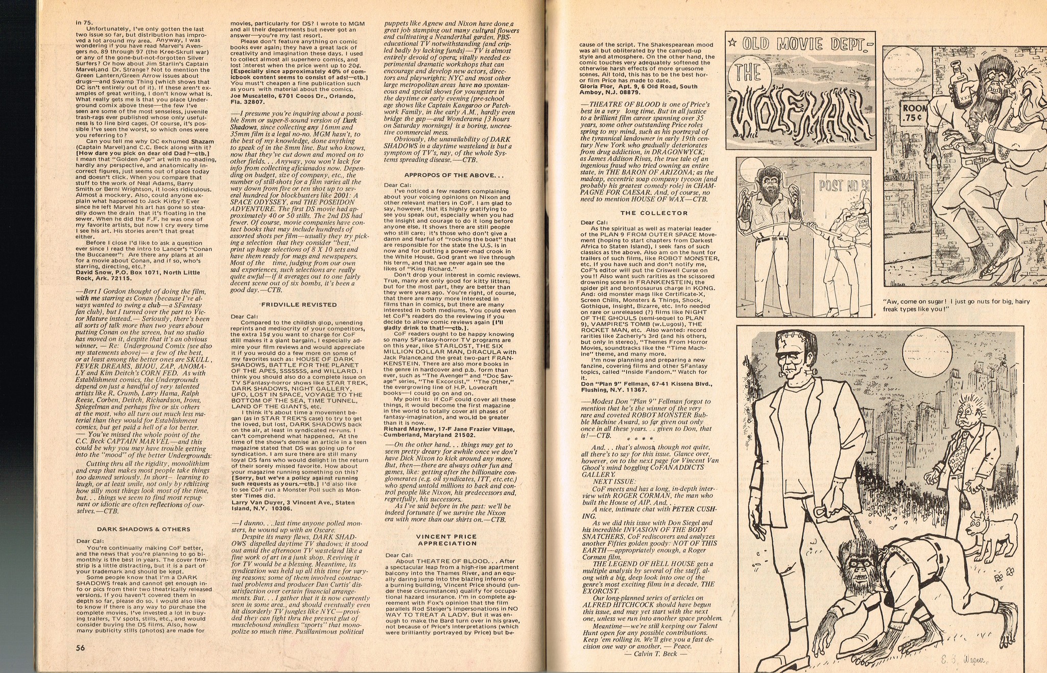 With a gorgeous wraparound cover and coverage on The Golden Voyage of Sinbad, television's Frankenstein: The True Story, and a slaymate of the month pinup with Caroline Munro, this issue is worth the cover price of 75 cents right there. Then there's the interview with Invasion of the Body Snatchers director Don Siegel, foreign movie coverage with Jonathan, and the indispensable Frankenstein TV Movieguide.