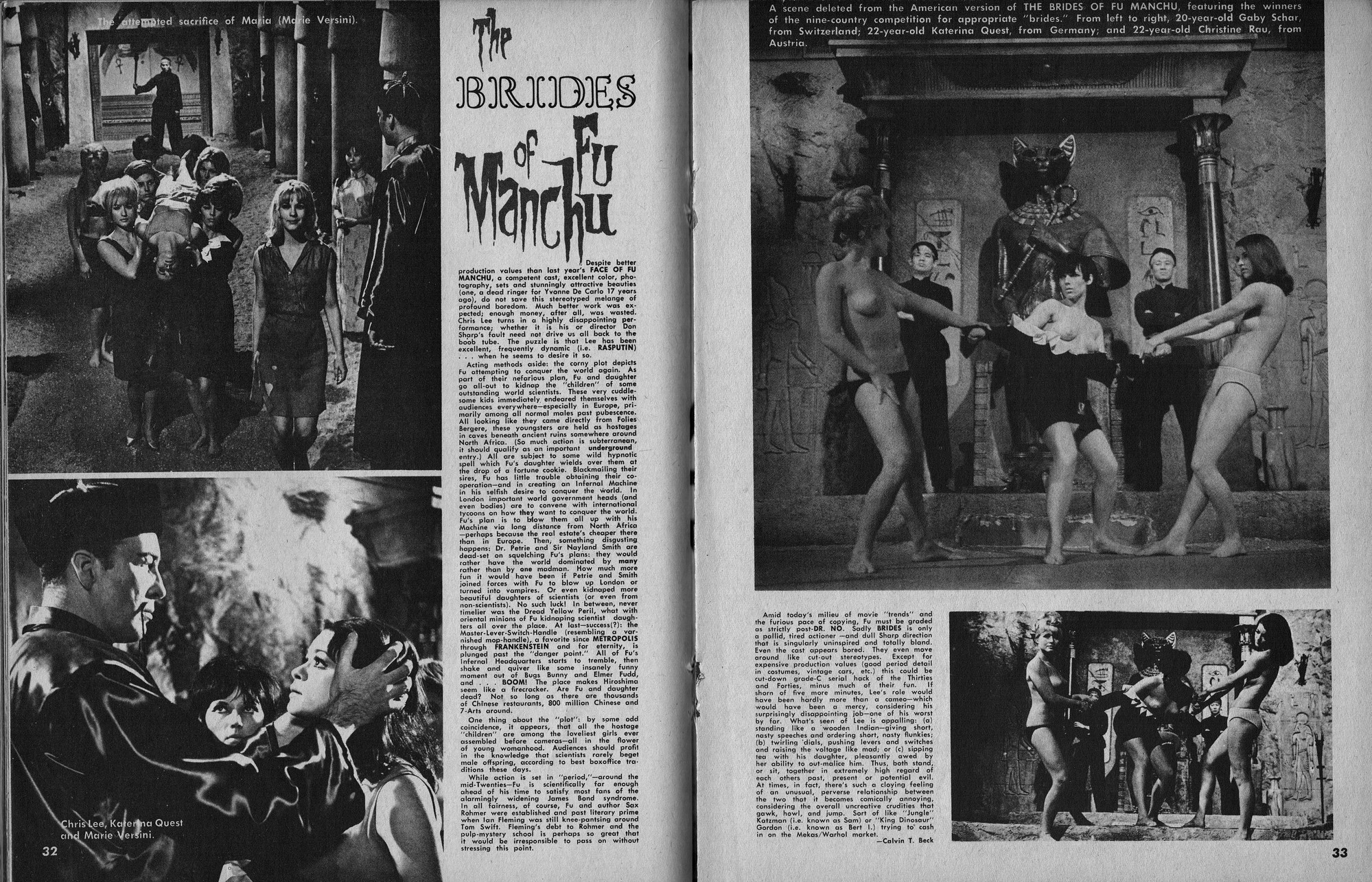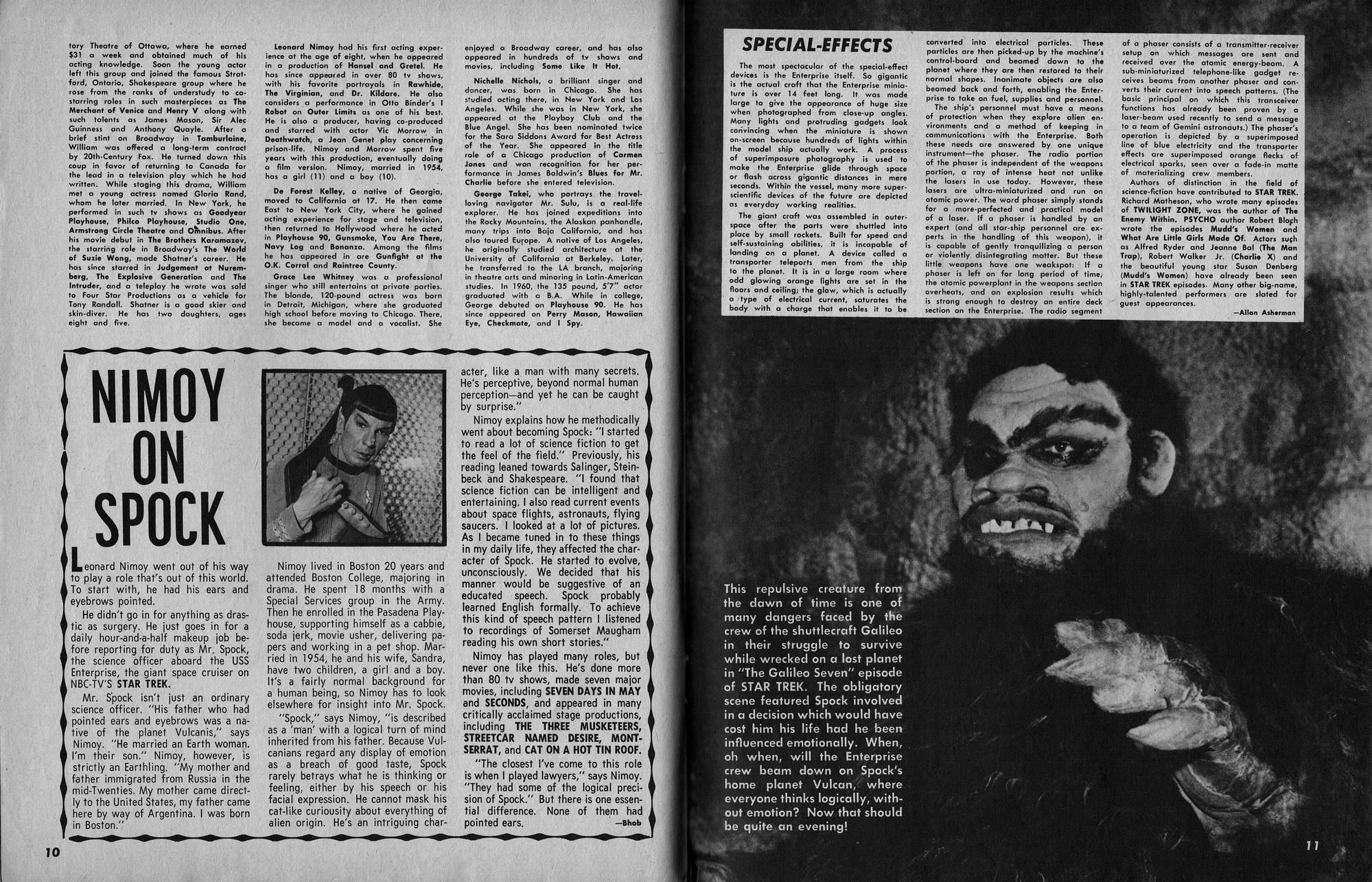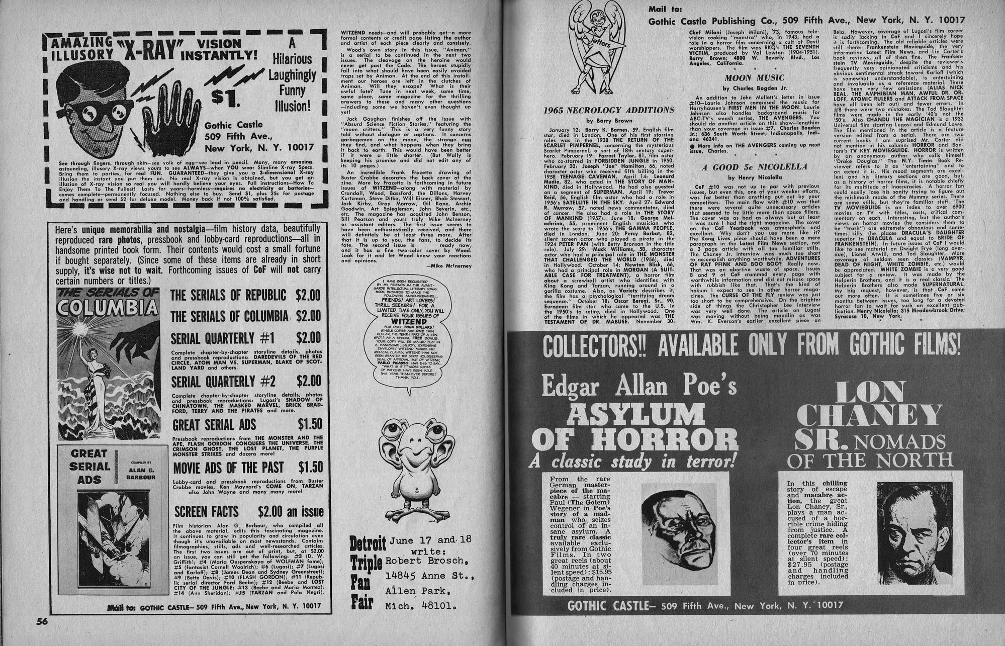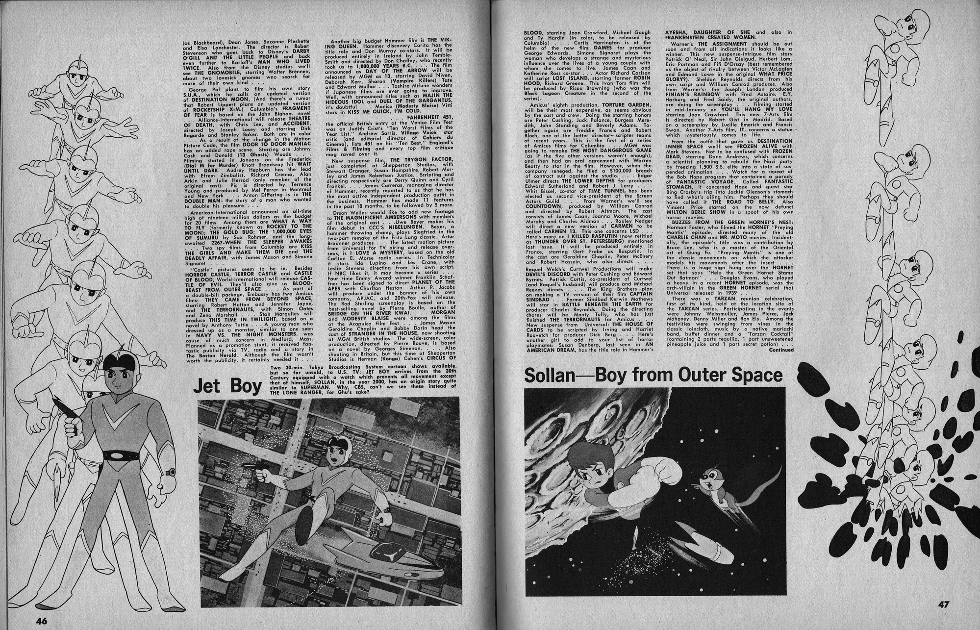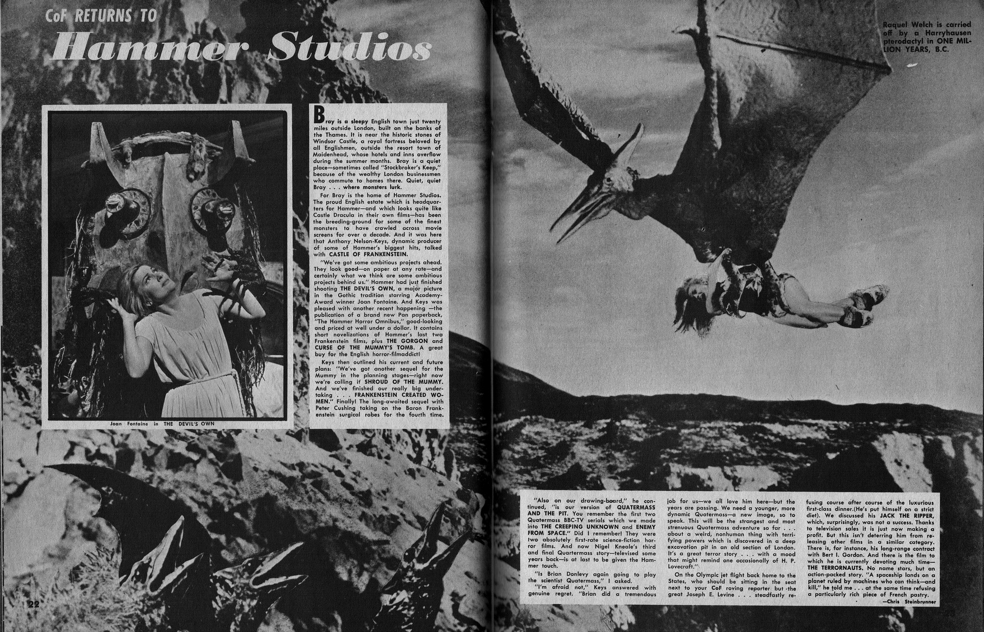 Issue 11 of Castle of Frankenstein, "The Magazine of Psychotomimetic Monsters," is glowing with monster-goodness. Start with a little-seen Dracula photo for the front-inside cover and end with a back-inside cover with Raquel Welch and a T-Rex, then in-between add: The Star Trek Story by Allan Asherman, an endorsement for Star Trek, "the best dramatic TV series ever made," and part two of Christopher Lee's interview. There's more! CoF returns to Hammer Studios, Donald Phelps praises The Horror Chamber of Dr. Faustus, and Steranko is given his due. Oh, wait, there are some topless shots (you know what I mean) of The Brides of Fu Manchu, too. Here's the comic book reader version: Download Castle of Frankenstein Issue 11