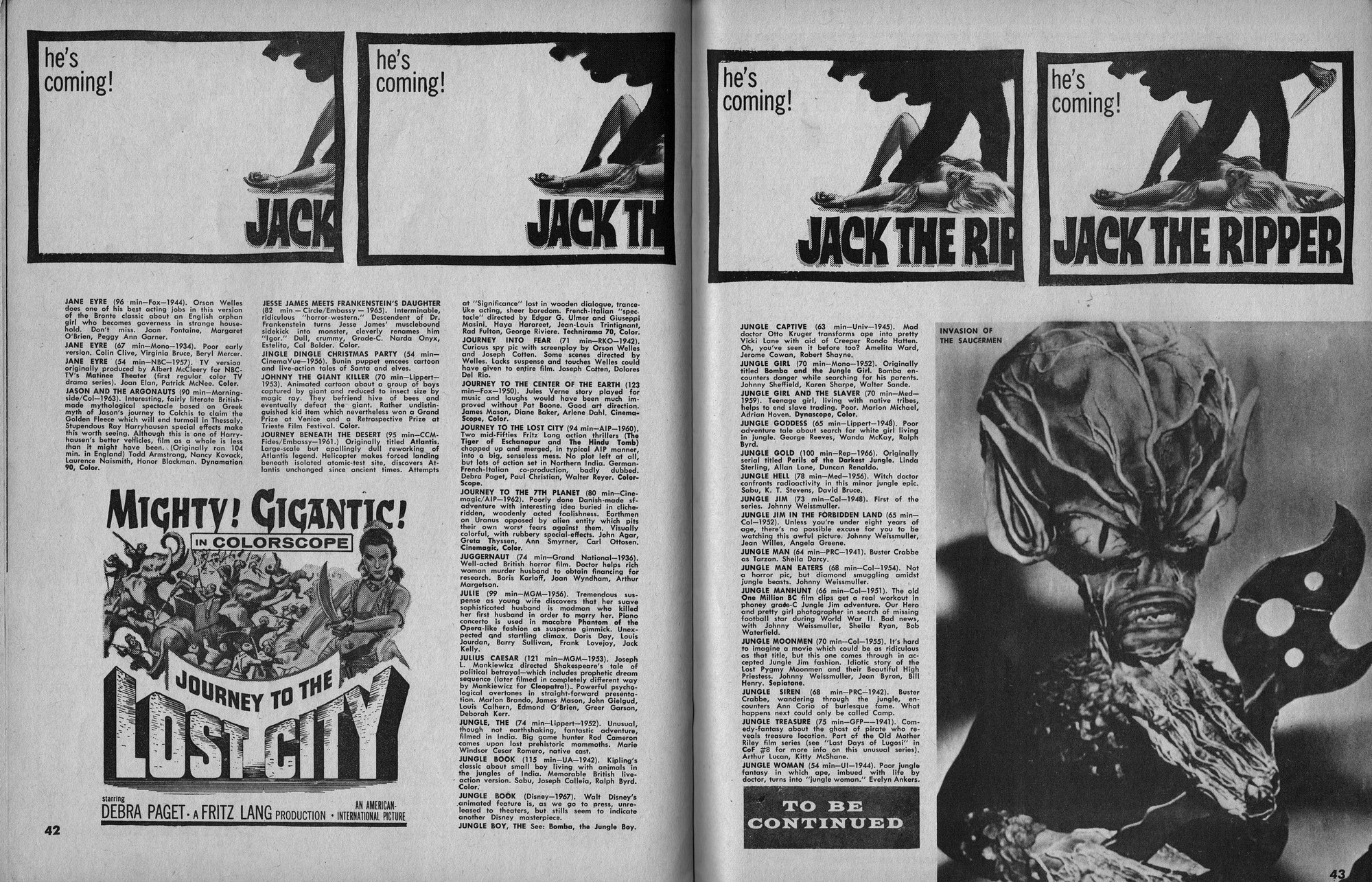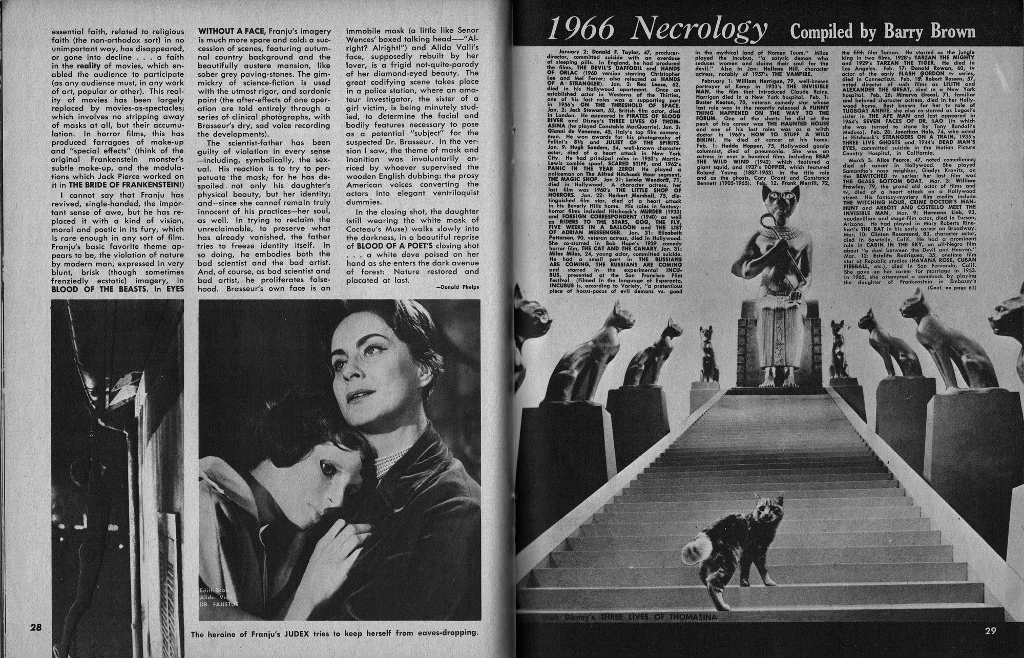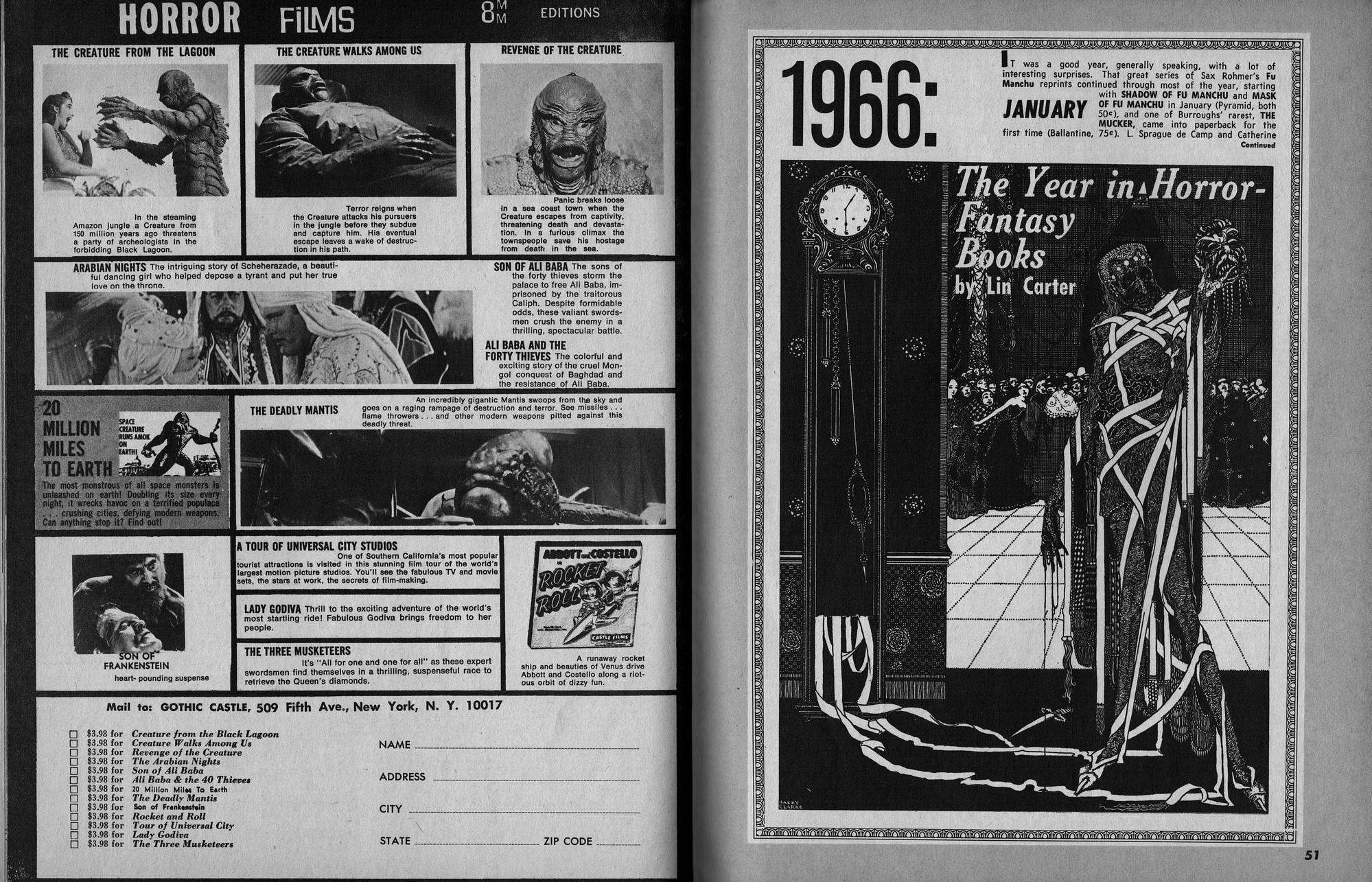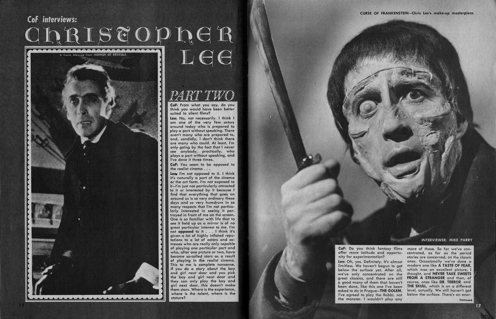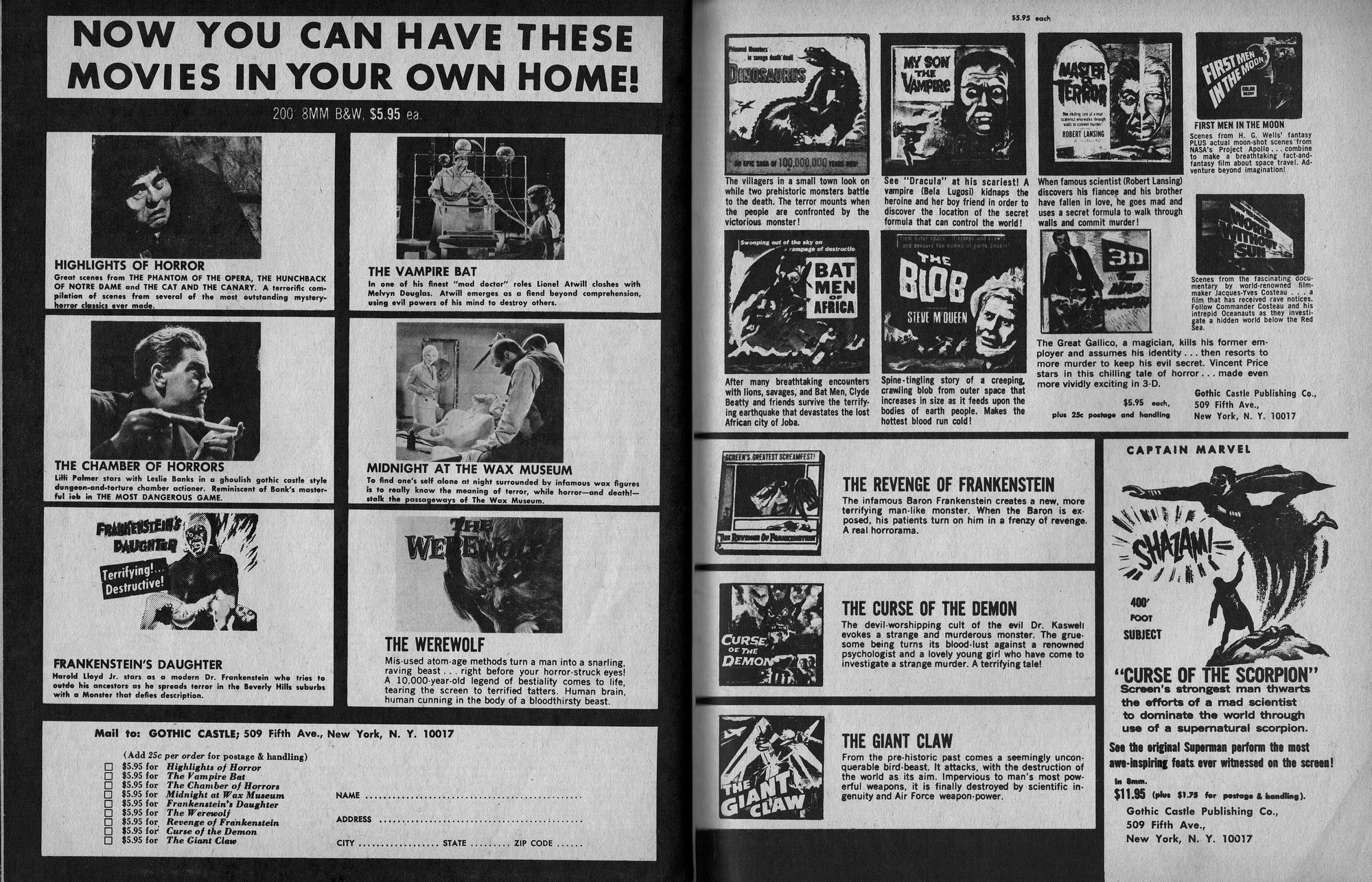 Issue 11 of Castle of Frankenstein, "The Magazine of Psychotomimetic Monsters," is glowing with monster-goodness. Start with a little-seen Dracula photo for the front-inside cover and end with a back-inside cover with Raquel Welch and a T-Rex, then in-between add: The Star Trek Story by Allan Asherman, an endorsement for Star Trek, "the best dramatic TV series ever made," and part two of Christopher Lee's interview. There's more! CoF returns to Hammer Studios, Donald Phelps praises The Horror Chamber of Dr. Faustus, and Steranko is given his due. Oh, wait, there are some topless shots (you know what I mean) of The Brides of Fu Manchu, too. Here's the comic book reader version: Download Castle of Frankenstein Issue 11
