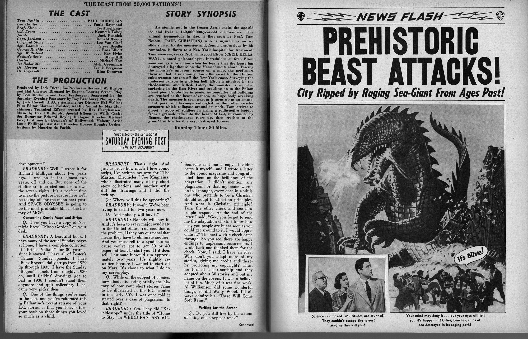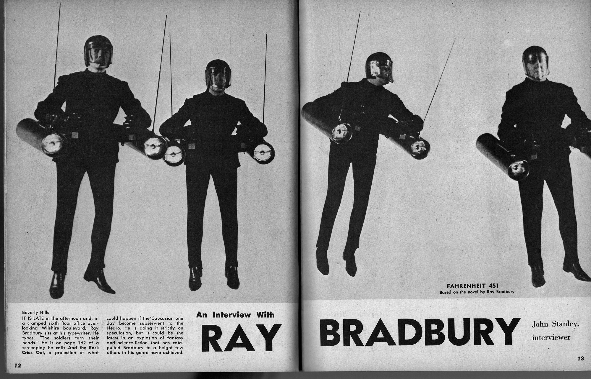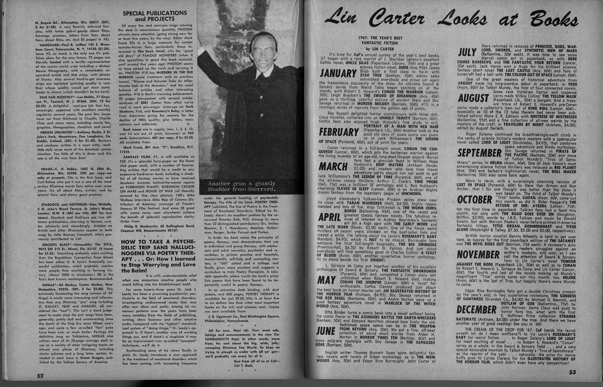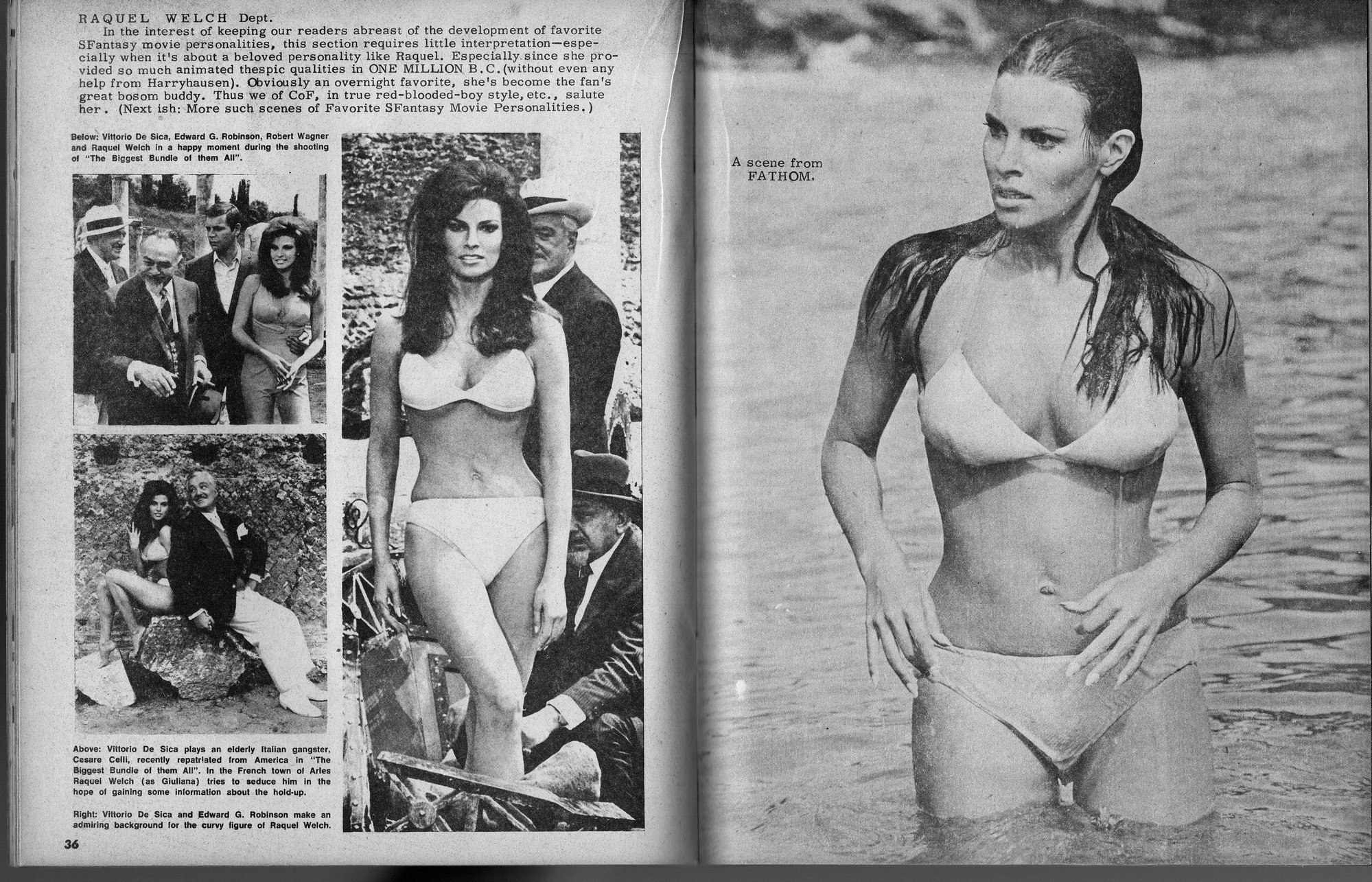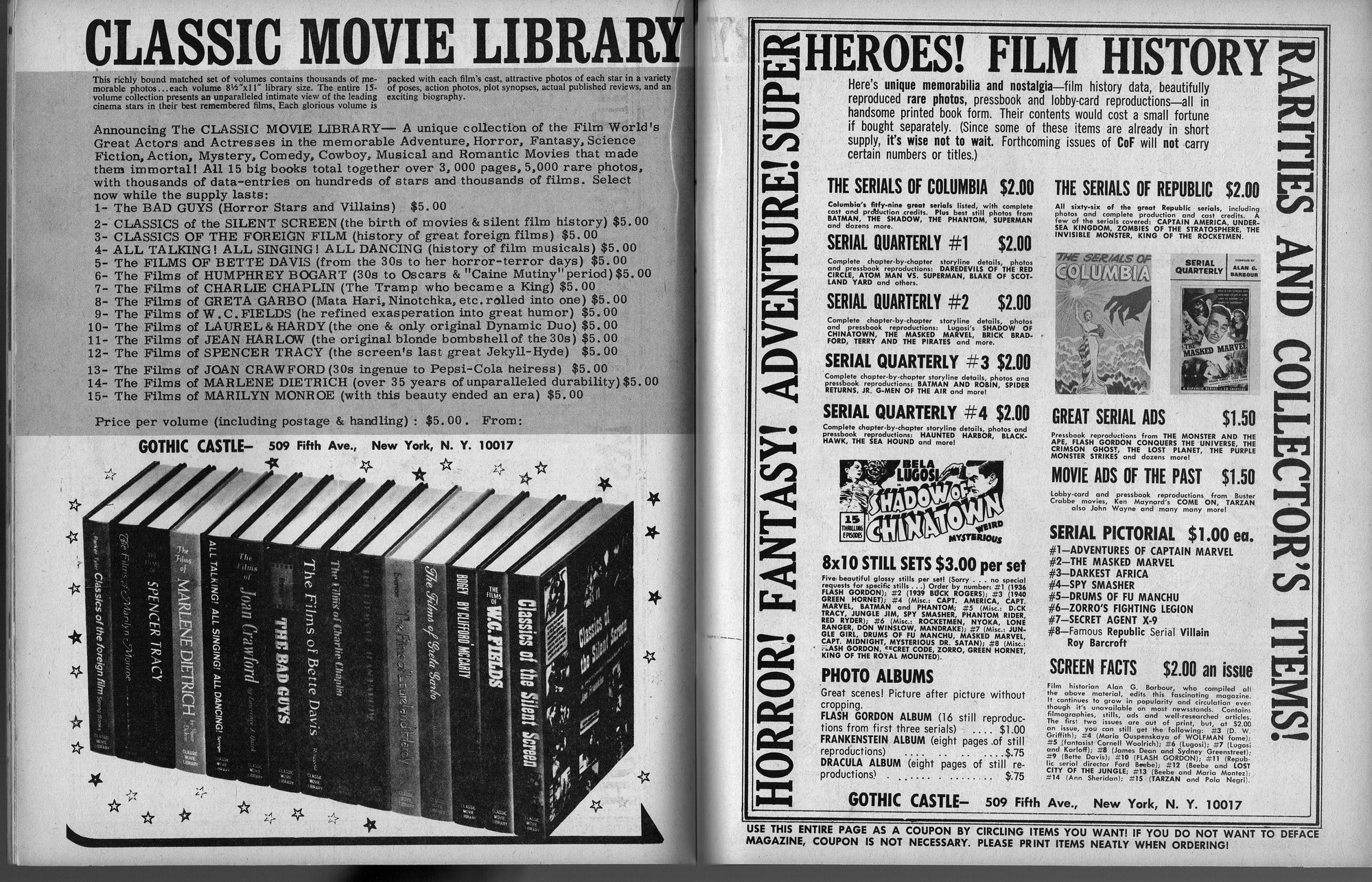 With Some Thoughts on Kubrick's 2001: A Space Odyssey, John Stanley's Interview with Ray Bradbury, and How They Filmed The Planet of the Apes, this would be a great issue already, but there's more. There's also An Interview With Basil Rathbone, fan magazines reviewed, and a fun on the set picture with Glenn Strange and comedian Ole Olsen on page 5. Here's the comic book reader version:  Download Castle of Frankenstein Issue 13