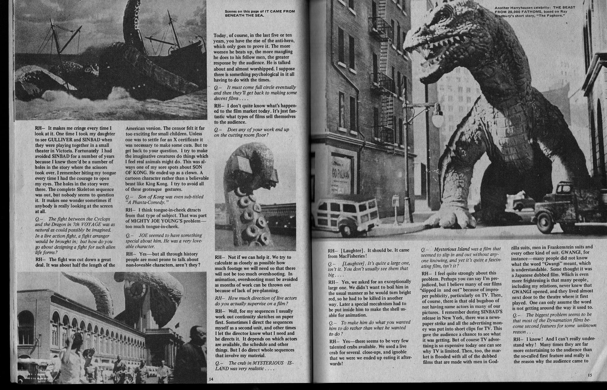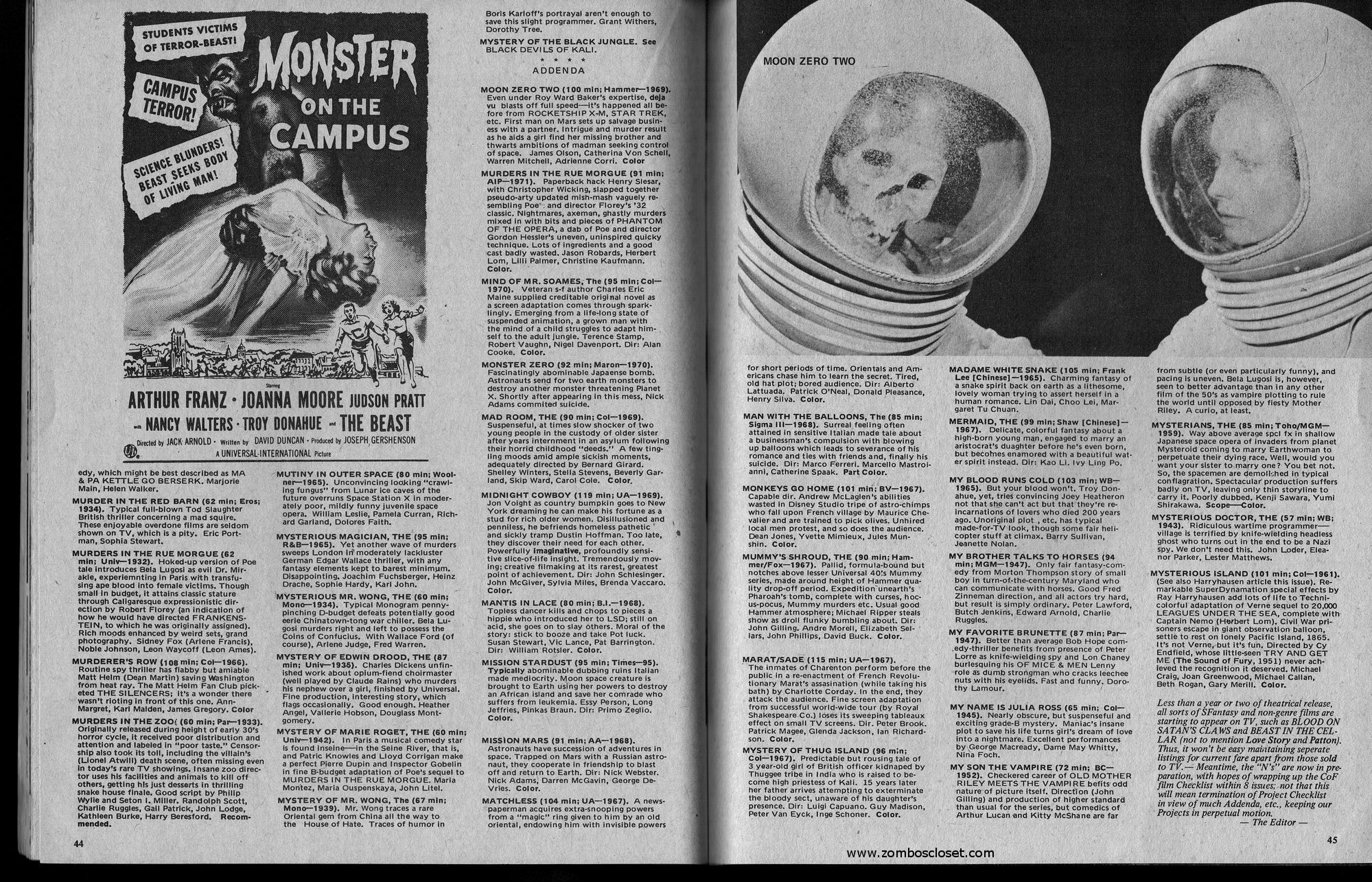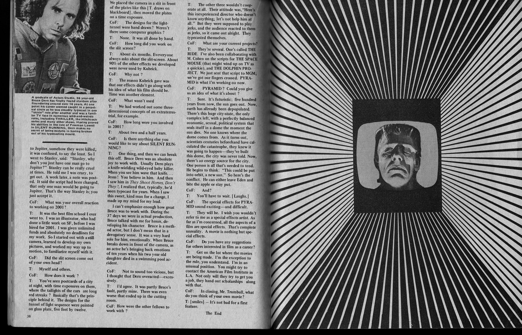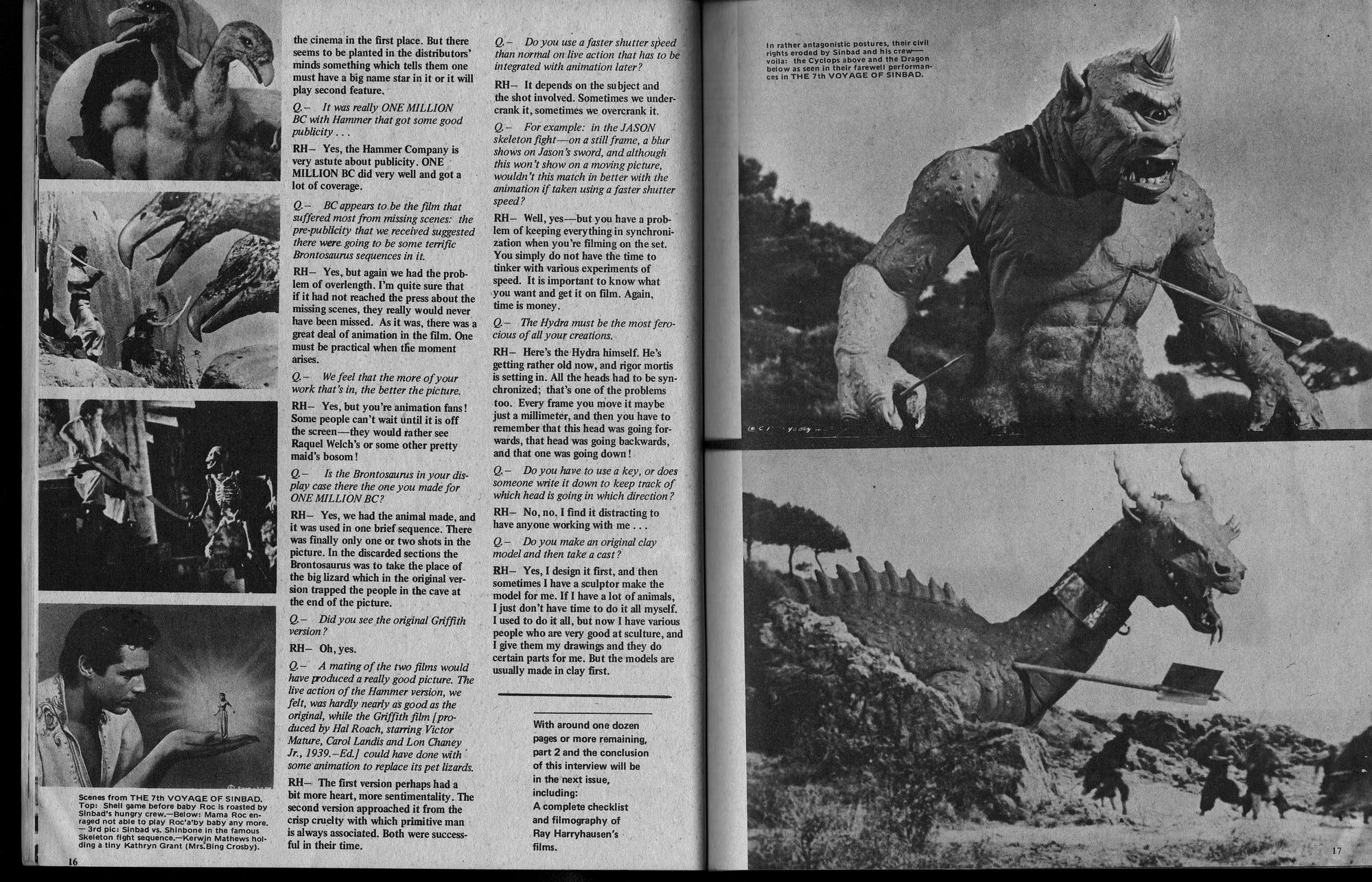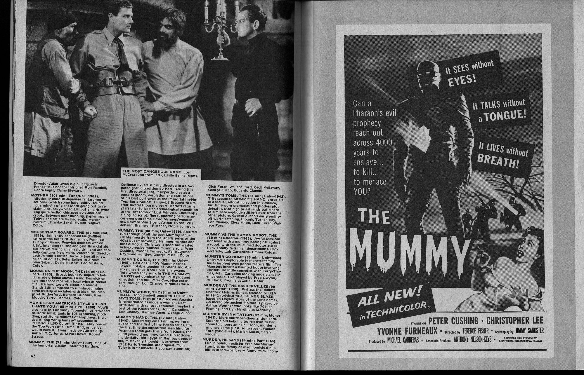 Issue 19 of Castle of Frankenstein contains the usual reviews (including Hammer Horror) and interviews (with Ray Harryhausen and Douglas Trumbull). Social commentary (this is the 1970s) enters with CoF's best horror film of the year choice: Vietnamese children running from a napalm attack.  A reader really dislikes issue 18 and wishes CoF would publish more frequently.