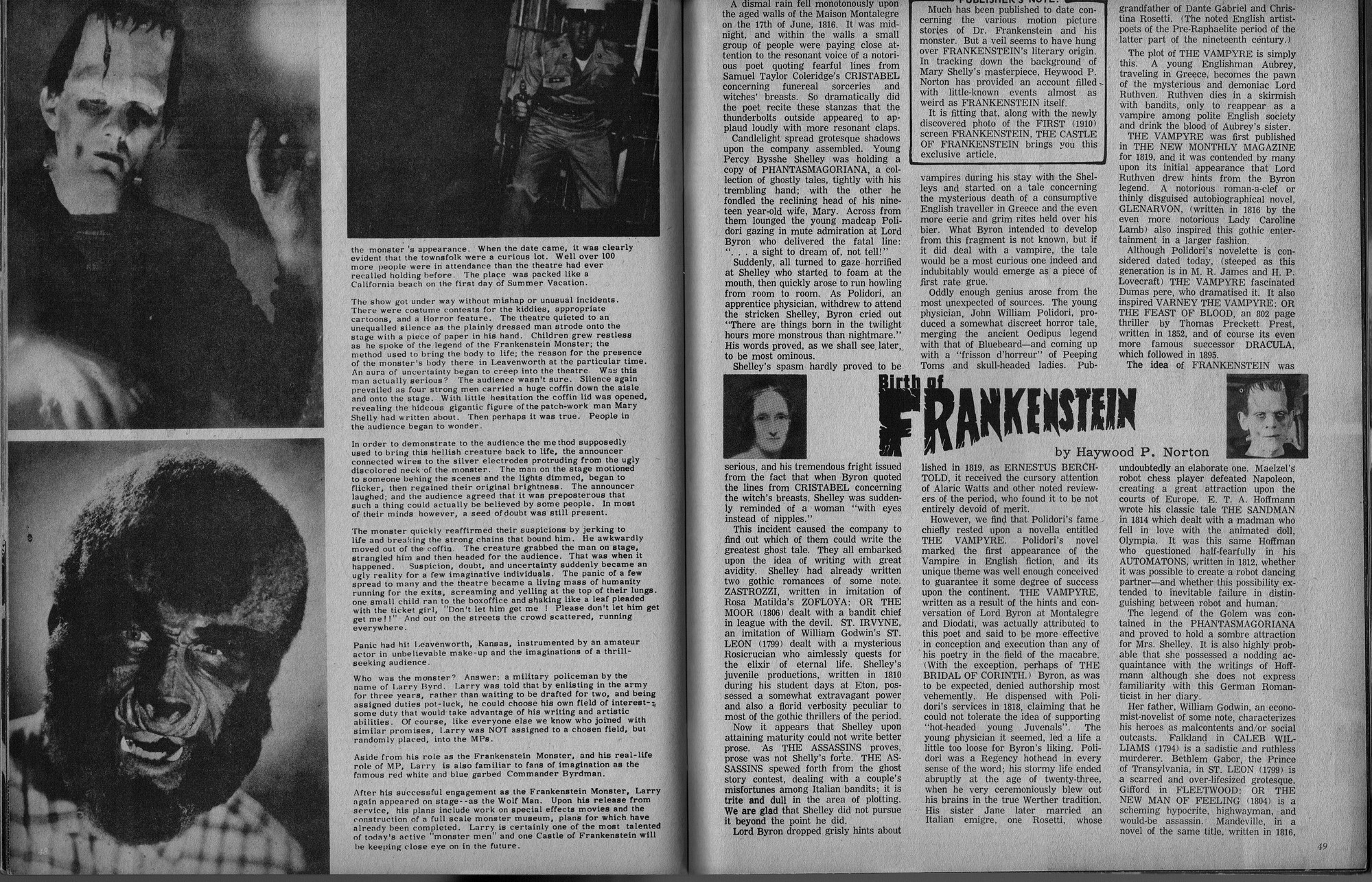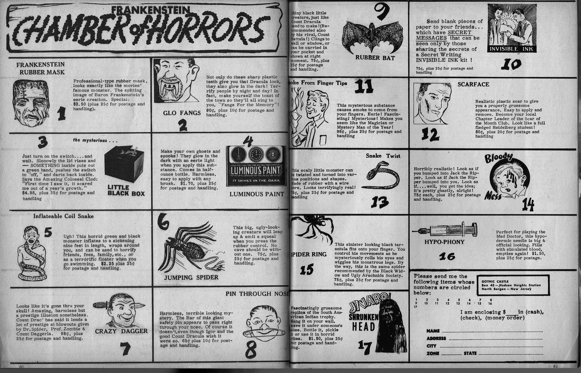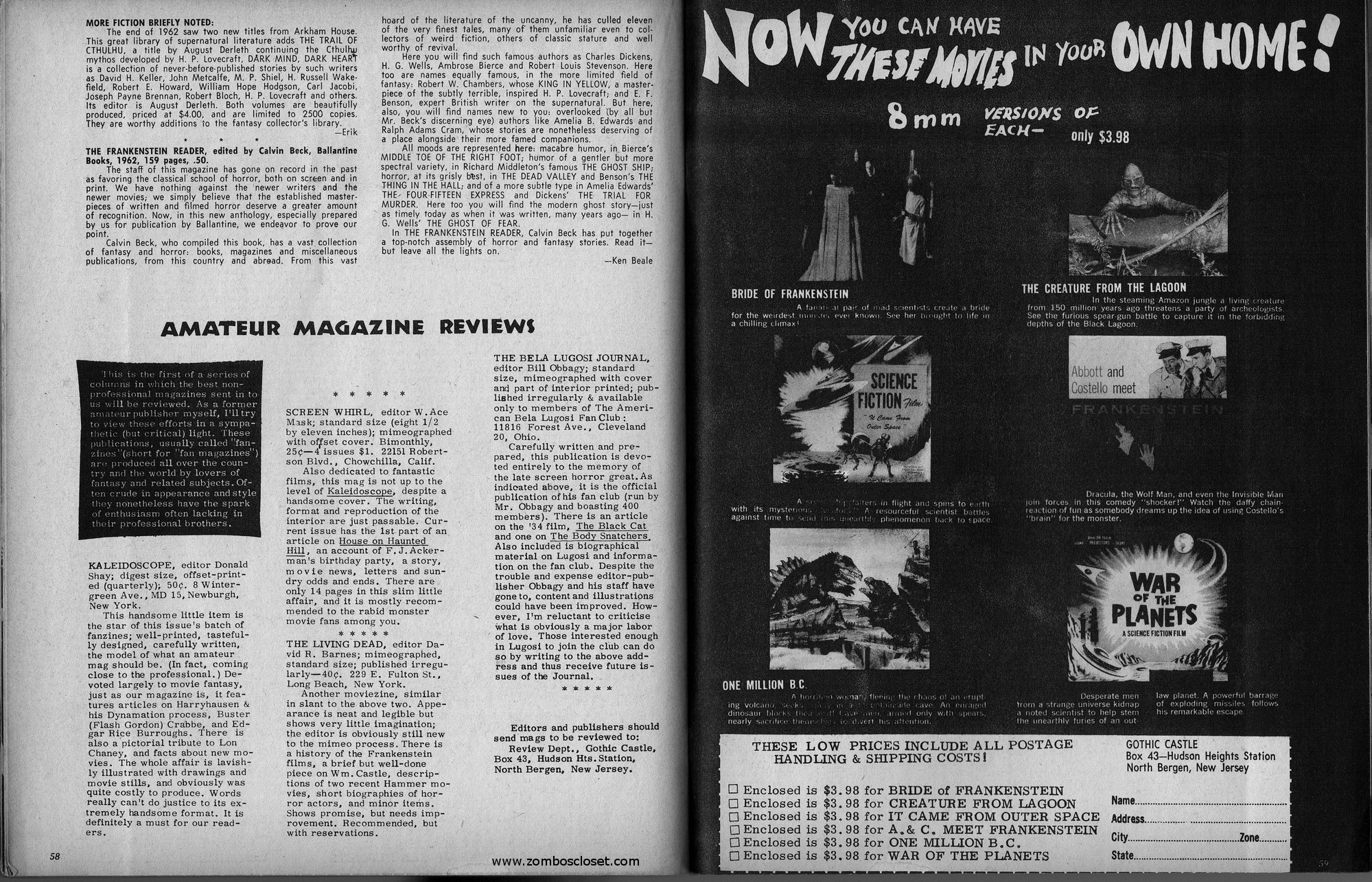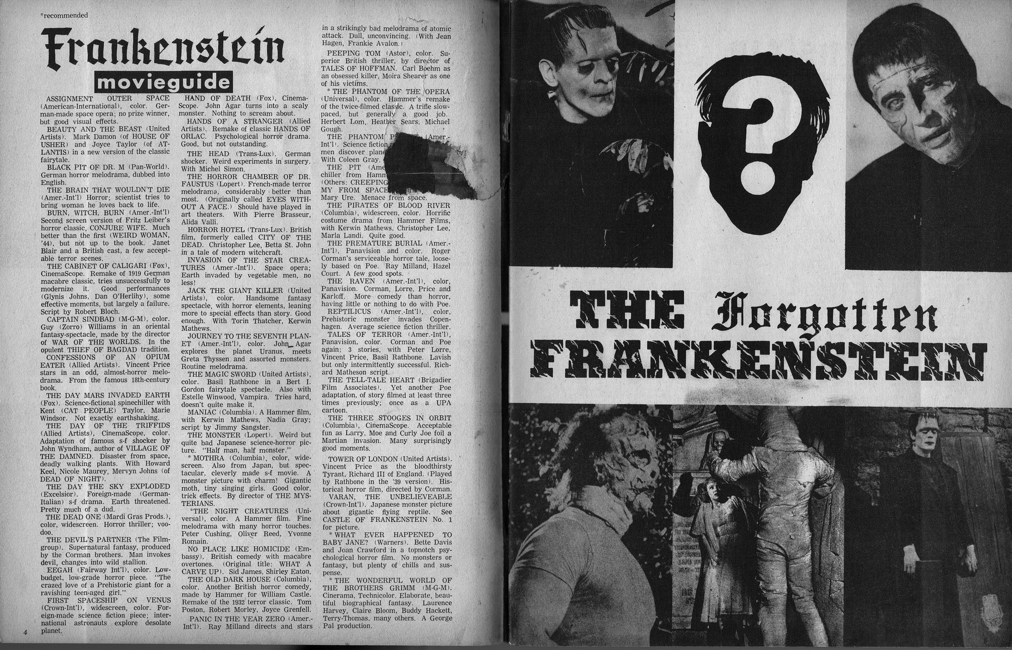 - Castle of Frankenstein issues: 1, 2, 3, 4, 15, 17, 1967 Fearbook
