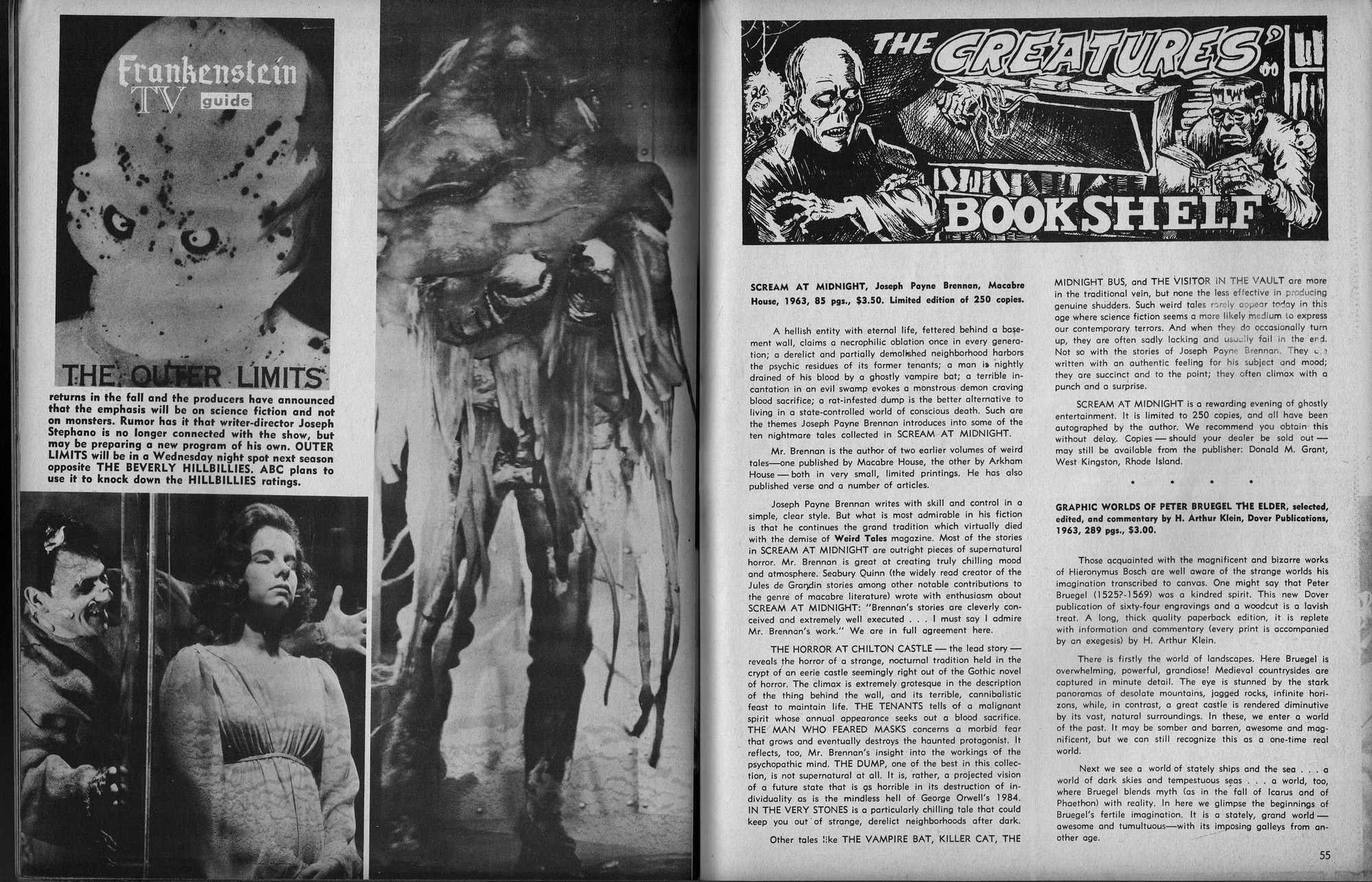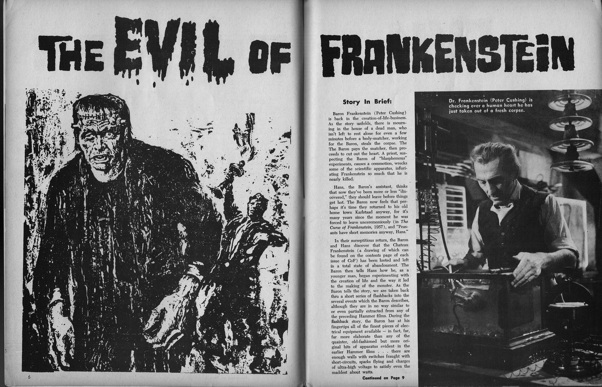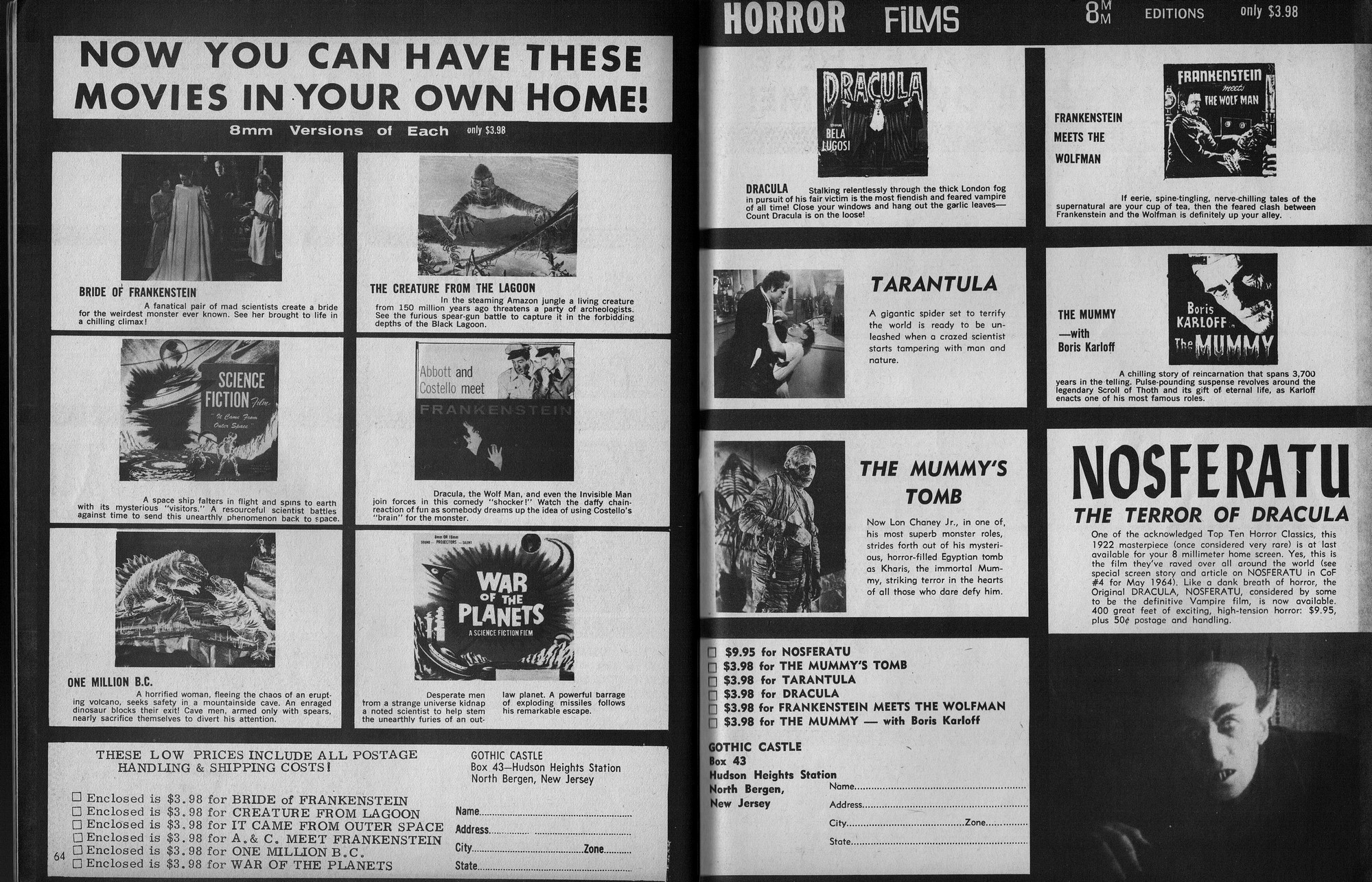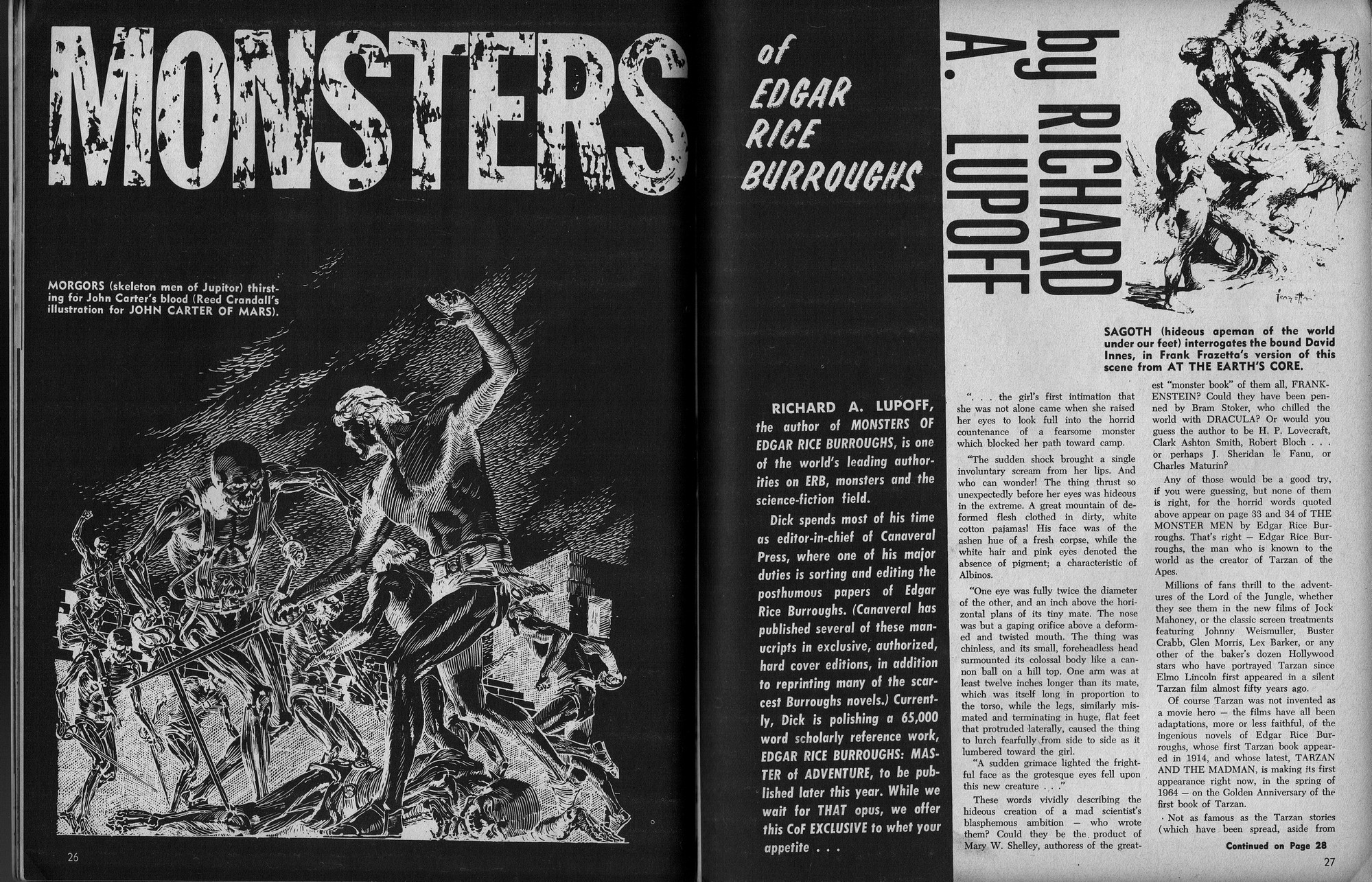 Peter Lorre receives attention from Richard Bojarski and William K. Everson in issue 5 of Castle of Frankenstein. This issue also marks the last of the illustrated covers. The Monsters of Edgar Rice Burroughs are revealed by Richard A. Lupoff and The Evil of Frankenstein is duly noted with lots of pictures. Directors Arthur Lubin and Jean Cocteau receive recognition, too. (This copy courtesy of Professor Kinema.) Here's the comic book reader version: Download Castle of Frankenstein Issue 5