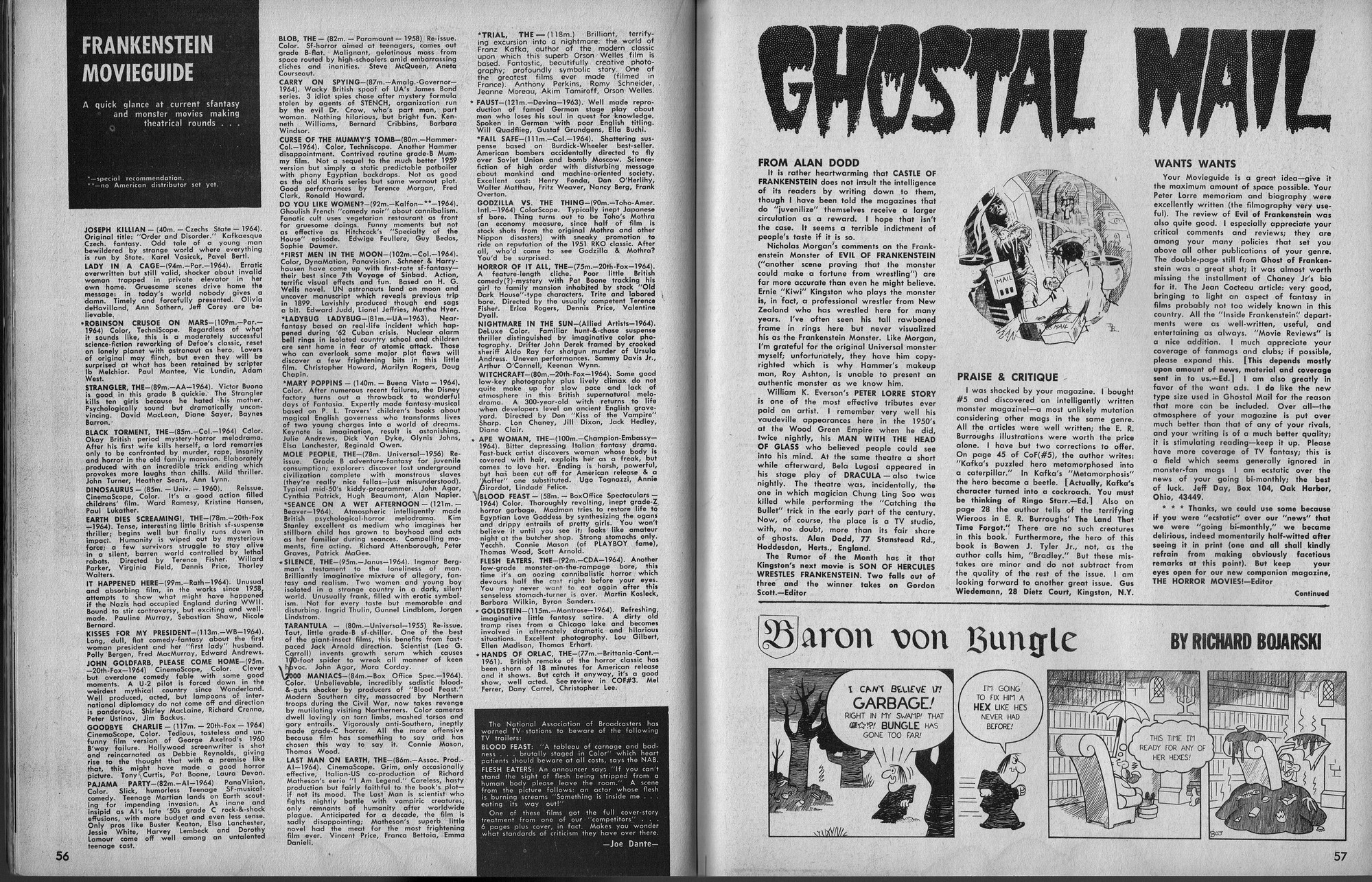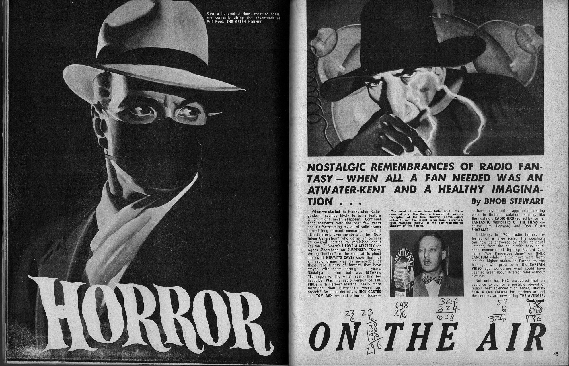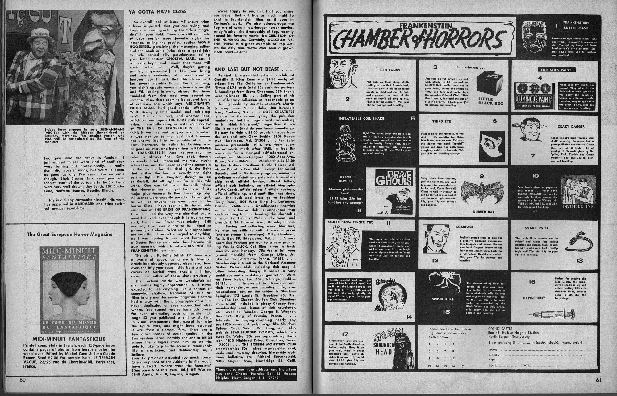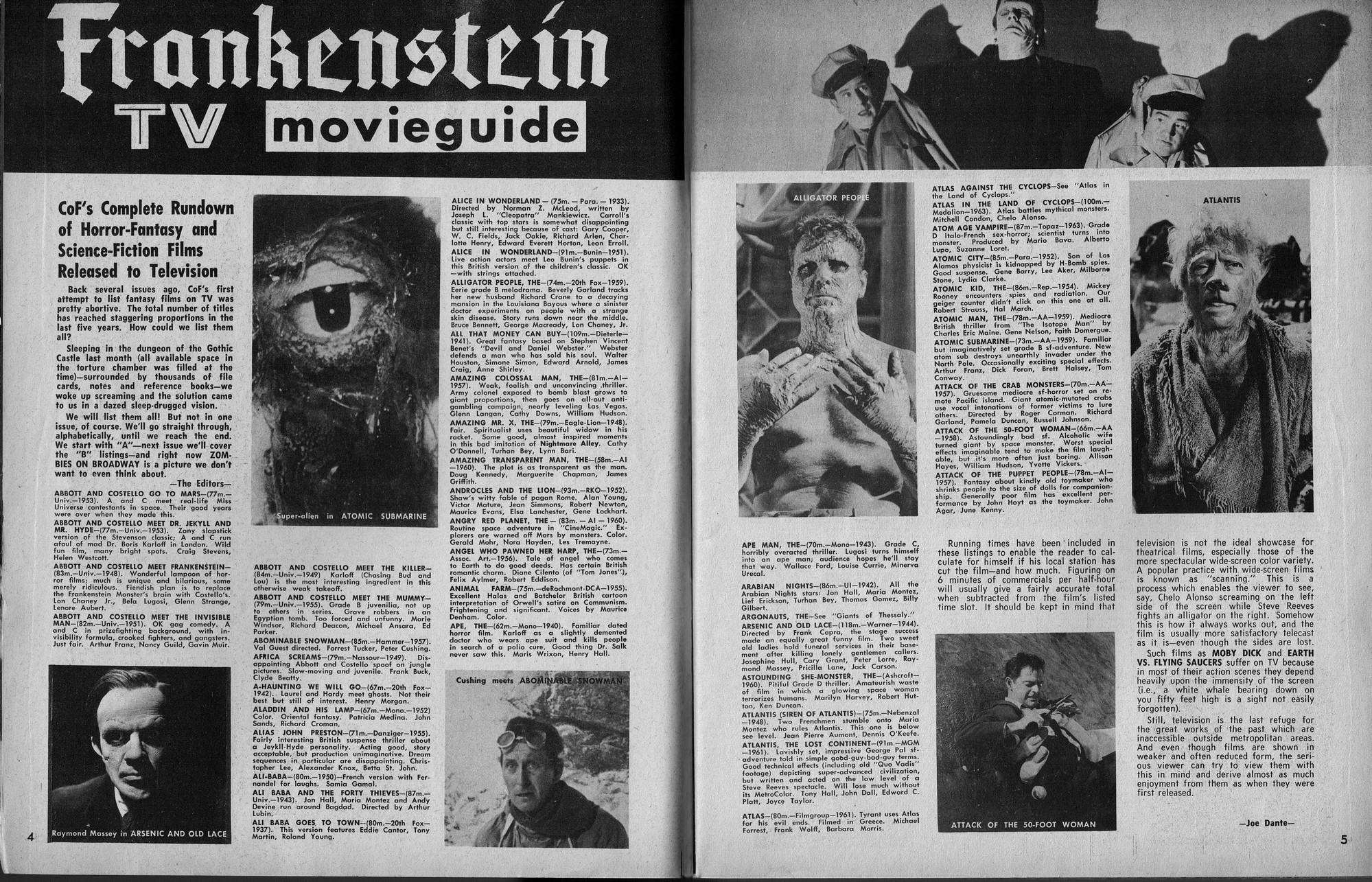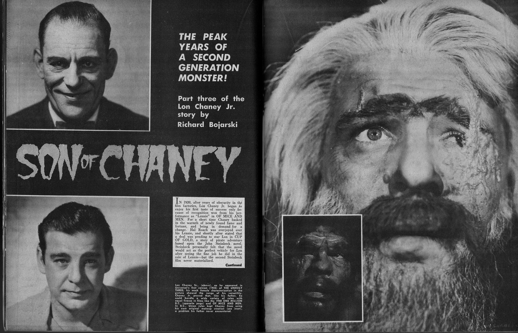 Lon Chaney Jr’s monstrous creations, The Munsters, and Christopher Lee kick off the 6th issue of Castle of Frankenstein. A timely article on Alfred Hitchcock (for me, that is: I had just watched the documentary, Hitchcock/Truffaut, and I’m reading the splendid book) is to die for, and a nostalgic look at Horror on the Air and those wonderful radio shows makes this a solid reading experience.