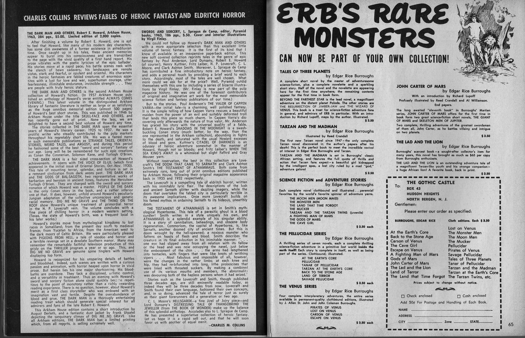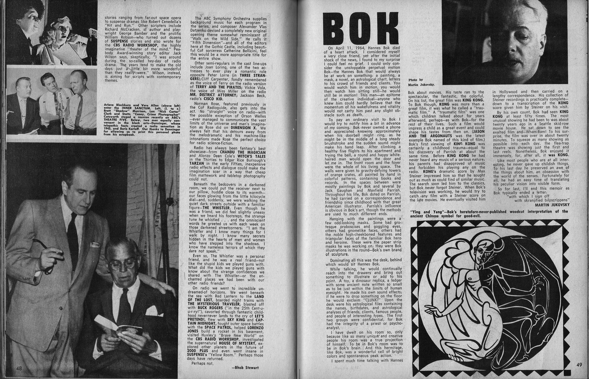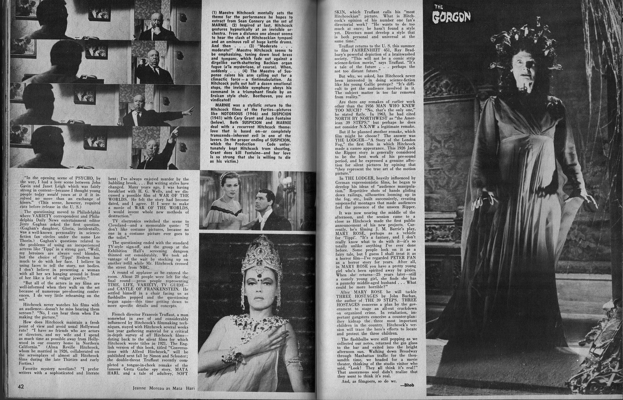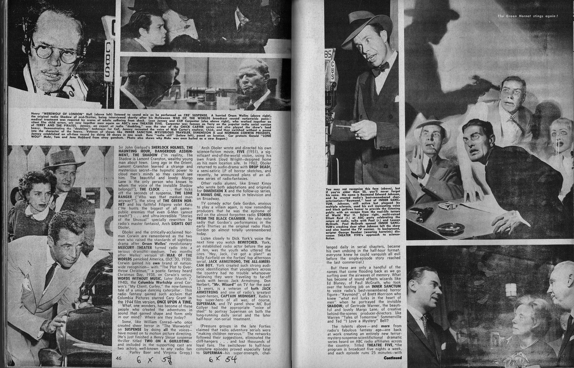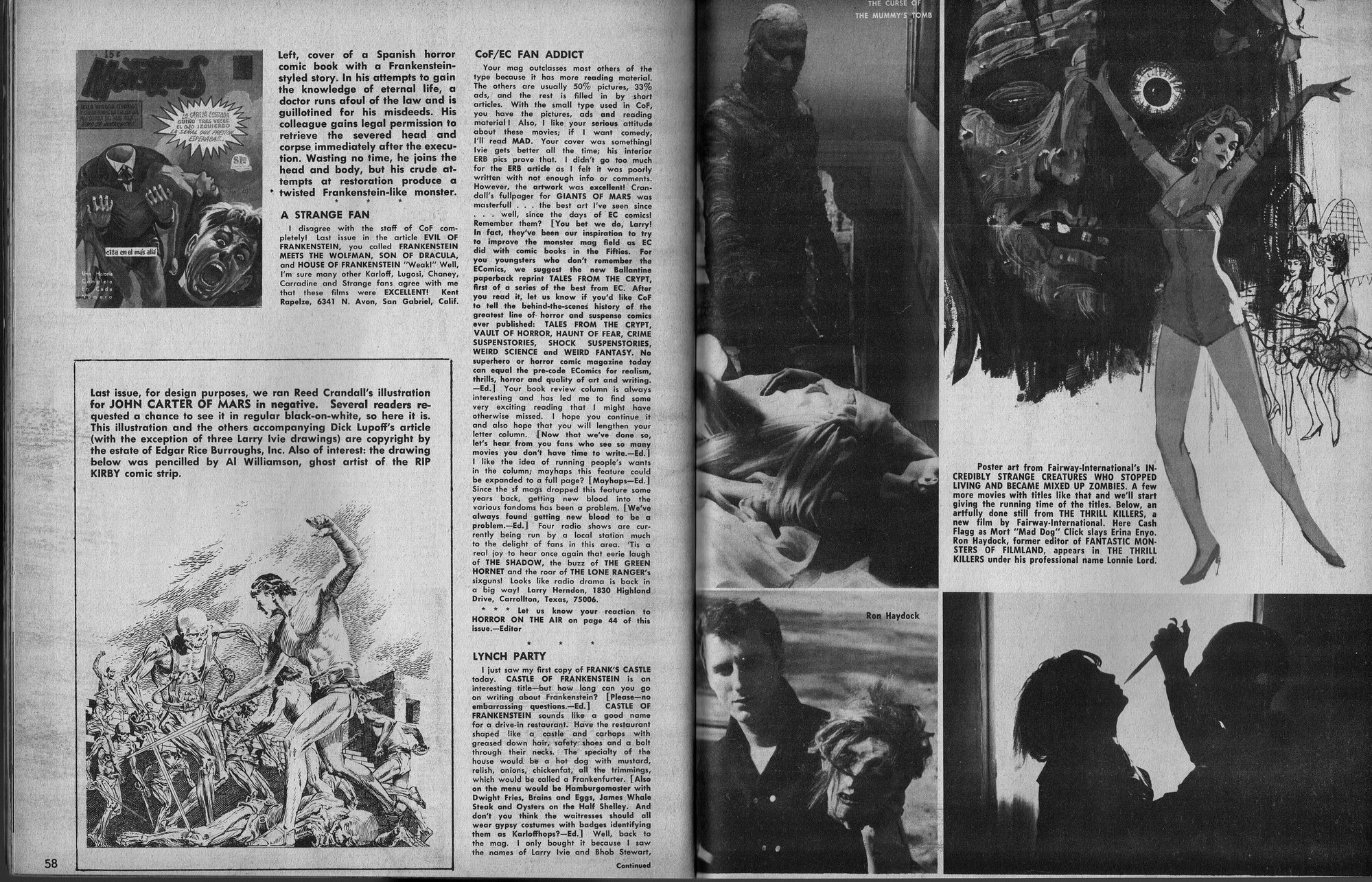 Lon Chaney Jr’s monstrous creations, The Munsters, and Christopher Lee kick off the 6th issue of Castle of Frankenstein. A timely article on Alfred Hitchcock (for me, that is: I had just watched the documentary, Hitchcock/Truffaut, and I’m reading the splendid book) is to die for, and a nostalgic look at Horror on the Air and those wonderful radio shows makes this a solid reading experience.