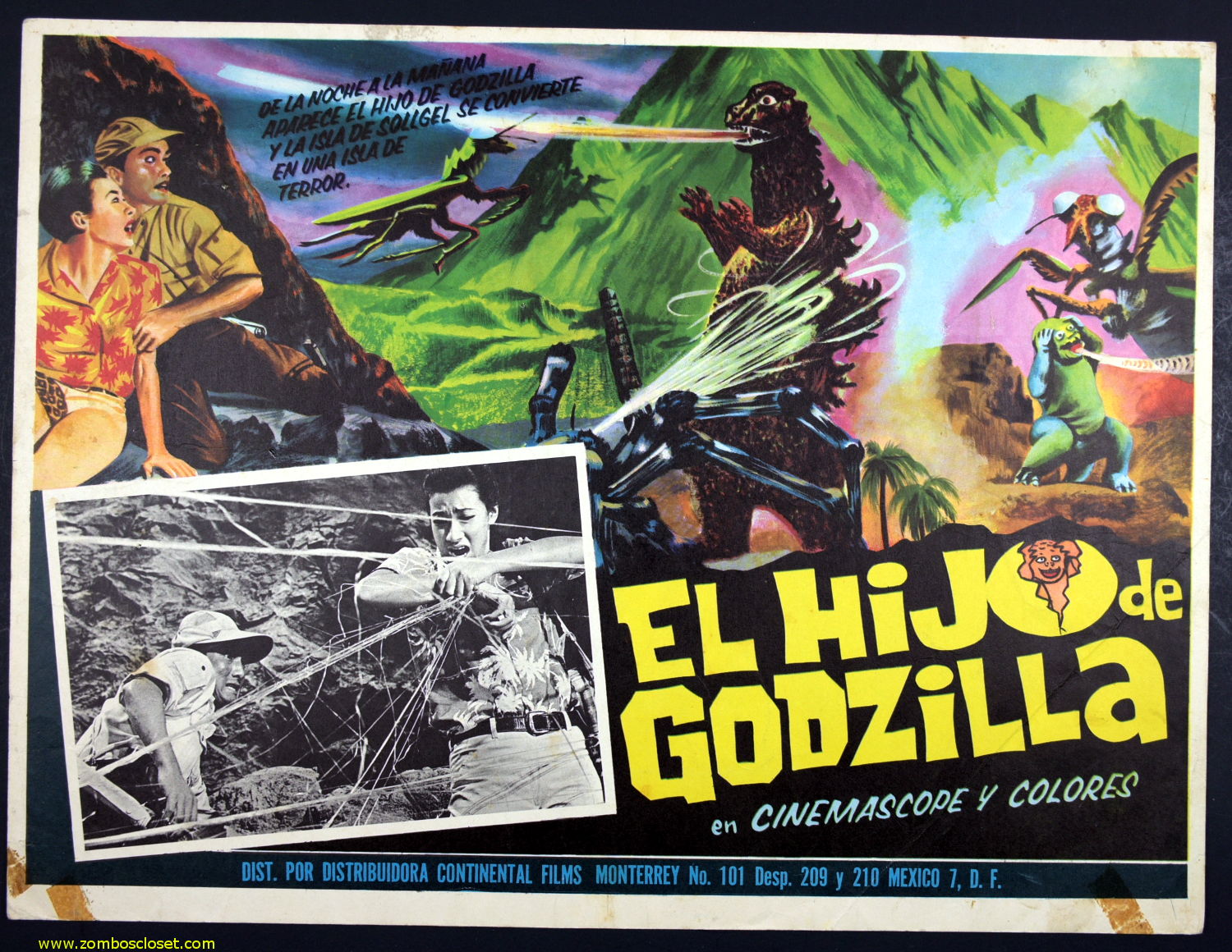 This Mexican lobby card is puzzling. The inset scene is from Boris Karloff’s The Terror, but the title translates to Boris Karloff’s Bedlam. The jumble of illustrations seems like a different lobby card was used and Karloff’s face was added for obvious reasons (hint: El Maestro Del Terror) to create this one. Still colorful enough to catch attention. I don’t recall seeing big…chains…in The Terror either.