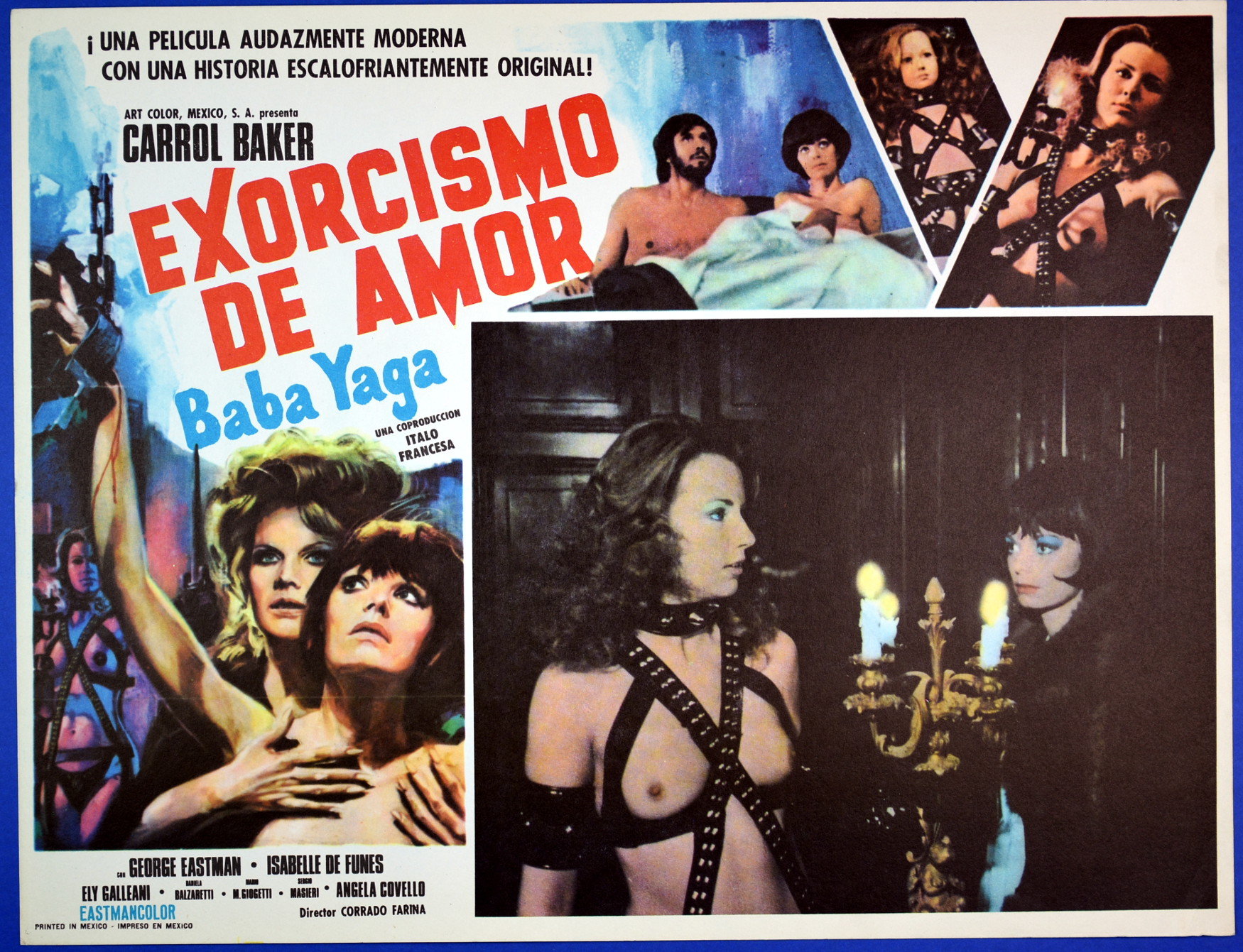 The 1970s saw a revival of devil worship and satanic shenanigans, usually with the good guys and gals losing badly. Here's the Mexican lobby card for Tigon produced The Blood on Satan's Claw. "In his 2010 BBC documentary series A History of Horror, writer and actor Mark Gatiss referred to the film as a prime example of a short-lived subgenre he called "folk horror", grouping it with 1968's Witchfinder General and 1973's The Wicker Man. The film was to be Patrick Wymark's last English language film, and was released three months after his death." (Wikipedia)