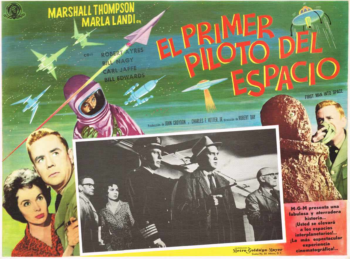 What's interesting here for the Mexican lobby card of The Monster Walks (1932), aside from the giant drooling ape holding the provocatively dressed woman and being shot at by the short-sleeved guy, is how the original poster art isn't used here, but it looks like a local artist stepped in to spice up an otherwise dull movie. And perhaps steal a little influence from King Kong.
