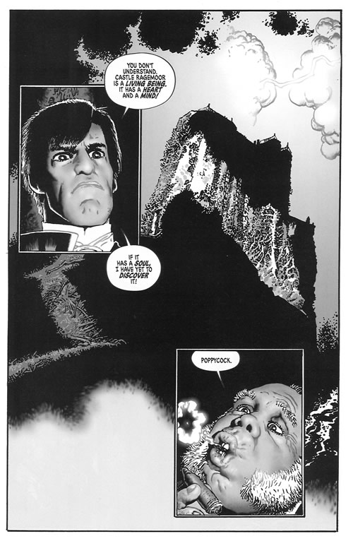 It’s a close shave, sure, but Constantine gets into more of a lather with bad people itching to piece together Corydon’s compass. More sinister mayhem ensues, but the issue’s 20 pages come a wee short of a pint, so you’ll easily wet your whistle, but keep thirsting for more story. Still, the art is consistently appealing and Constantine’s consistently unyielding in his steadfast refusal to ignore the sh*t rolling downhill along with him. Man’s got nerve: must be the trenchcoat. How can you not act self-assured and hard as nails when dressed in a trenchcoat?