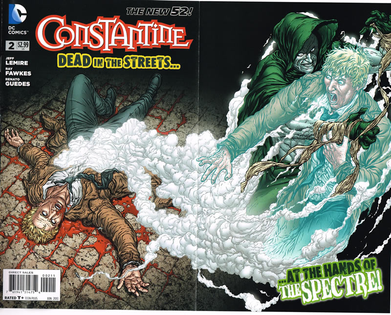 The foldout cover is not the only good thing about the continuing saga of John Constantine in issue 2 of Constantine; the Spectre pops in to pass judgement on all those nasty happenstances that follow Constantine around, like the escalating body count of his too-close associates who tag along with him. Briefly.