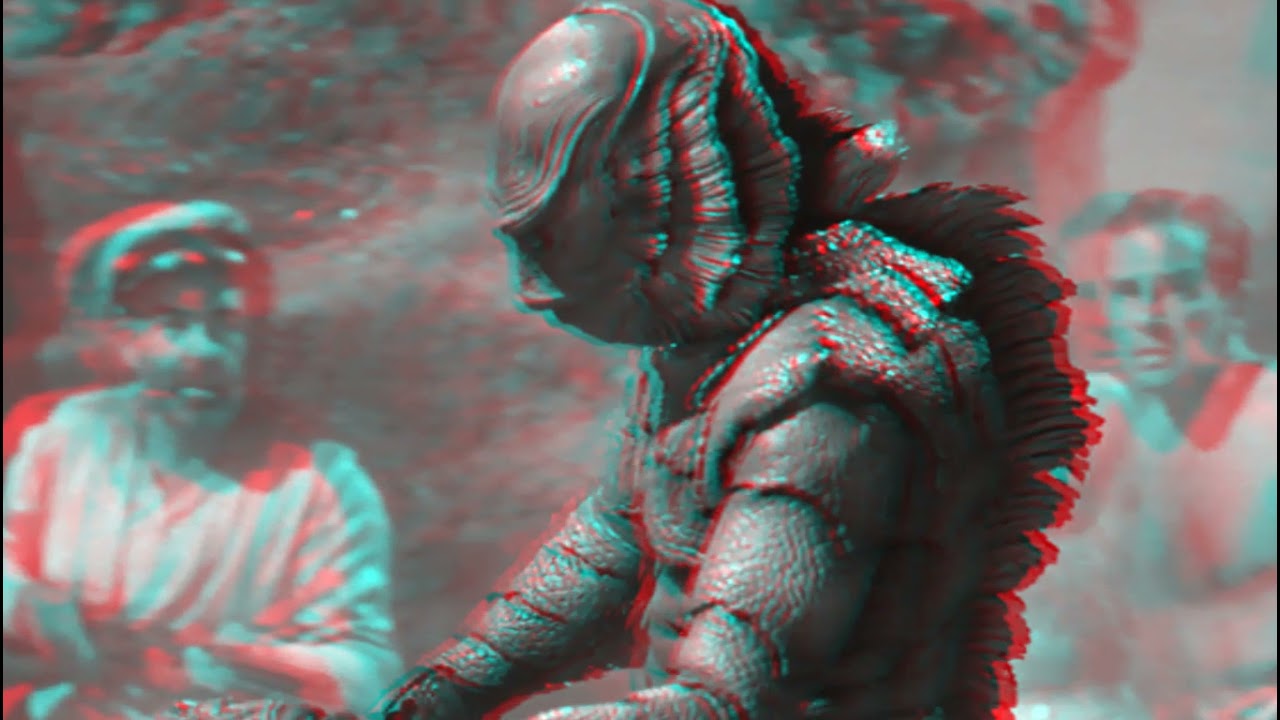 How the scene appeared in single-strip anaglyph 3D in the 1972 re-release. The single strip method eliminated the problems associated with two-strip projection systems where two projectors had to be synchronized precisely or the images were out of alignment. Headaches and eye strain could abound! Grab your old pair of red/blue glasses (red lens over your left eye, blue over your right) and see the miracle of proper 3D!