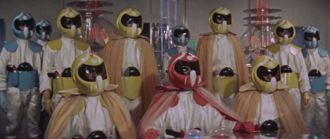 The Mysterians is a very colorful movie, at least as far as scenes shot in their dome base.