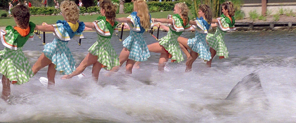 Since 2-D wasn’t enough to bring the terror close, Jaws 3-D made those shark chompers sharper for popcorn-loving audiences. Or, at least, that was the intention. Released in July of 1983, This “third dimension is terror” outing pumped up a soggy script with gory optics. Being a Jaws nut no matter what, I did watch this, with friends, in the theater. The 3-D glasses gave me a headache but I persevered. Besides, I loved Louis Gosset Jr. as much as Lea Thompson (I know, right!) and with a team of female water skiers, the Sea World park backdrop, and Brody’s son all growed-up to face a mother shark and her baby–with help from “plucky” dolphins, what’s not to love? Well…although they hired Richard Matheson (yeah, that guy) to turn in a top-notch script, some bright bulbs decided to revise it to his dislike. Of course, audiences (including me) ate it up anyway as much as the sharks ate up the people. To get the lowdown on Jaws 3-D, read Just When You Thought It Was Safe:A Jaws Companion by Patrick Jankiewicz. One tidbit I gleaned from the book: Because of the 3-D process, the original hope was to use it for a Creature From the Black Lagoon sequel, headed by director John Landis. Sid Sheinberg, head of MCA, saw the test and opted to do Jaws 3-D instead. Ouch.