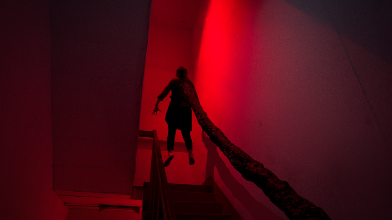 the husband is home as they return home, but he can’t see them and they can’t see him. The scene shifts between
