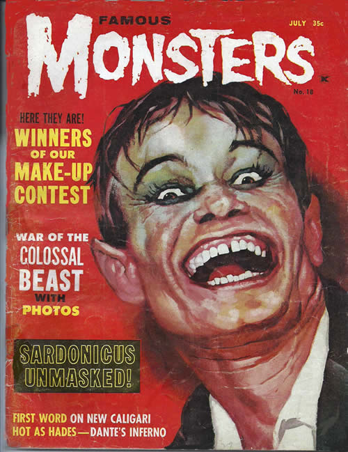Similar pans described the other titles in Dante's Inferno. Soon after, Joe Dante was listed in CofF #3 (1963), and by issue #4 was a contributing editor. His editorial duties included compiling the Frankenstein (TV) Movie Guide. In his reflections of FMoFs 1 though 50 in Famous Monster of Filmland (Imagine, 1986), Forry Ackerman, writes about Dante's Inferno and the repurcussions it caused. He wrote that the young fan from New Jersey was a "Joe Nobody" and that he truly felt no one would take the article seriously. However, FMoF's publisher Jim Warren irately told him American International's president James H. Nicholson was fuming. His company was planning to reissue a few of the titles panned in the article. It was also made known that if FMoF were to now run articles putting down Imagi-Movies, it could be devastating. Producers and releasing companies would not want to promote anything, past or present, on the magazine's pages. Warren flatly told him "Don't ever run a criticism of another picture!"
