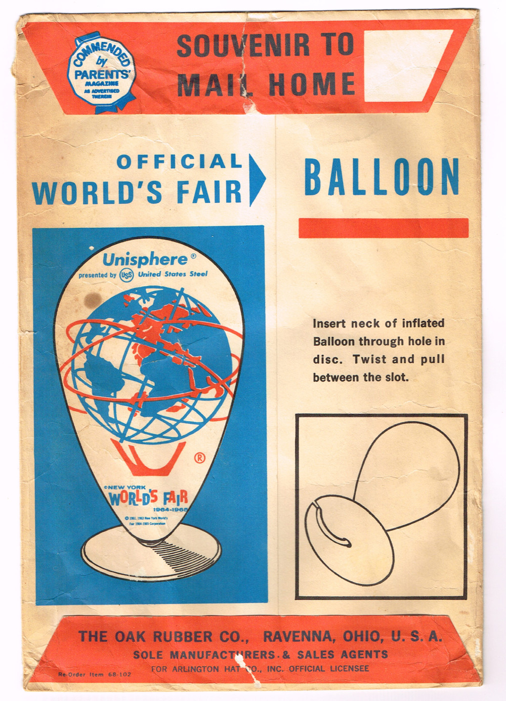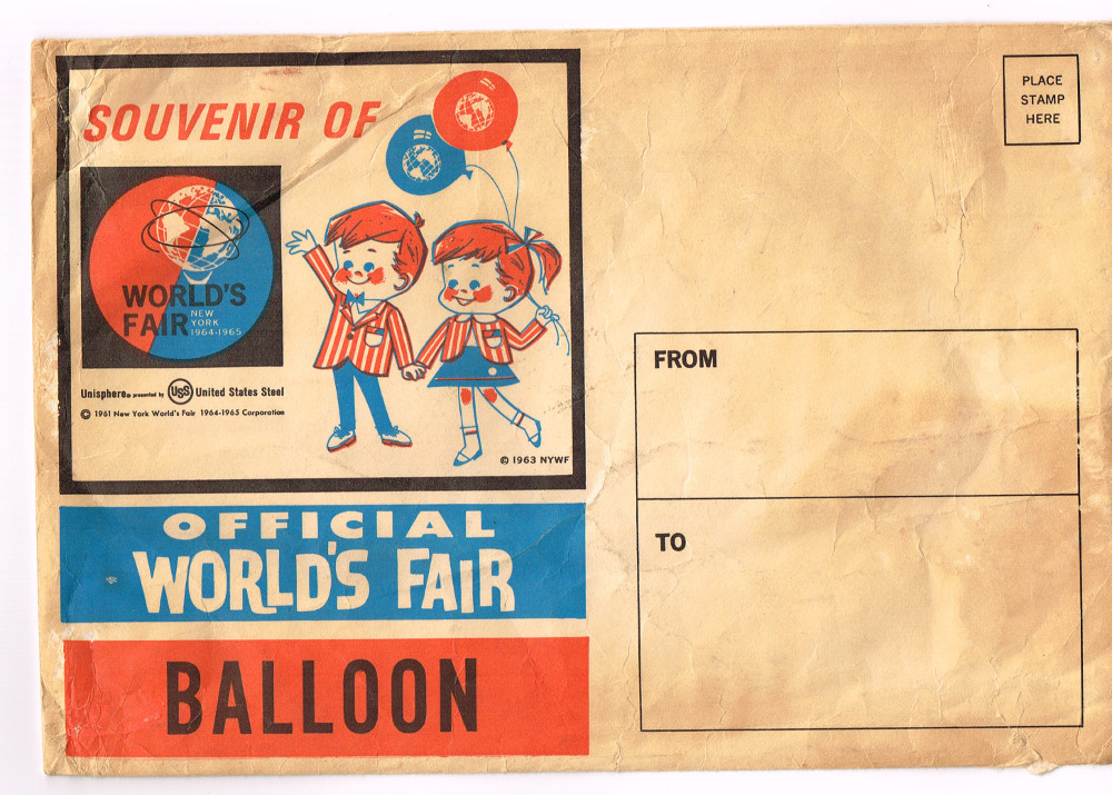 I vaguely recall the 1964-65 World's Fair in Flushing Meadows, Queens. But I do sorely miss my mold-a-rama Make Your Own Sinclair Dinosaurs. It was quite magical watching your 25 cent dinosaur being created as you watched. I couldn't get enough of the Futurama exhibit sponsored by General Motors, either. I came across this mailer for the Official World's Fair Balloon. Being a nostalgic type I couldn't pass it up.