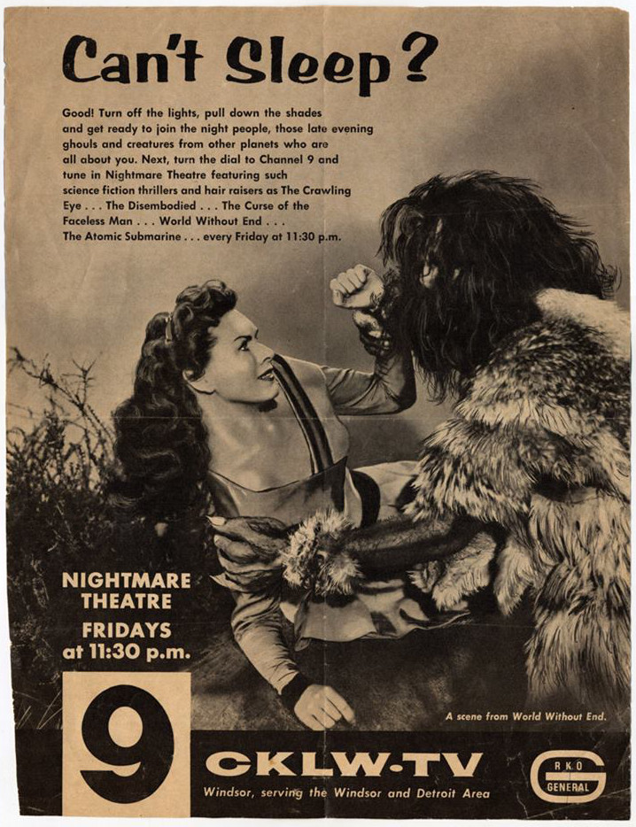Posted in the Universal Monsters and More Facebook group, this print advertisement for Nightmare Theatre reminds us of how much fun it was staying up late to catch a monster movie on local television. Growing up, I slept around 3 hours each night. Now I can't get enough sleep. For me, it was either reading all my monster magazines in the wee hours of the morning or watching TV until the stations went off the air.