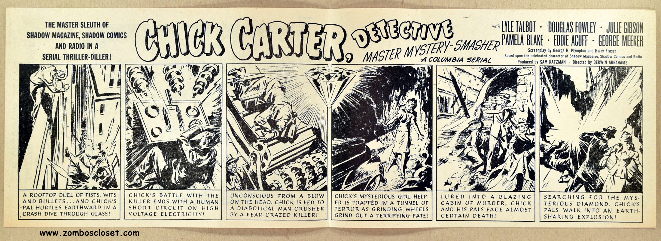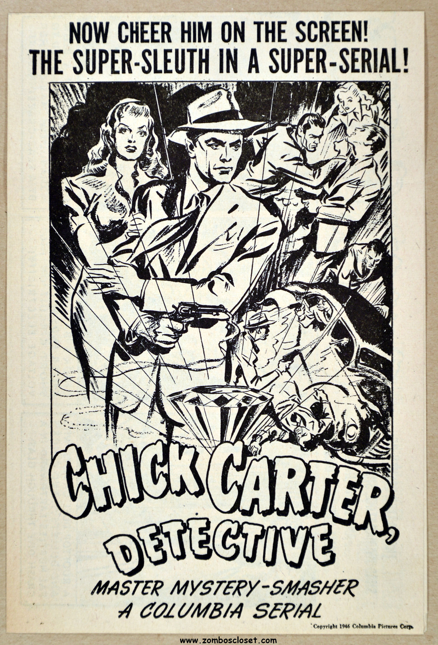 Here's the nifty movie herald for Chick Carter, Detective, a Columbia Pictures serial. He's the son of Nick Carter, detective, which MGM did a movie serial on. Sadly, no other movie company followed up with the rest of the family.
