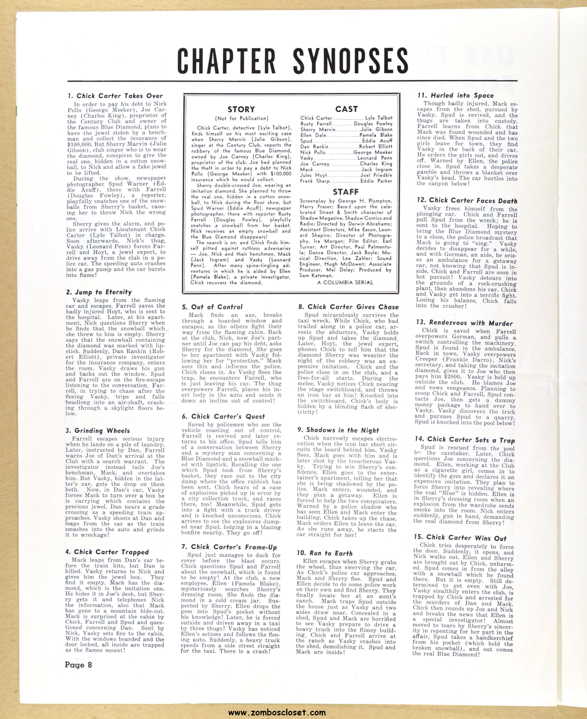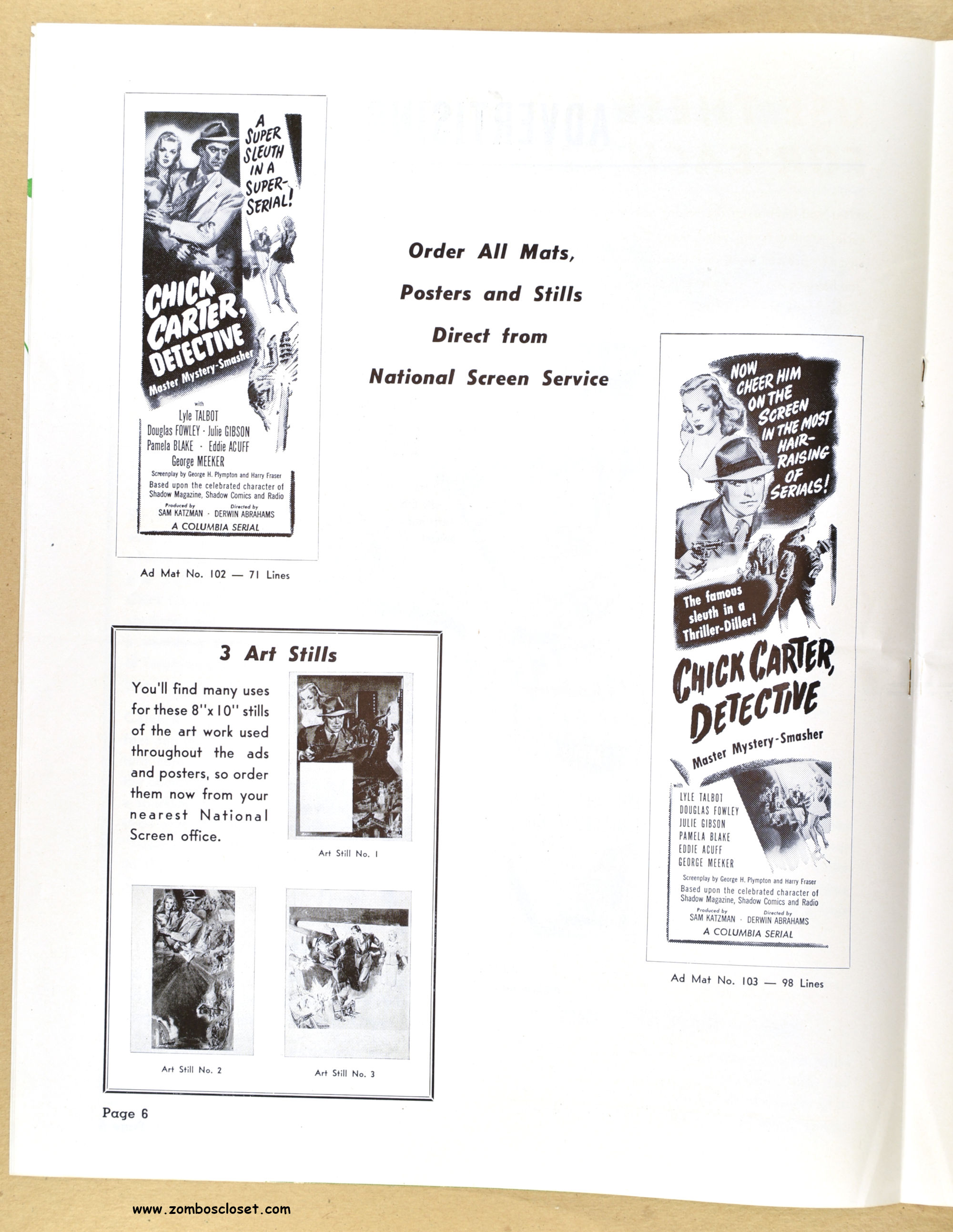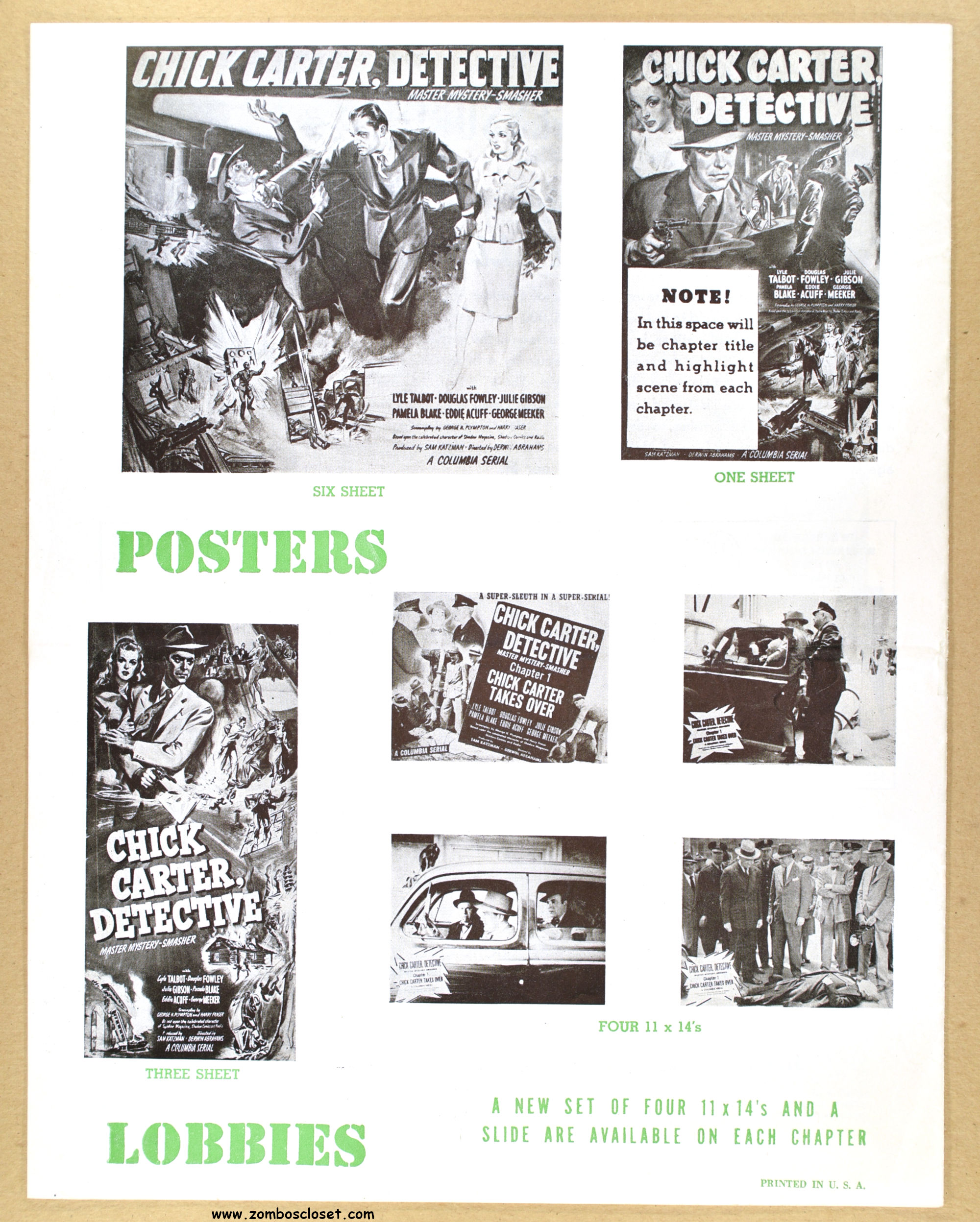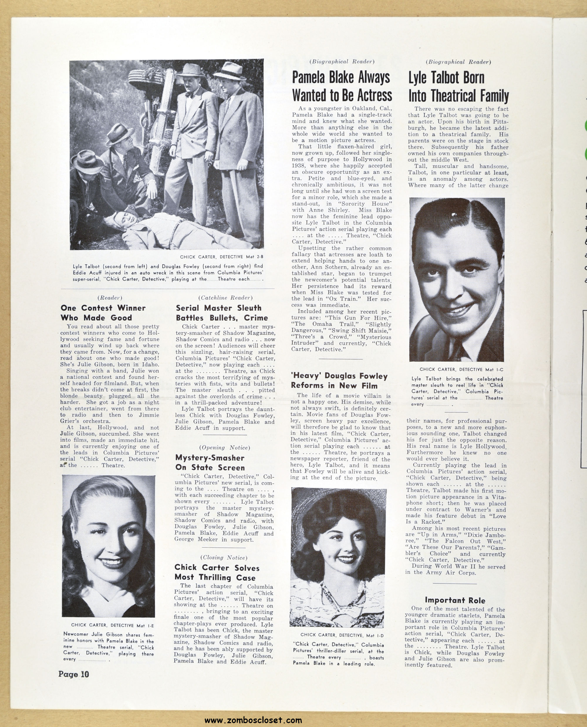 I posted the movie herald and now here’s the pressbook for Chick Carter, Detective: son of Nick Carter, detective. Dailymotion has episodes of the movie online. Julie Gibson (who played Sherry Marvin) also appeared with the Bowery Boys and the Three Stooges. Wikipedia states she’s the oldest living performer from Hollywood’s Golden Age.