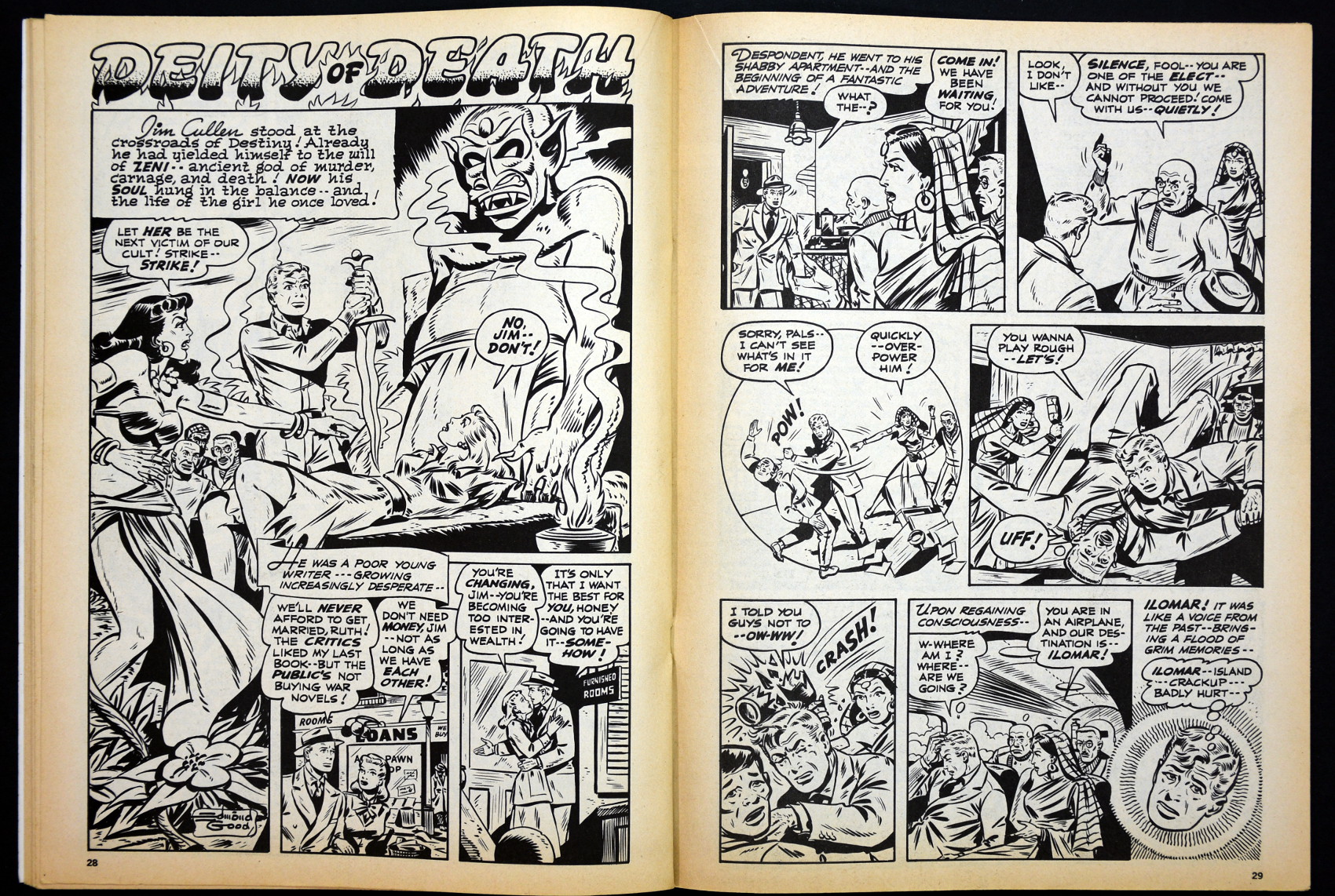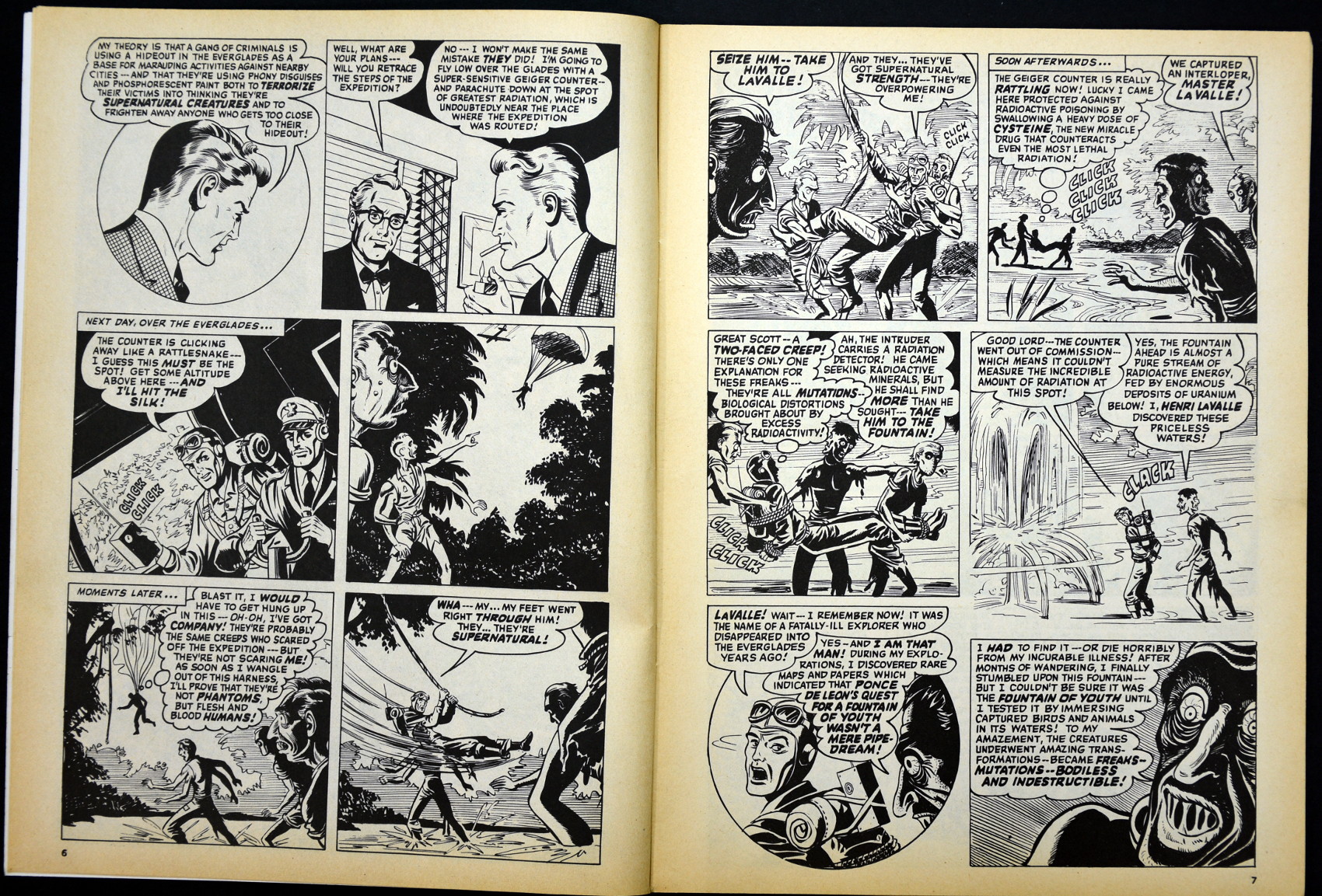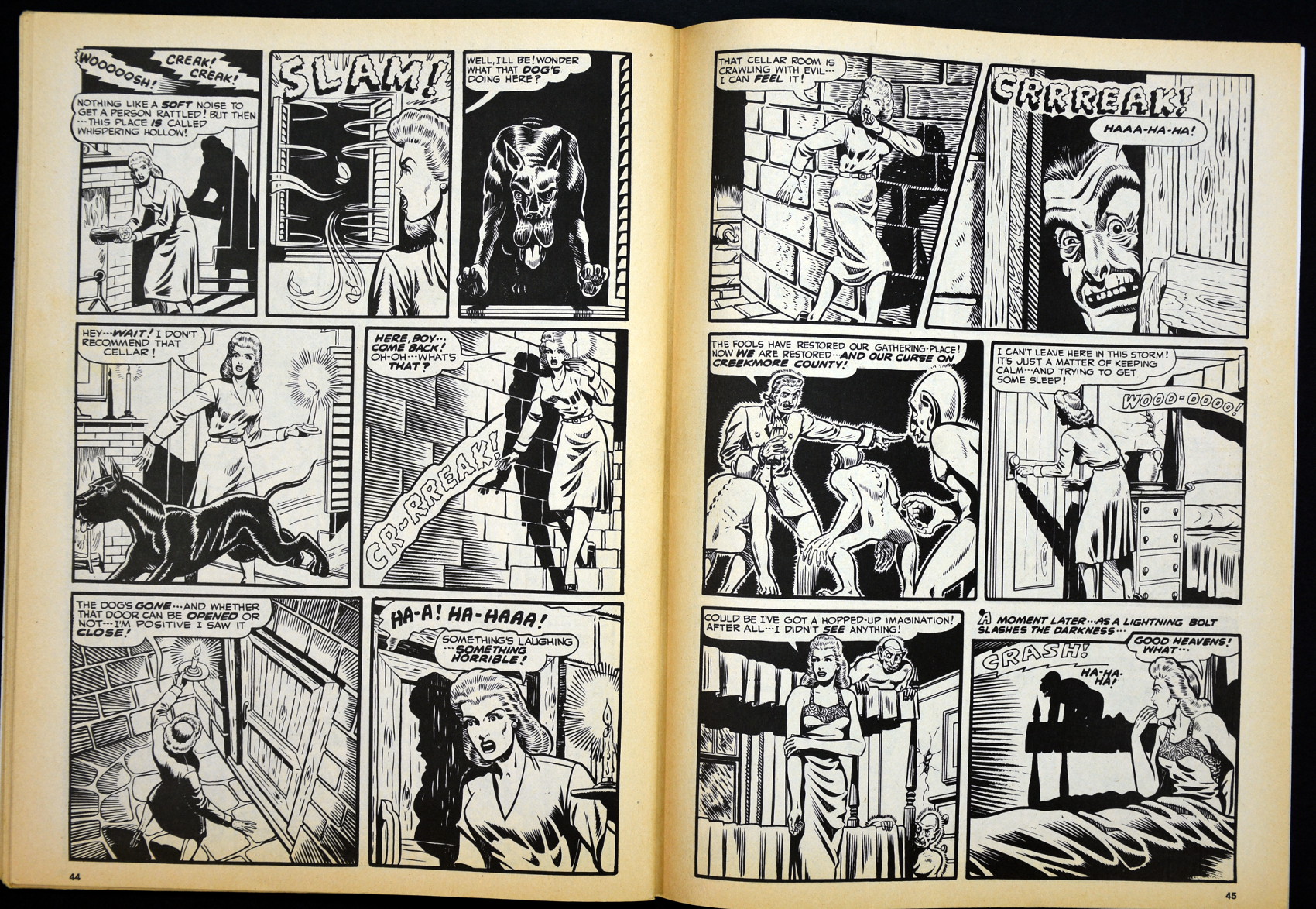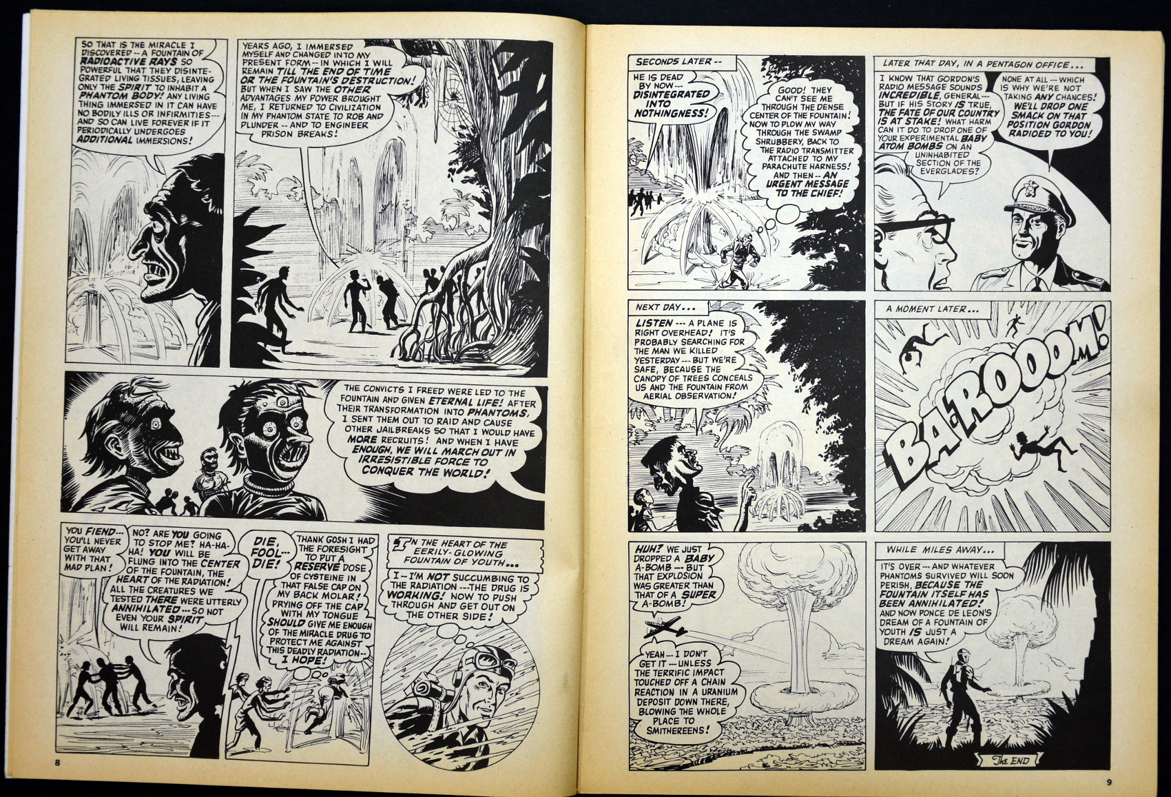 More Chilling Tales of Horror for you: more monsters, dead things, and wicked happenings, all in bold black and white. Color would just spoil the gorgeous line art that's neatly paneled across the pages. Of course, this issue's bondage and torture cover is a lot more, umm, spicy and naughty than the actual stories themselves, but hey, monsters and near-naked women sell, sell, sell. Unless you rather see a near naked man on the cover, of course. Hell, I say we put both a near naked man and a near naked woman on the cover, with leering monsters (better make them near naked, too), and cover all the bases. That's marketing, baby. I wonder how many monster kids got a whoopin' from their moms back in 1971 when they saw this issue in the drawer.