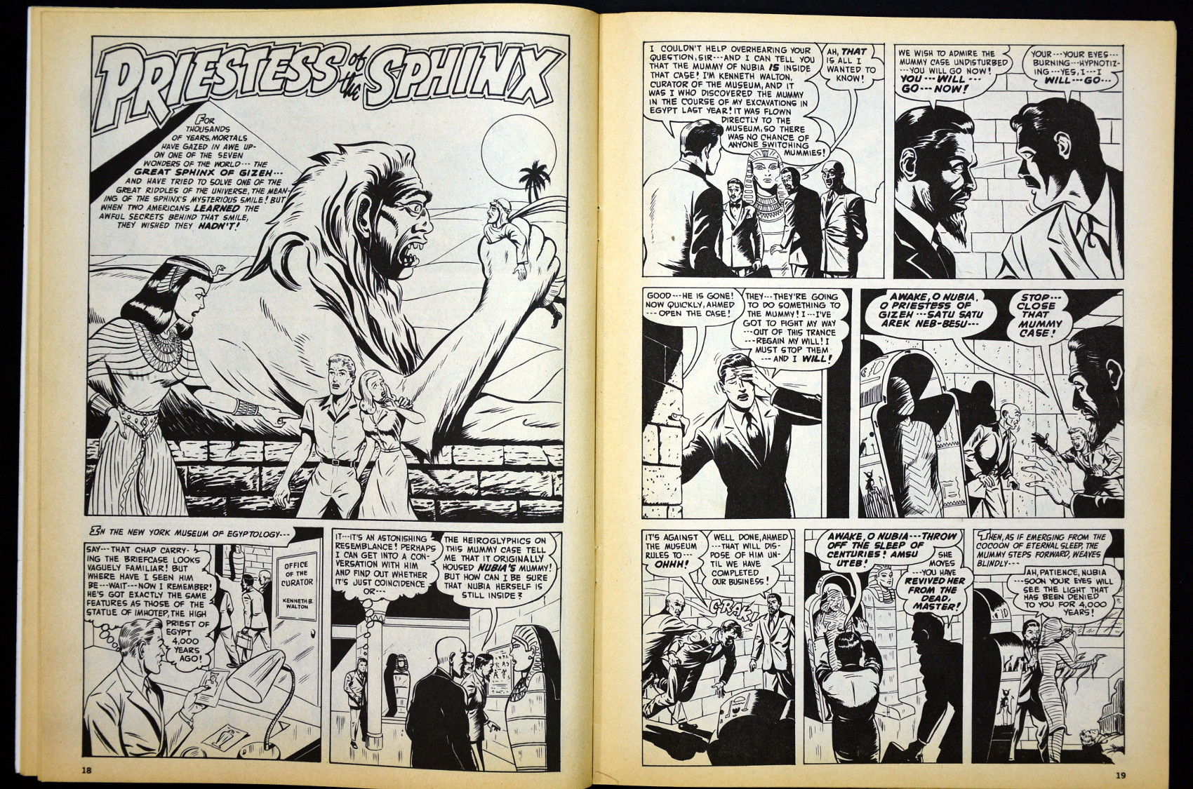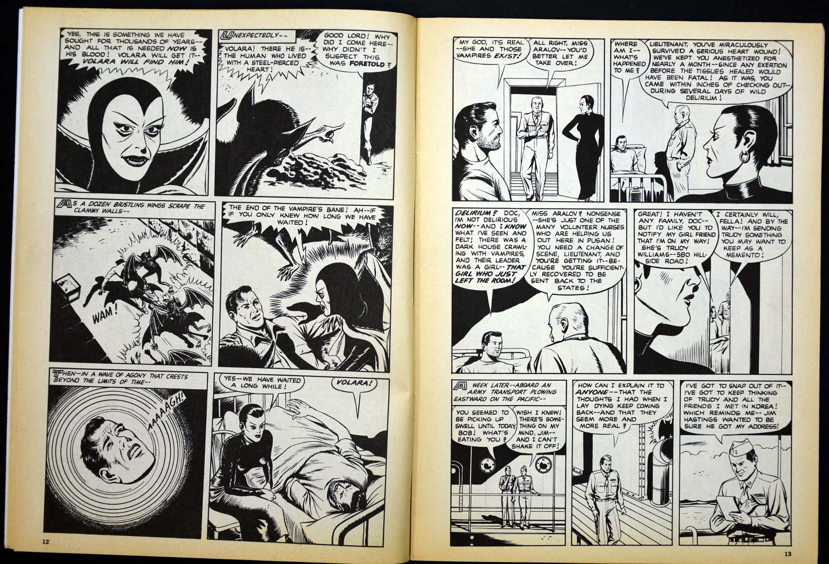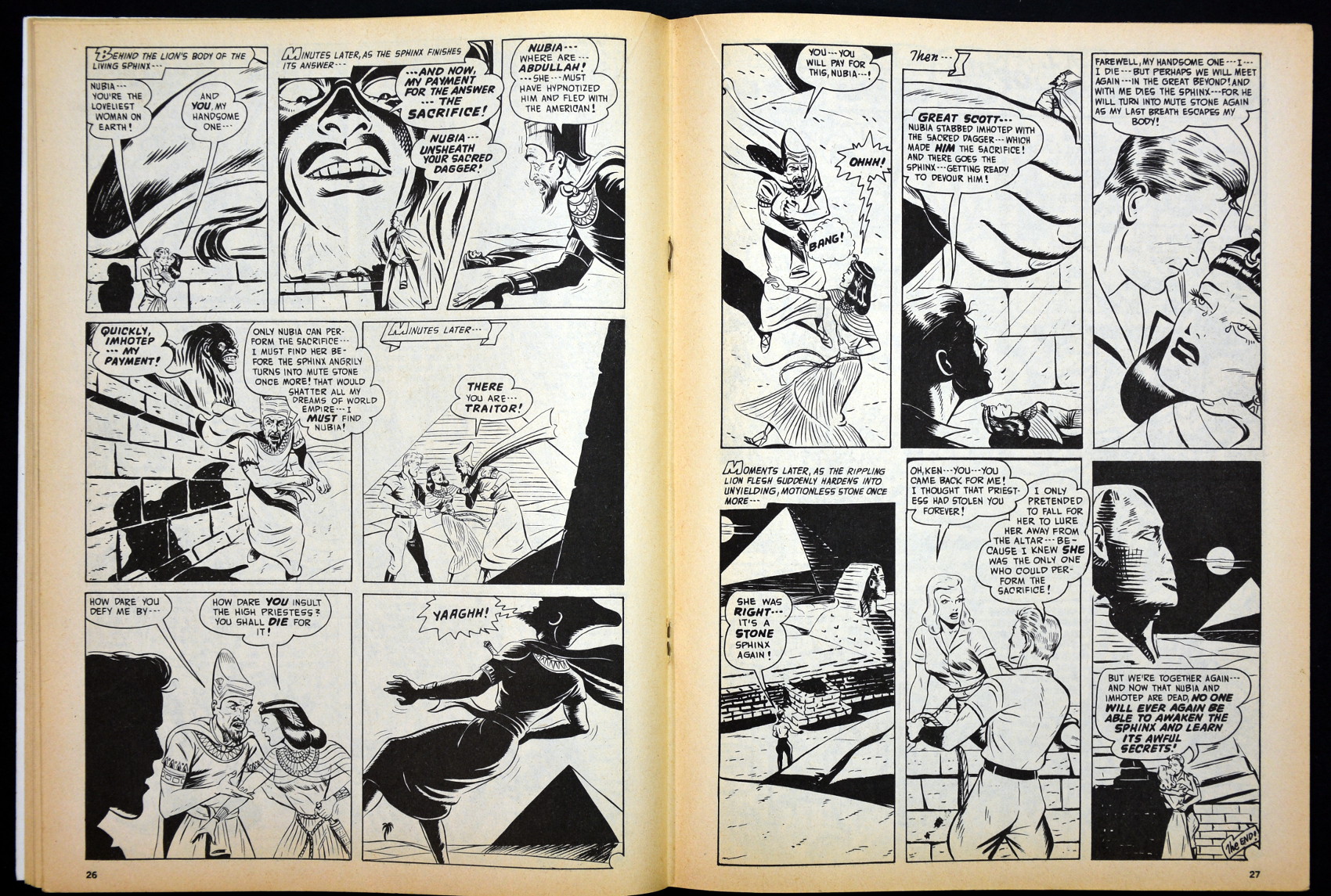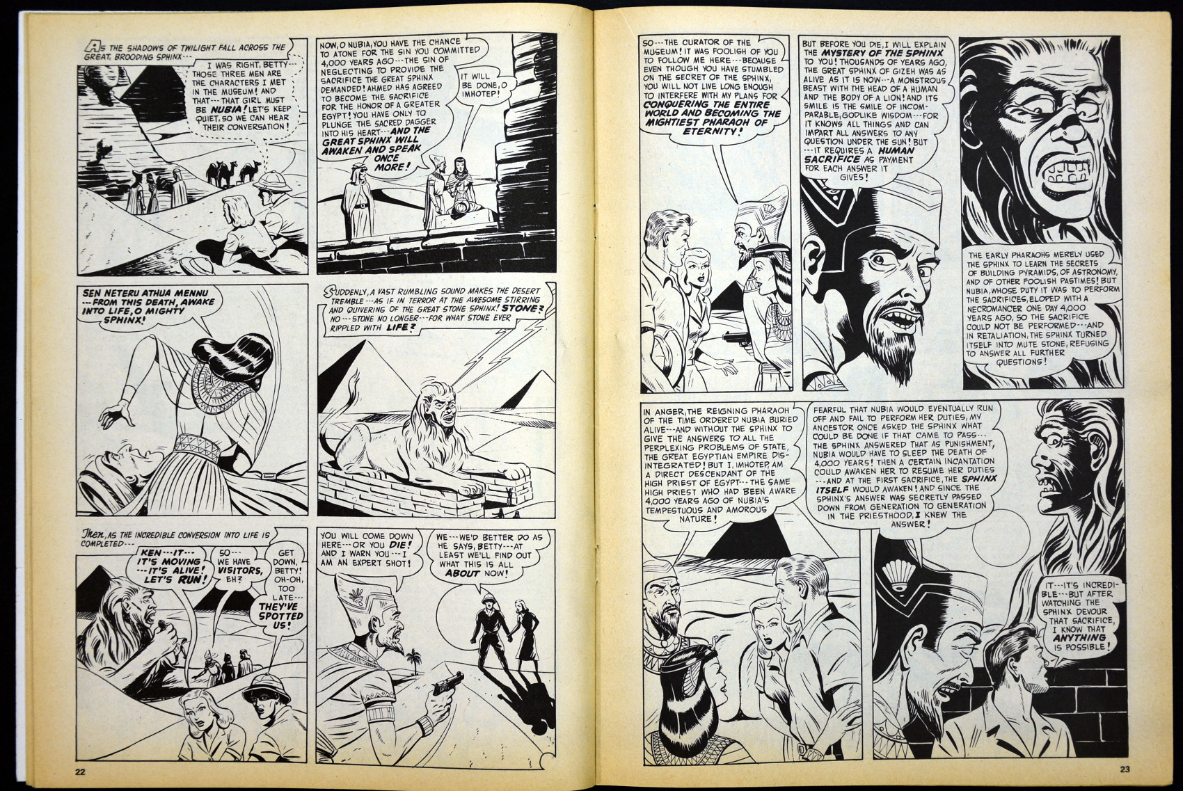 More Chilling Tales of Horror for you: more monsters, dead things, and wicked happenings, all in bold black and white. Color would just spoil the gorgeous line art that's neatly paneled across the pages. Of course, this issue's bondage and torture cover is a lot more, umm, spicy and naughty than the actual stories themselves, but hey, monsters and near-naked women sell, sell, sell. Unless you rather see a near naked man on the cover, of course. Hell, I say we put both a near naked man and a near naked woman on the cover, with leering monsters (better make them near naked, too), and cover all the bases. That's marketing, baby. I wonder how many monster kids got a whoopin' from their moms back in 1971 when they saw this issue in the drawer.