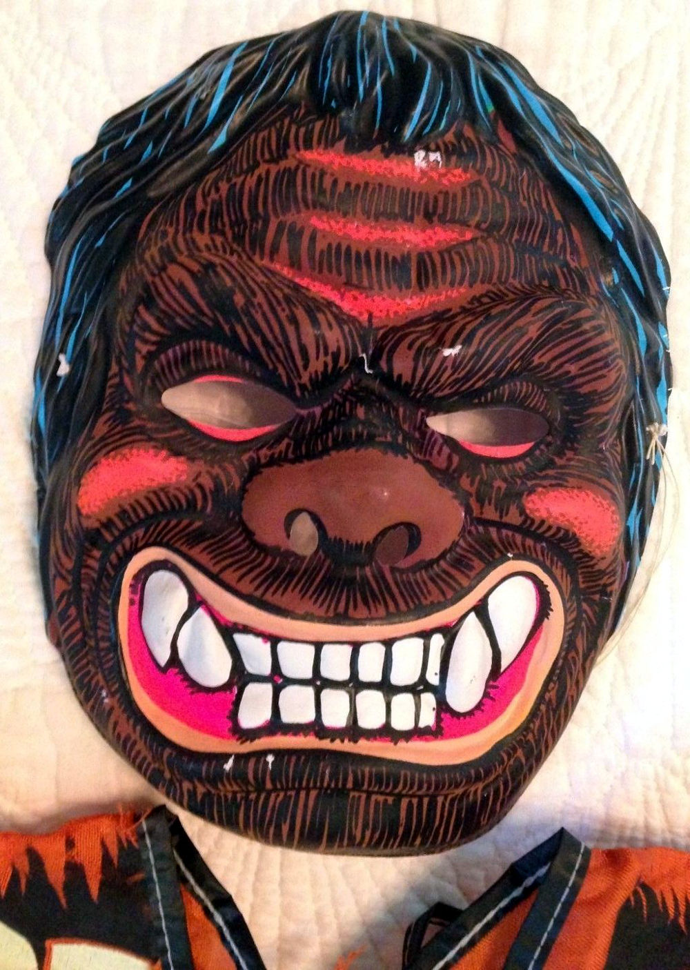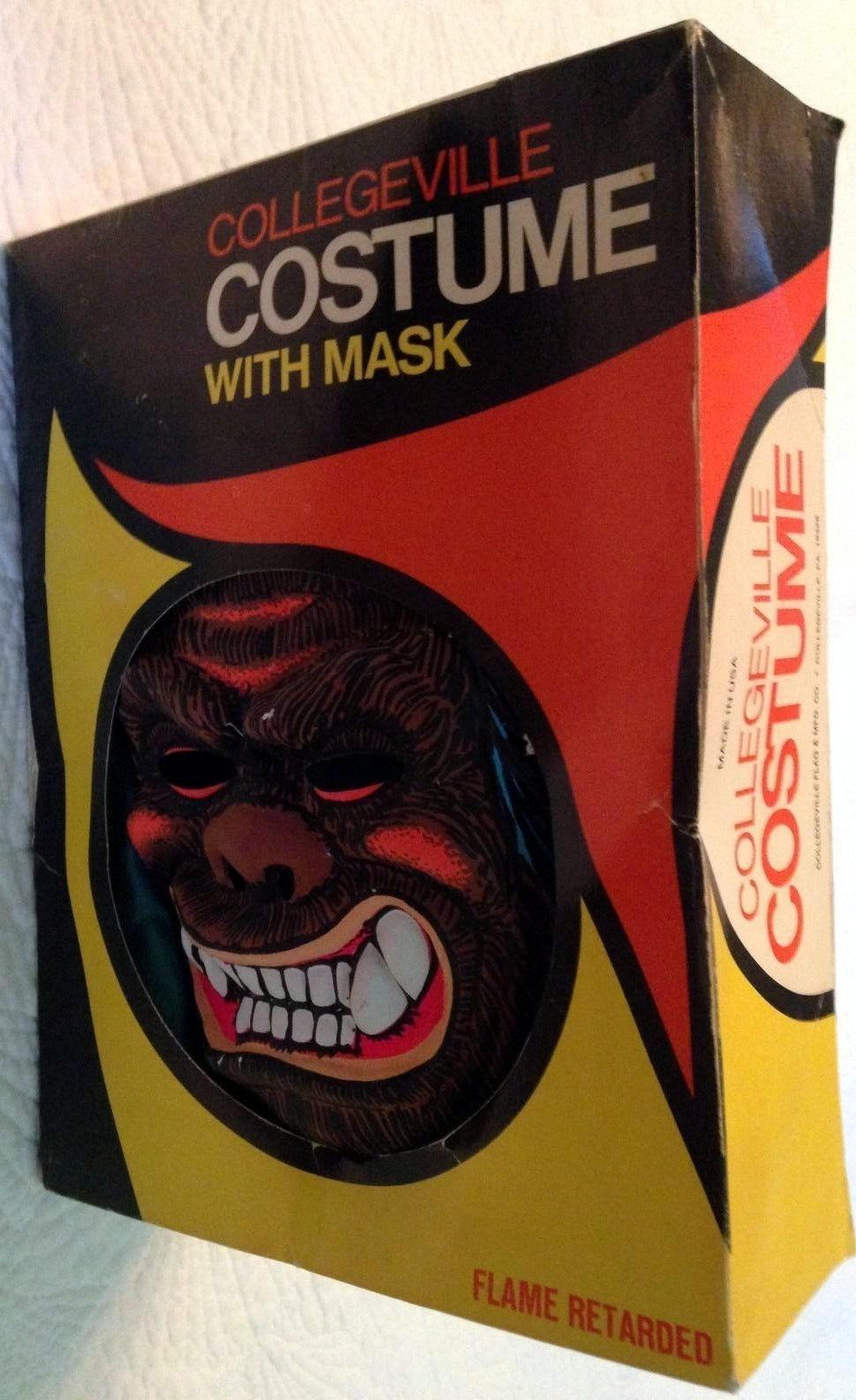 A very odd costume, indeed. One can probably write a fascinating article on the change from single character to multi-character illustration on the costume itself, but there's another article in how suitability of mask to costume has varied over time and sociological development. I'll just note that the mask is completely mismatched to the costume. I'm guessing there was a production run of the mask for some other reason than this specific costume and Collegeville decided to save money and re-use the masks with this idea. If not, I'd be stumped as to who green-lit this one.