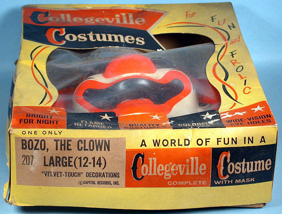 Seems more like Bozo the Hobo clown given the condition of the costume. I vaguely recall seeing Bozo on his television show. Thank the lord I was too young to be scared. After all the horror movies I've watched, I'm now too old not to be (listed by eBay'r hideho).