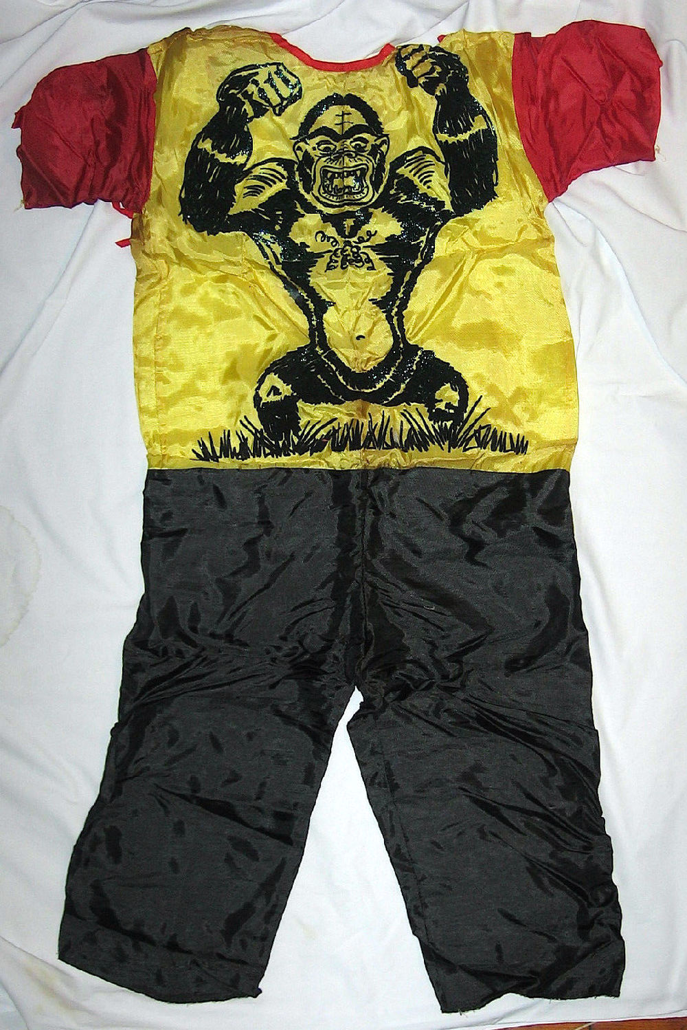 Go ape with this Collegeville Gorilla costume. If the mask looks familiar, that's because it's been repurposed a few times in other costumes. Not sure I like the color-scheme in this one since it's more a clown-gorilla vibe than a king of the apes gorilla vibe.